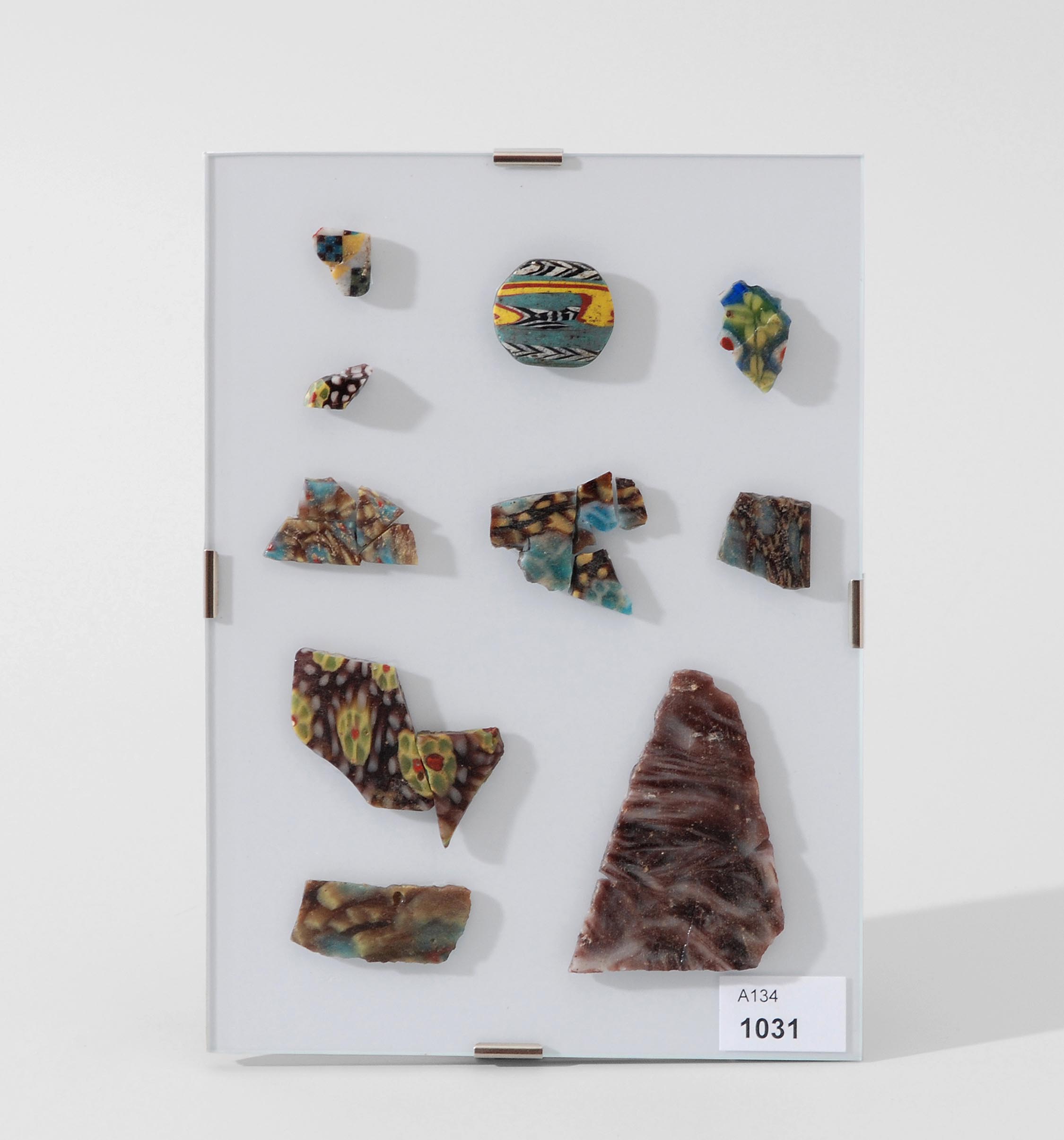Aegypten, ptolemäische bis römische Epoche. Mehrere kleine Fragmente aus farbigem Glas. L 0,5–6 cm.