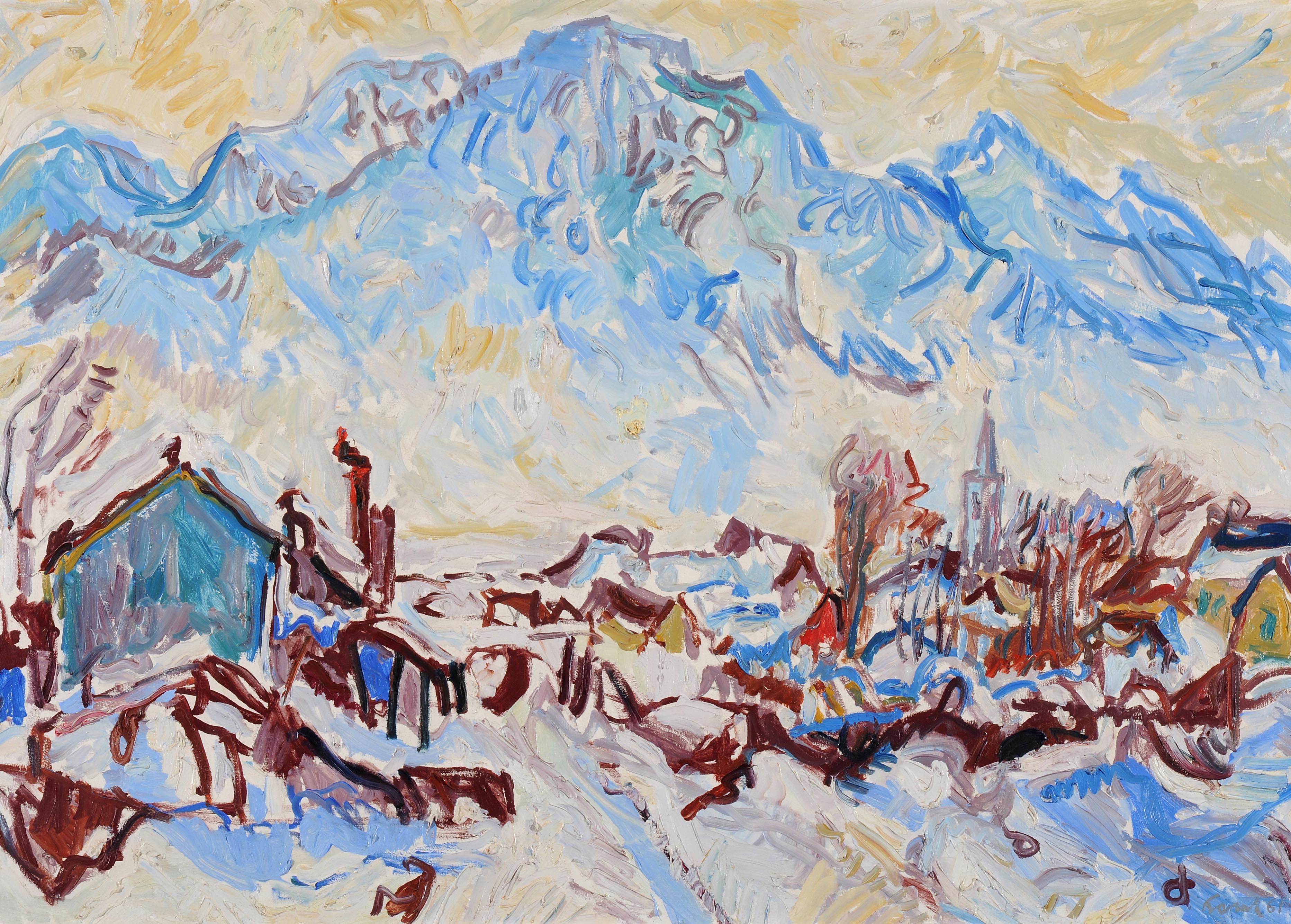 Sonniger Wintertag, 1961. Öl auf Leinwand. Unten rechts signiert und datiert. 72x100 cm.