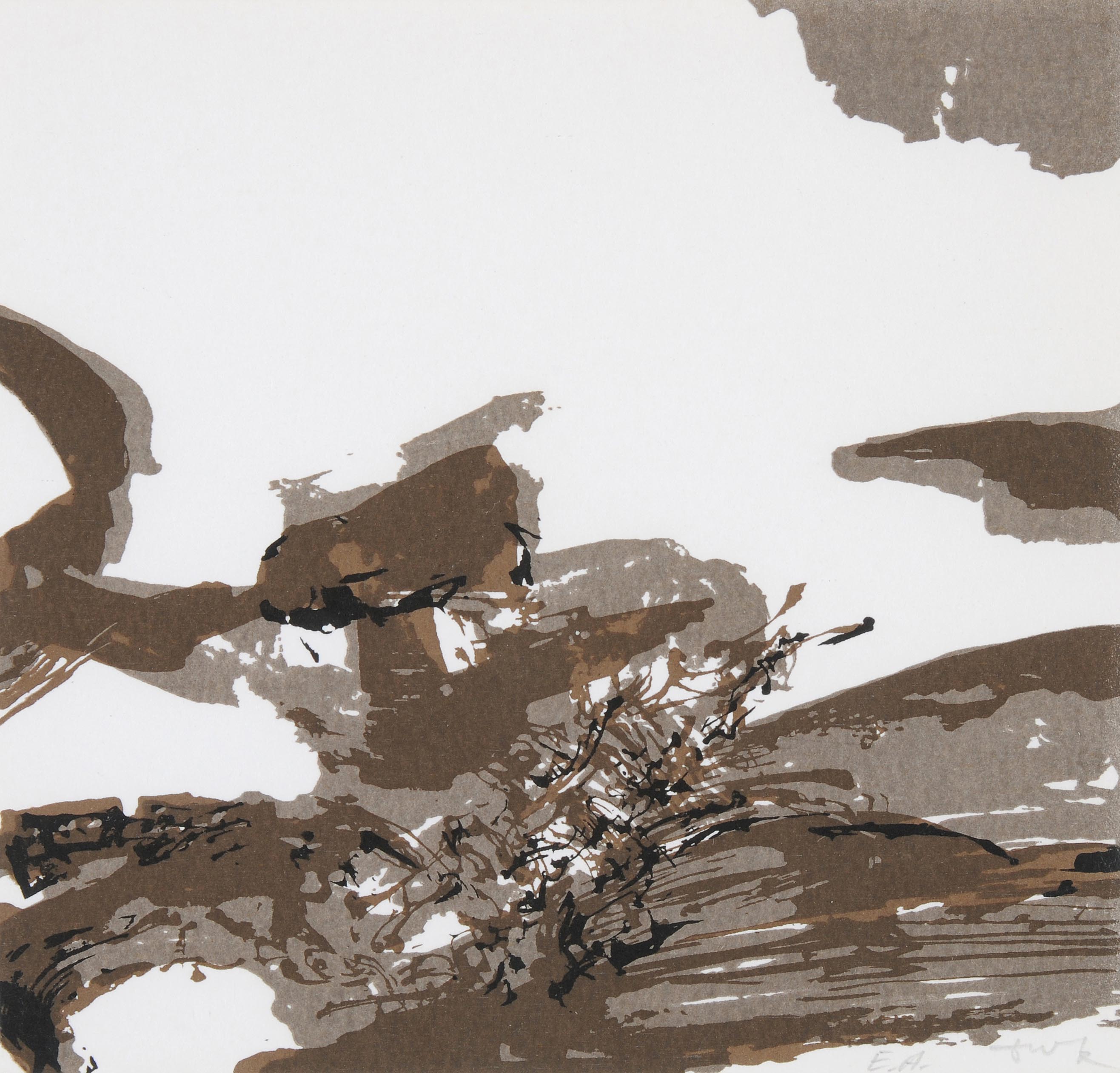Ohne Titel. 1973. Farblithographie. E.A. Unten rechts in Bleistift signiert. Blattgrösse 13,8x14,2 cm (Blatt beschnitten). Gerahmt. -Minimster Lichtrand. Verso partiell an Rückblatt montiert.