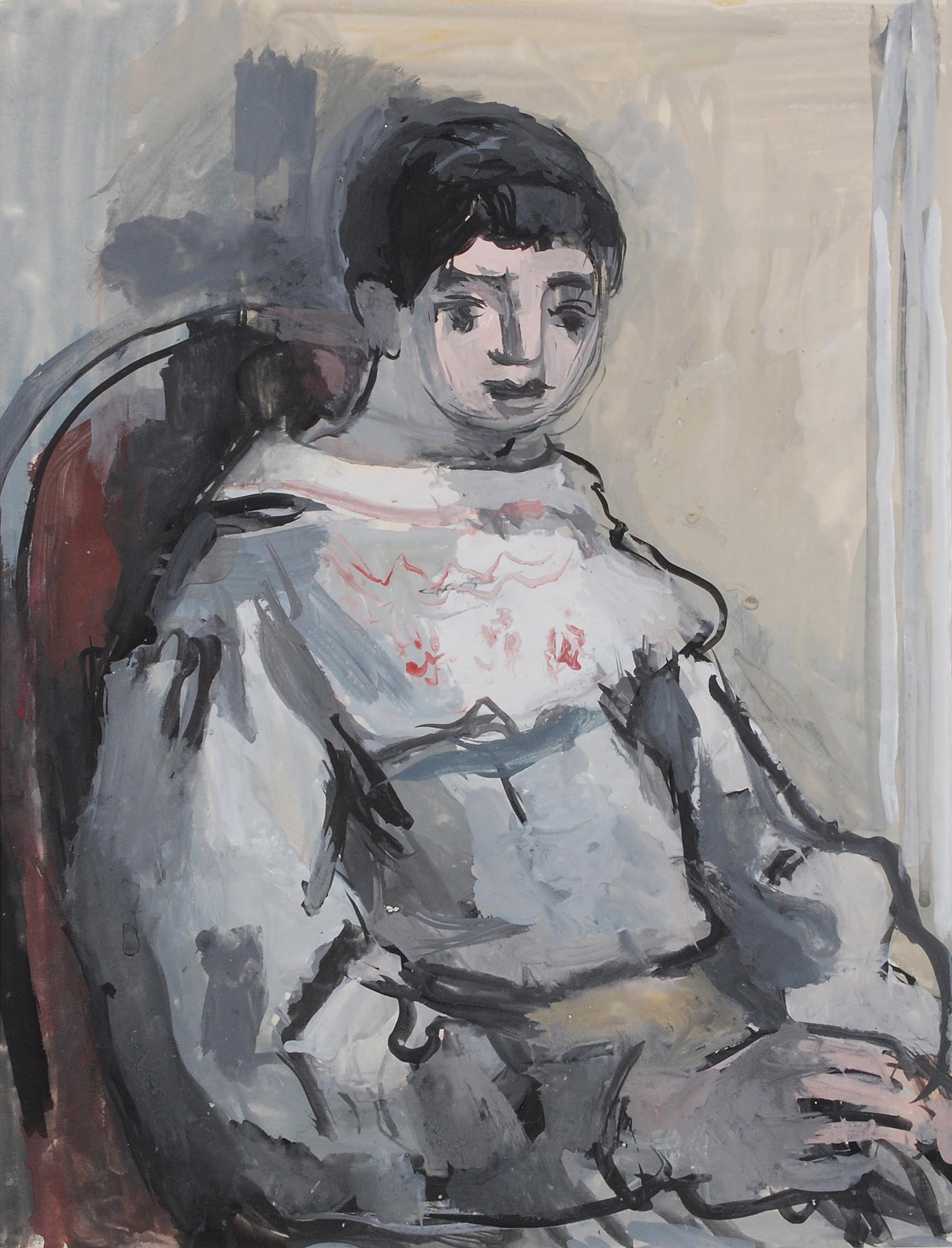 Zigeunerin. Gouache auf Papier. Verso mit rotem Stempel: "EG". Blattgrösse 44x38,5 cm. Gerahmt. -Verso an allen Rändern komplett an Passepartout montiert.