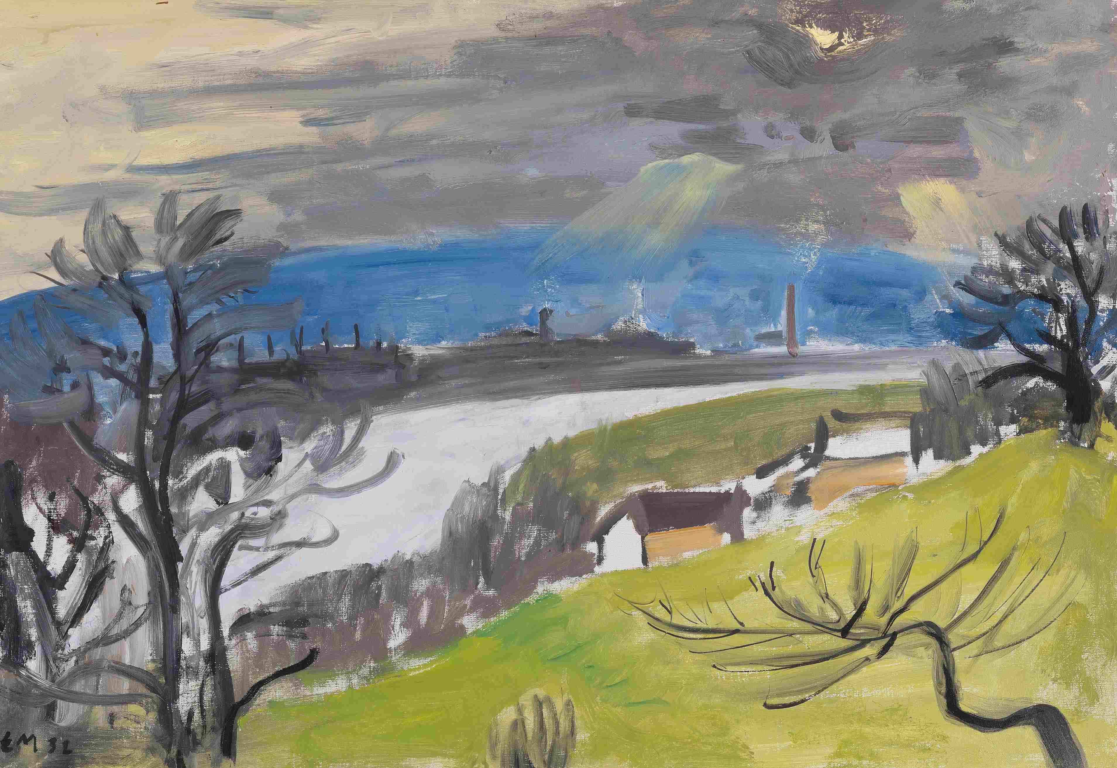 Vorfrühling im Limmattal, 1932. Öl auf Leinwand. Unten links monogrammiert und datiert. 50x73 cm.