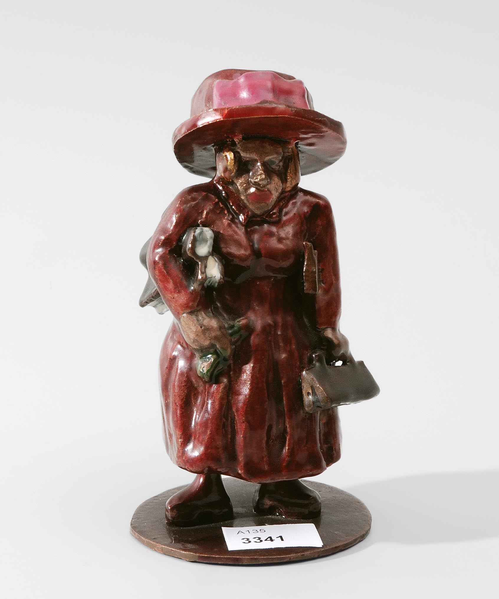 Die Städteplanerin. Bronze lackiert. Auf dem Metallsockel signiert. Höhe 13,5 cm. -Patina. Leicht schmutzig.