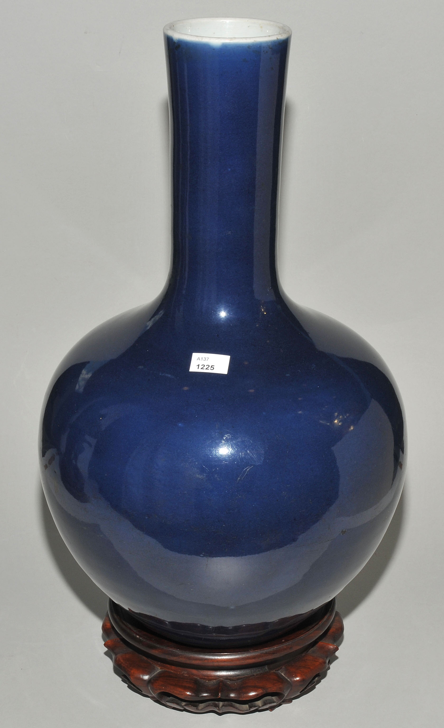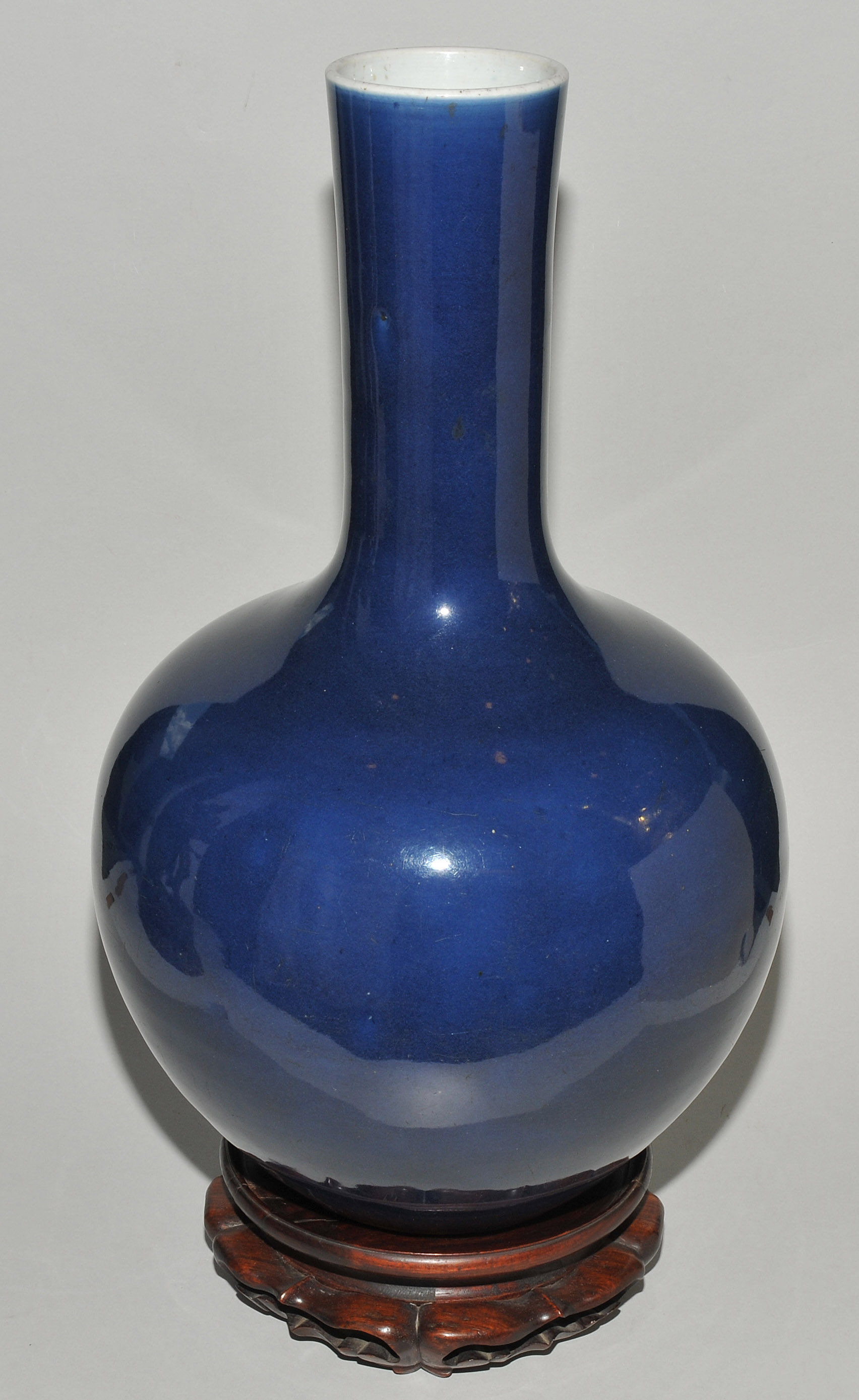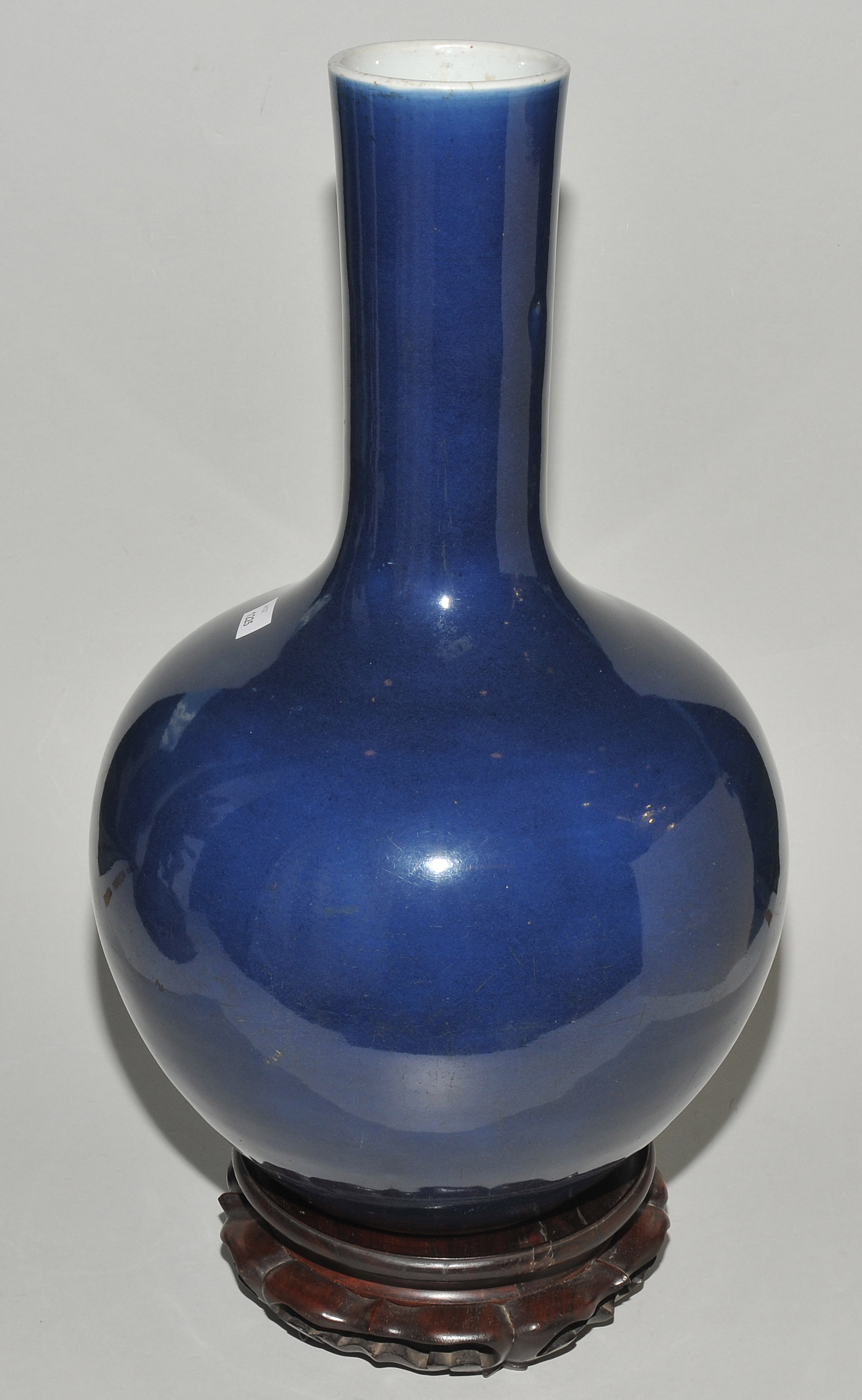 China, 19.Jh. Porzellan. Kobaltblaue Glasur. H 44 cm. Mit Holzsockel.