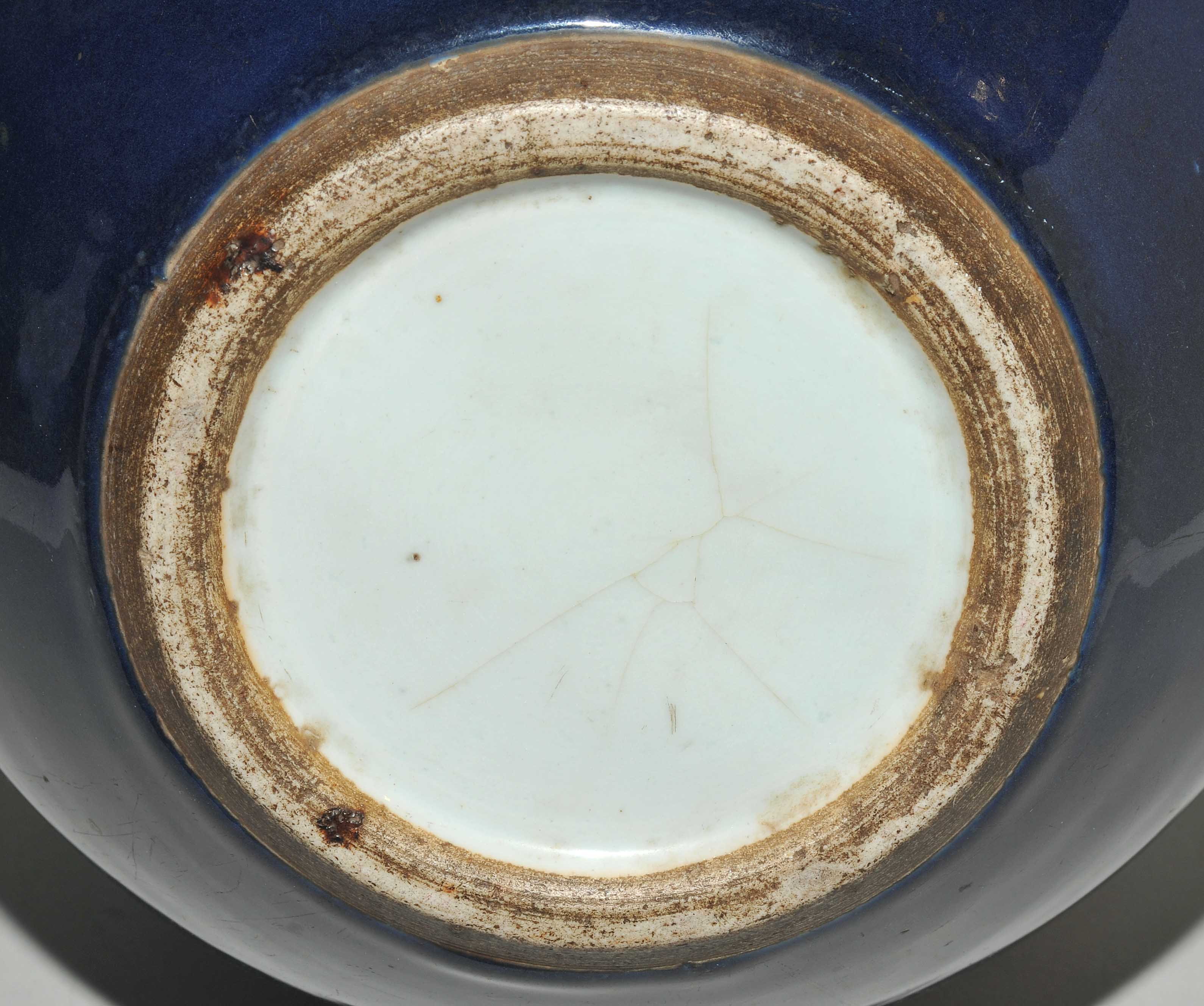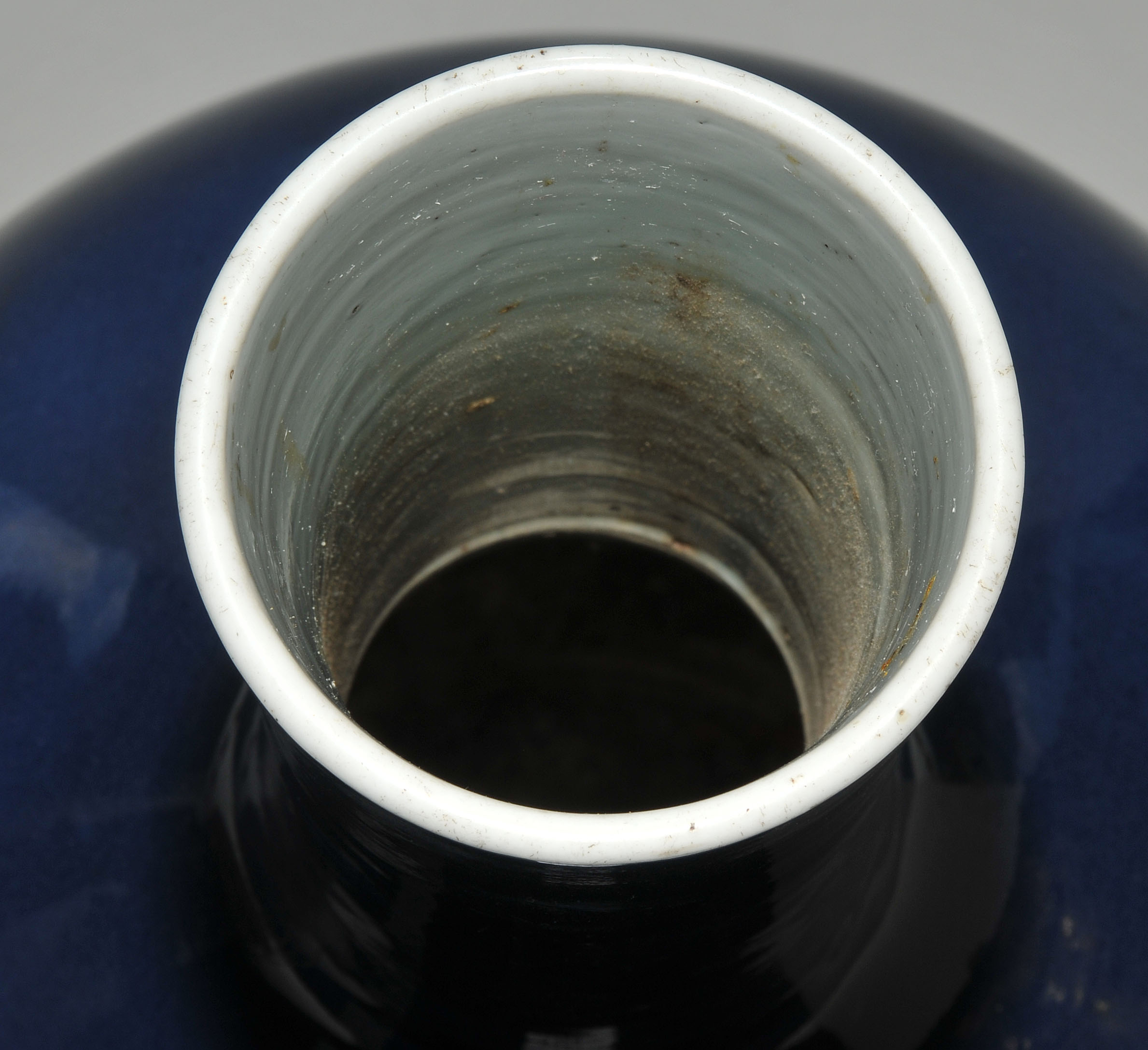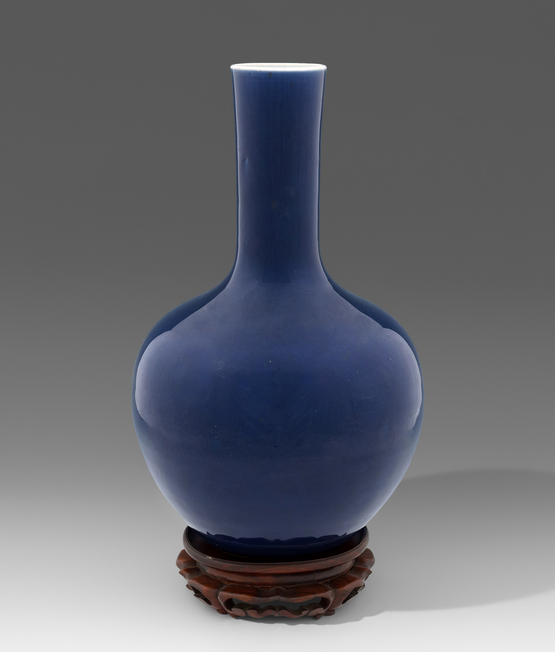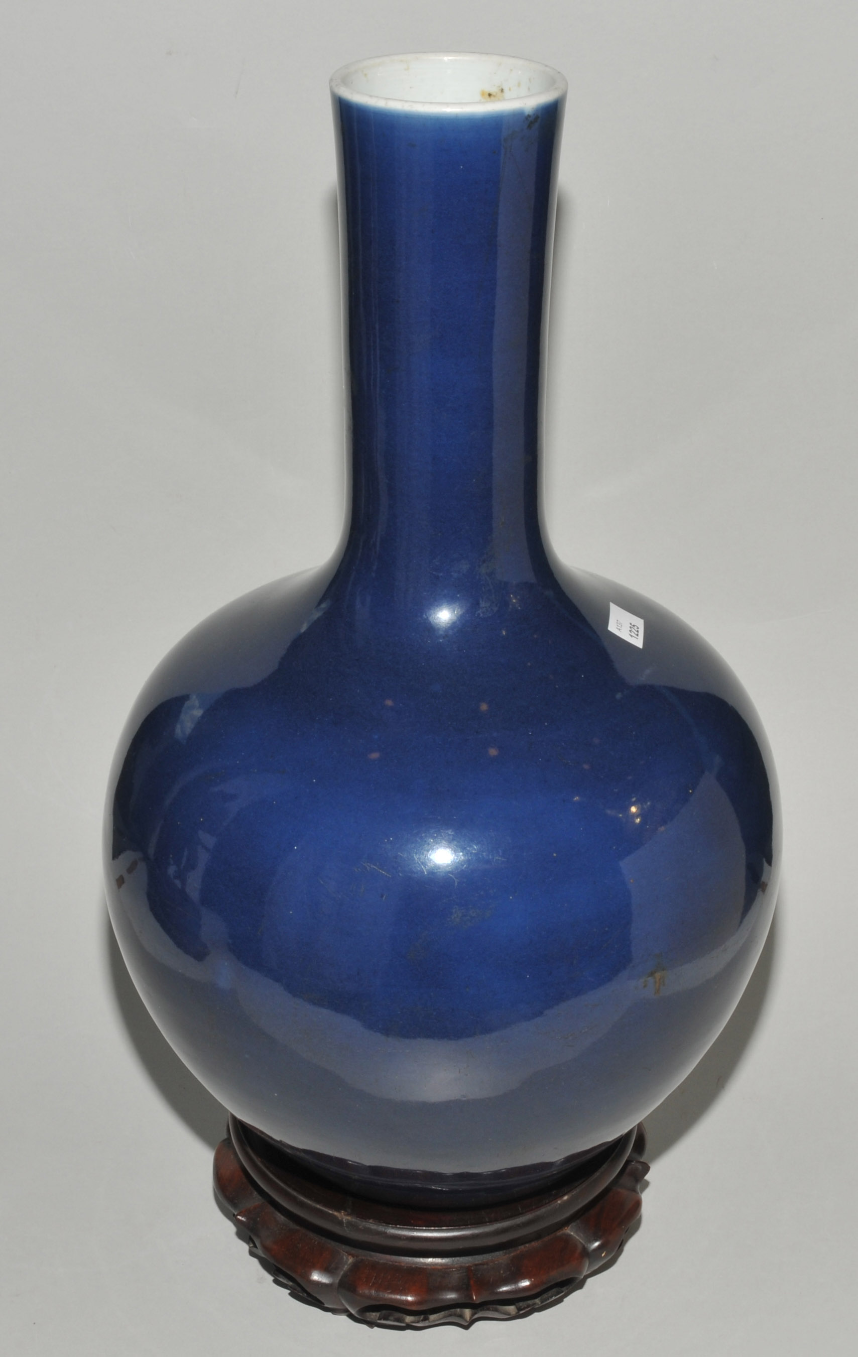China, 19.Jh. Porzellan. Kobaltblaue Glasur. H 44 cm. Mit Holzsockel.