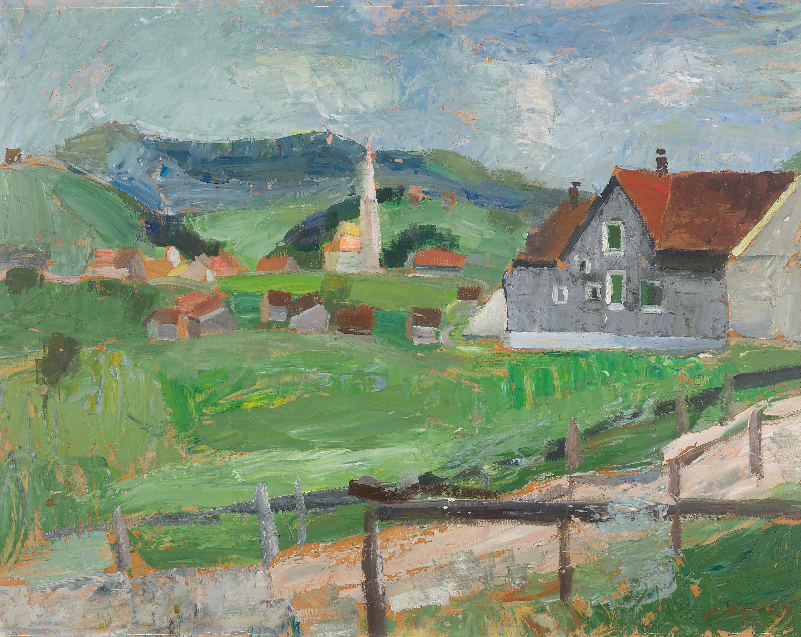 Landschaft bei Hemberg, um 1930. Öl auf Karton. Unten rechts signiert, verso bezeichnet. 50,5x66 cm.