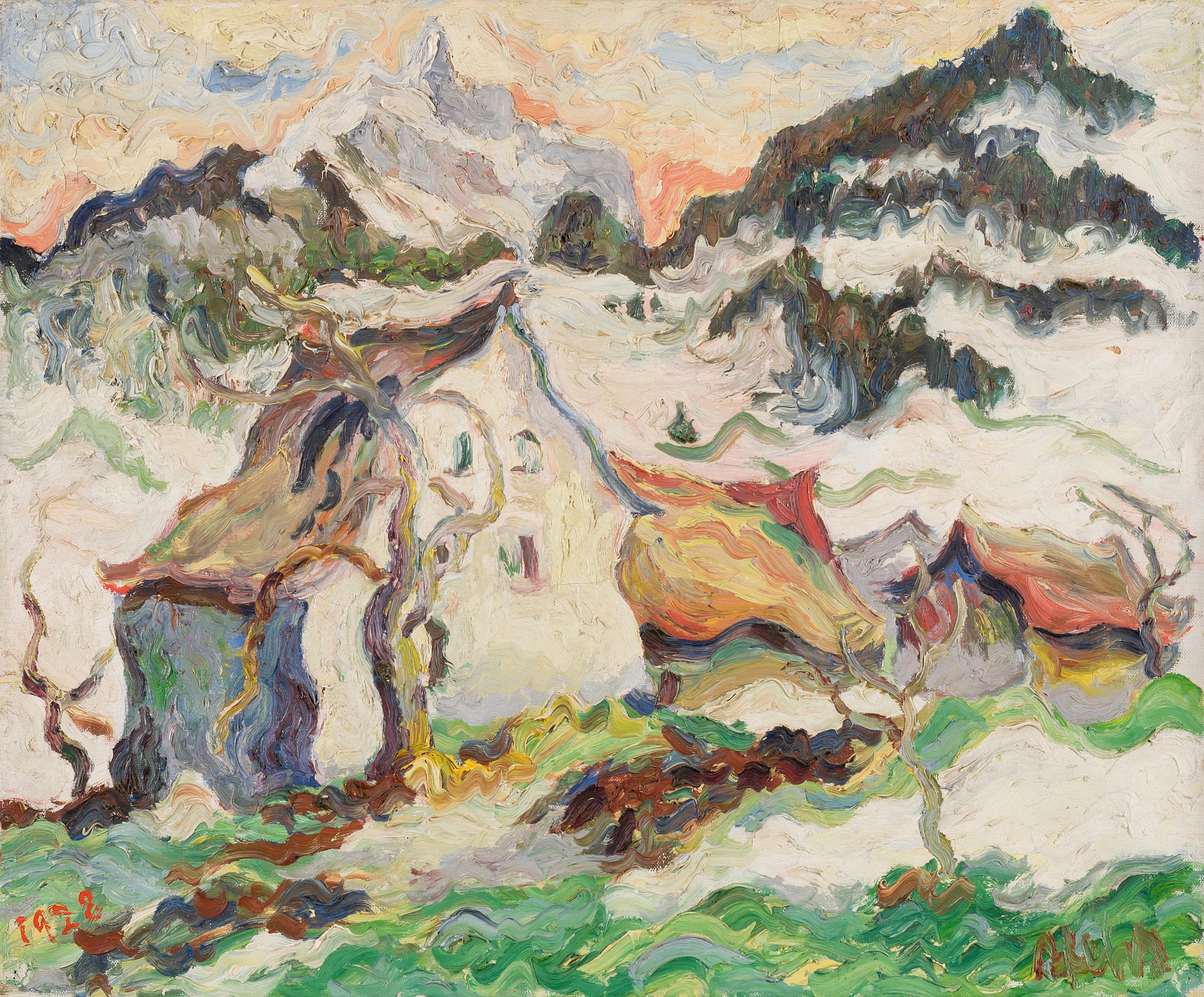 "Kerenzerberg", 1928. Öl auf Leinwand. Unten rechts signiert, unten links datiert und verso auf Keilrahmen bezeichnet. 54x65 cm. -Ohne Rahmen.