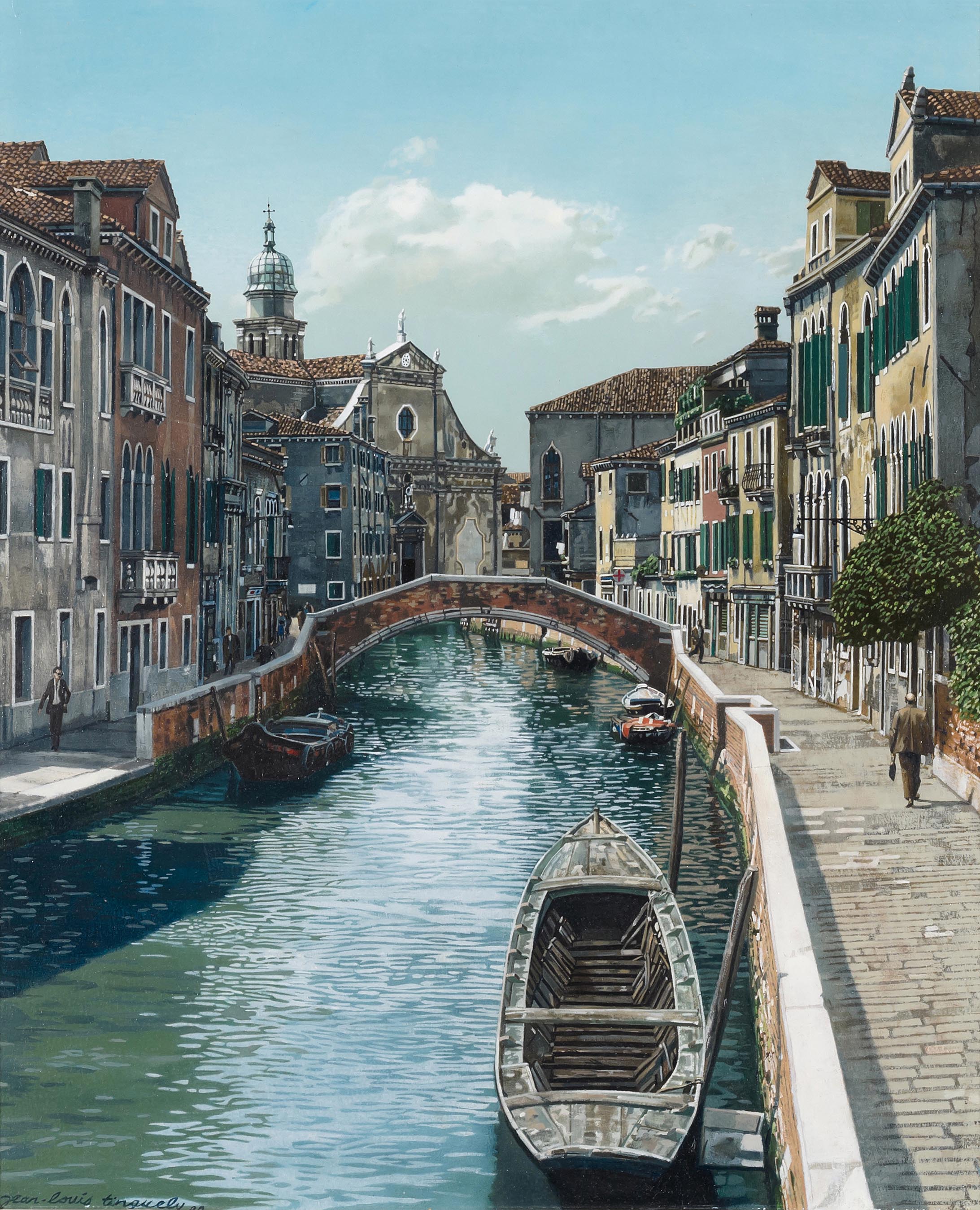 "Venise: Rio dei Carmini et Chiesa del Angelo Raffaele", 1989. Öl auf Holz. Unten links signiert und datiert, verso bezeichnet. 55x46 cm.