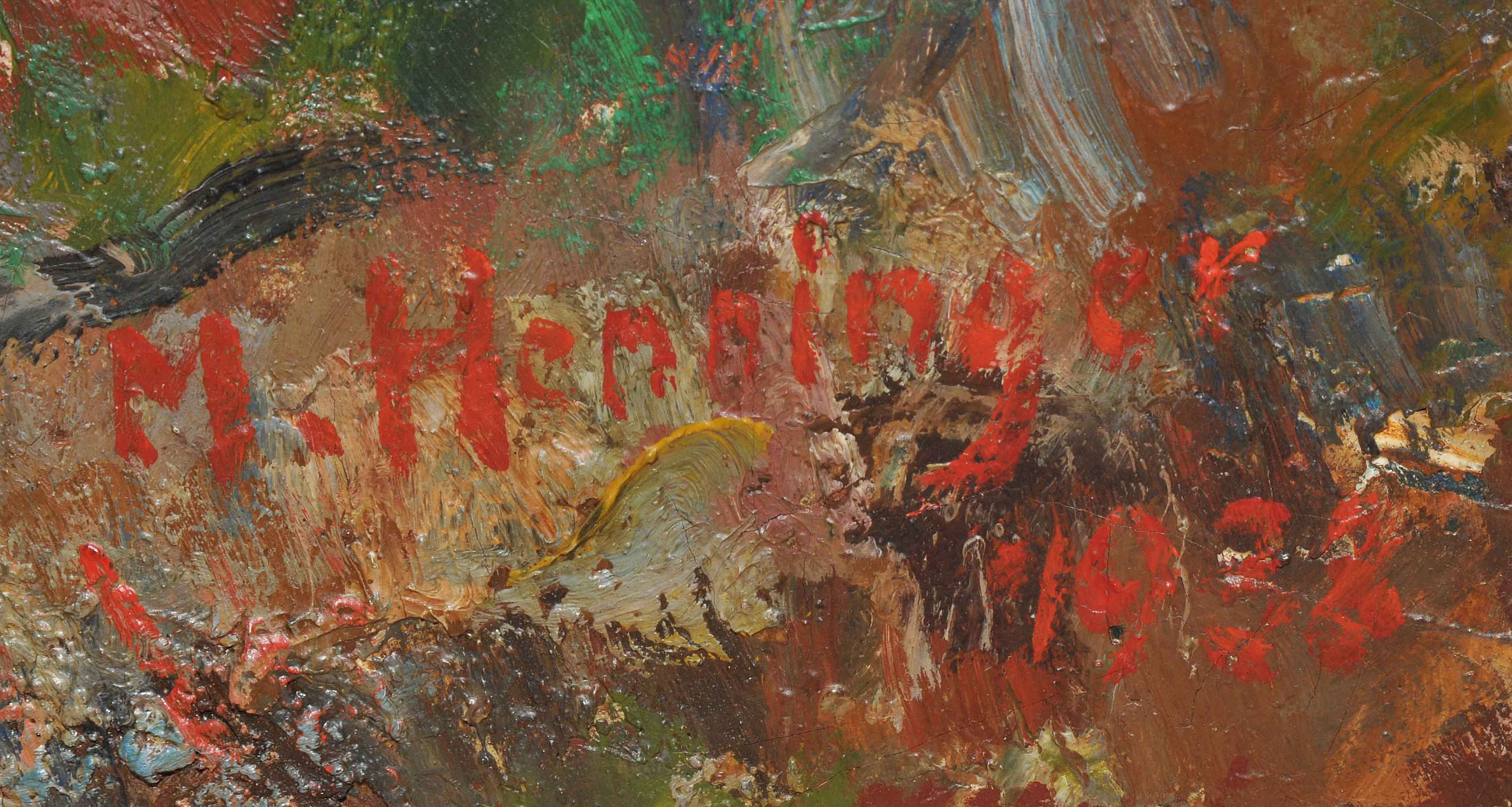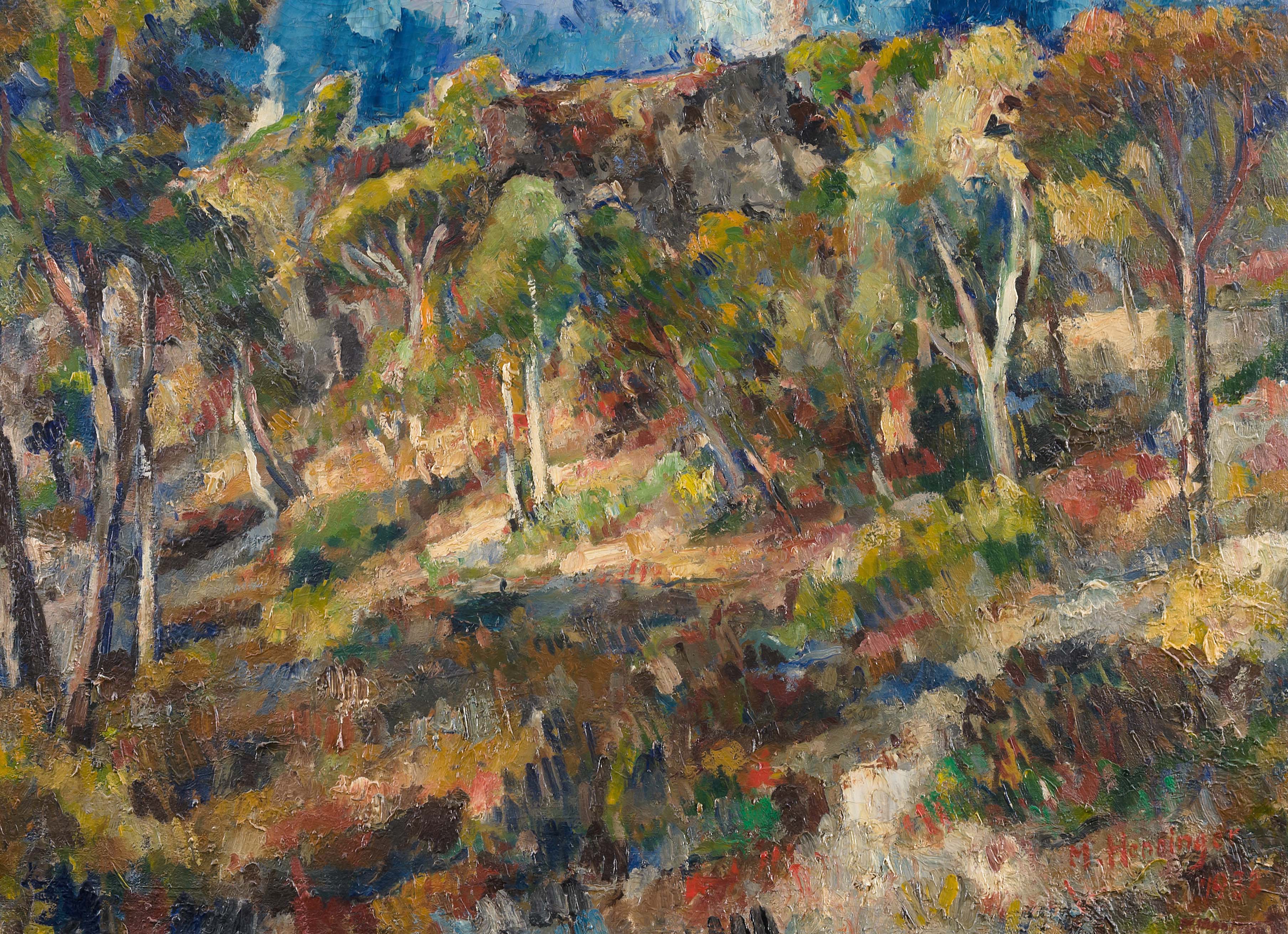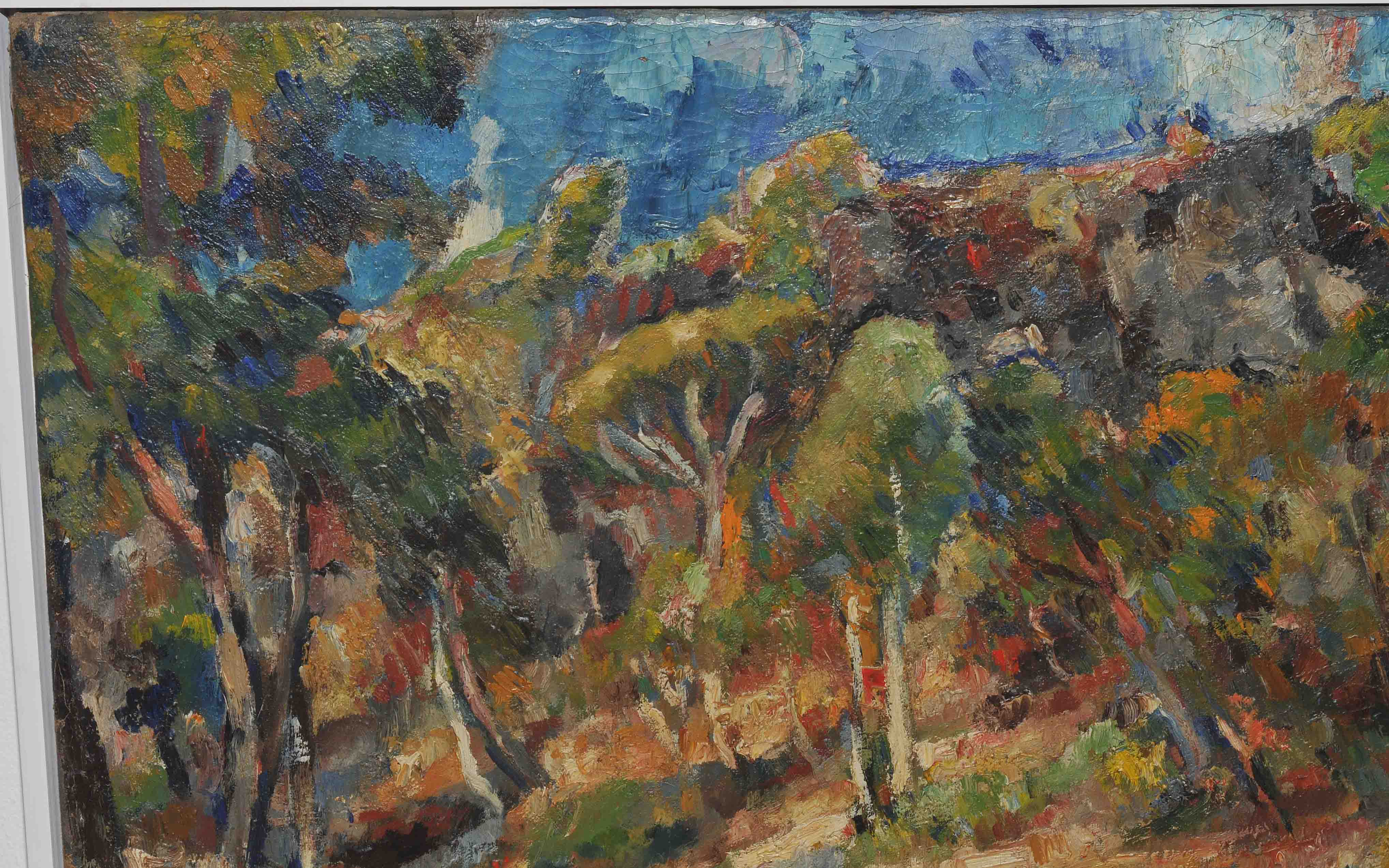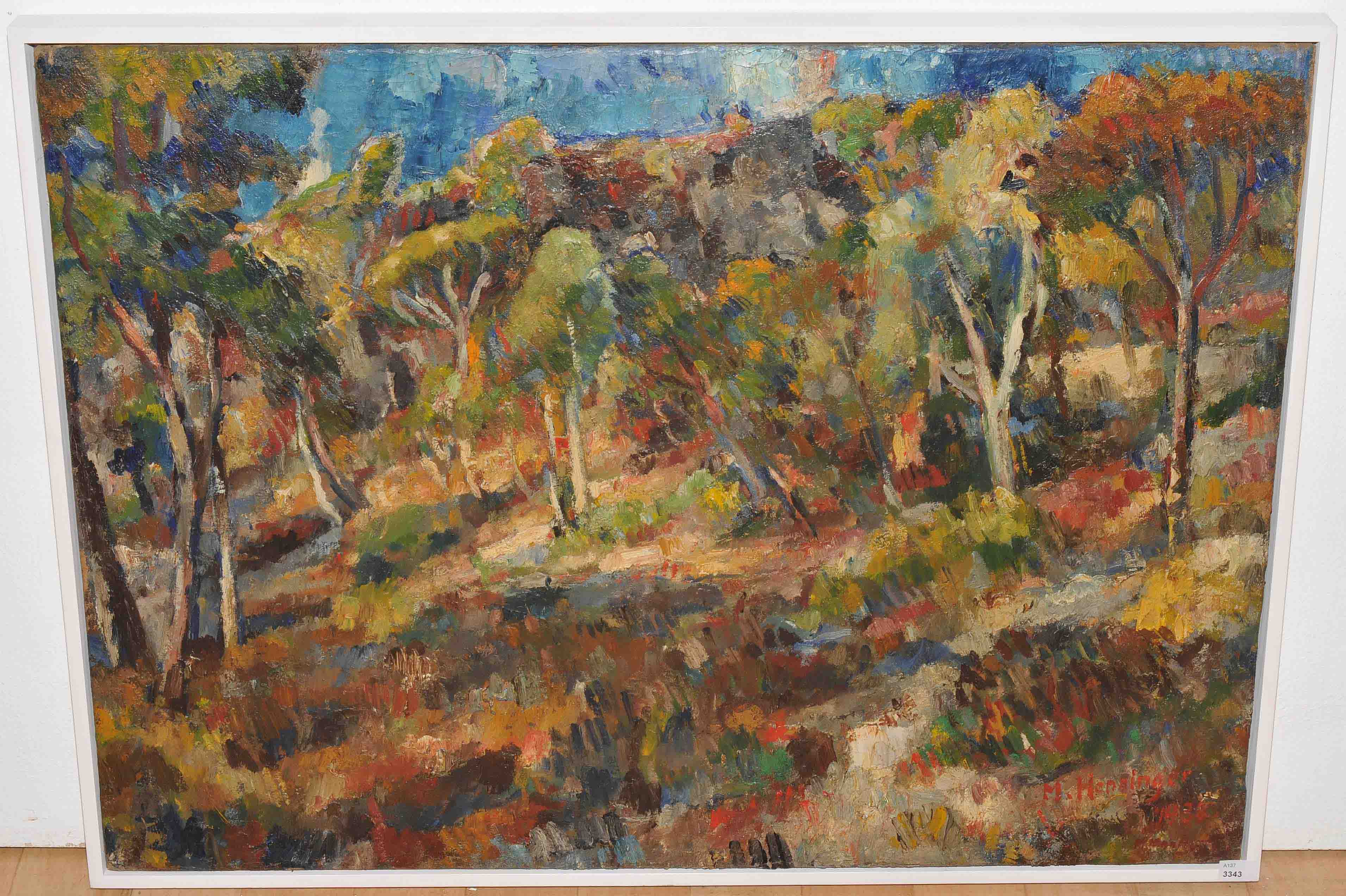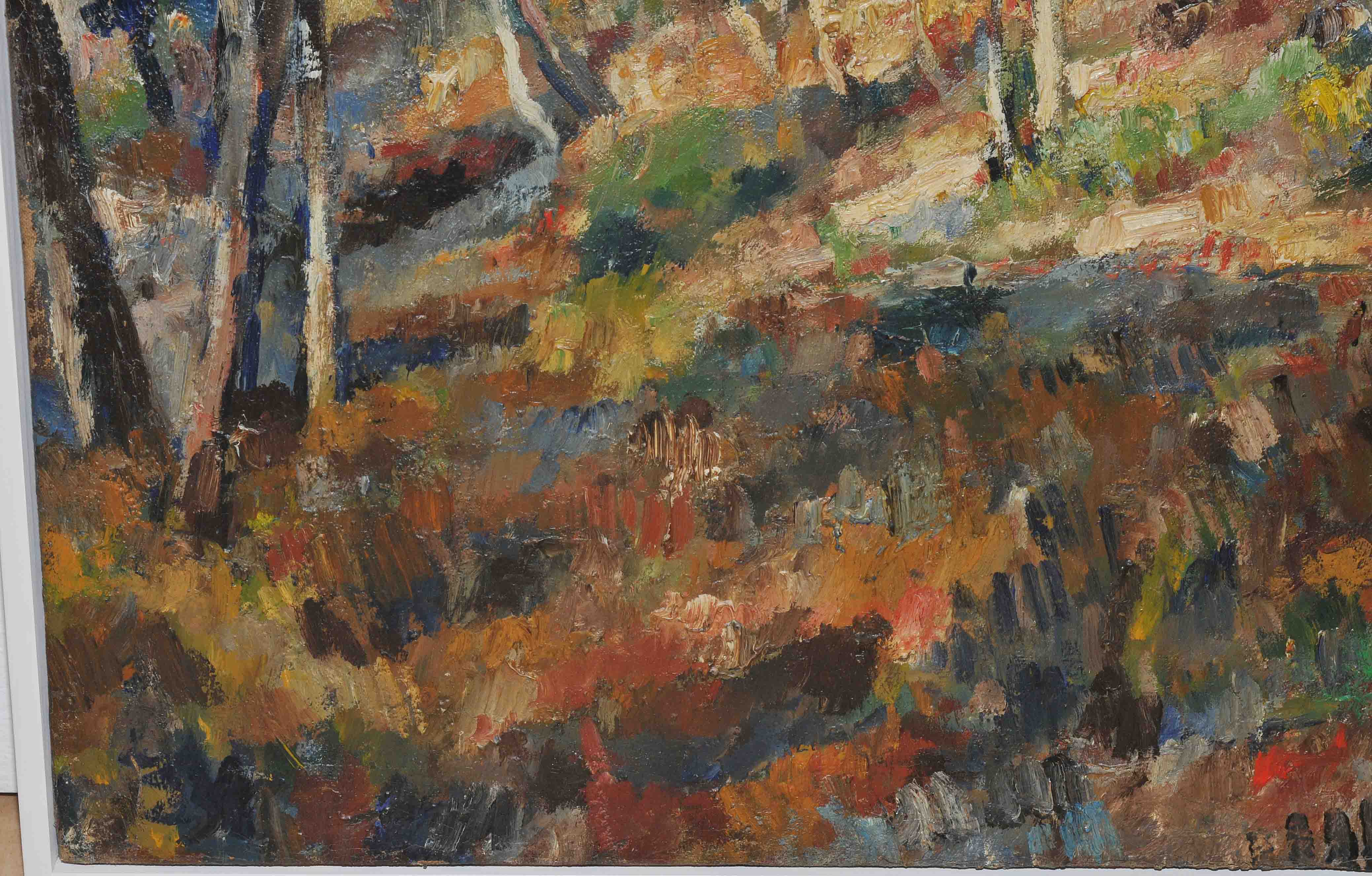 "Pian delle betulle". 1938. Öl auf Leinwand. Unten rechts signiert und datiert, verso auf Etikett betitelt. 53x71,5 cm.