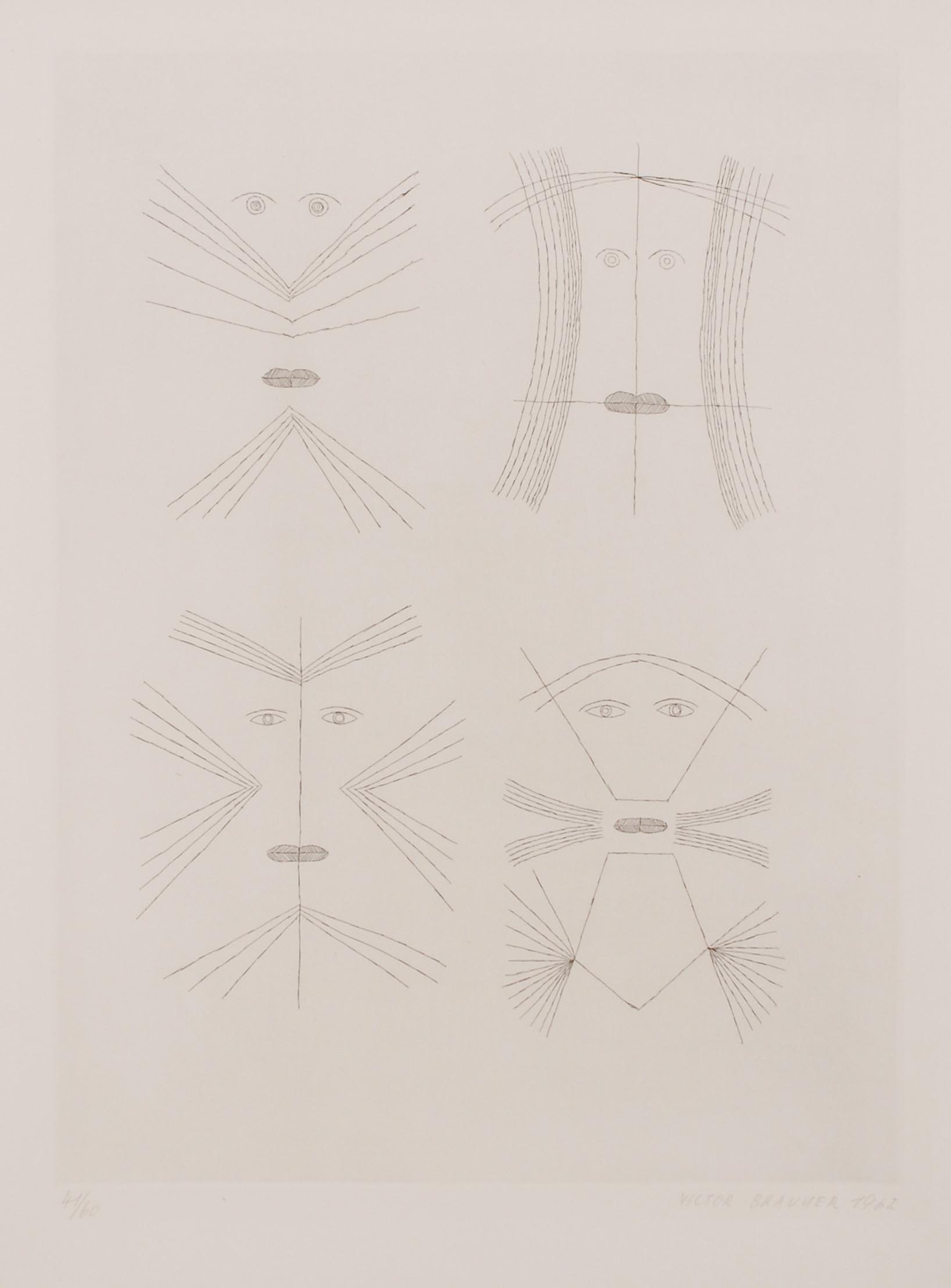 Codex d'un visage V. 1962. Radierung. 41/60. Unten rechts in Bleistift signiert und datiert. Blattgrösse 65x50 cm. Gerahmt. -Dieses Blatt wurde nicht ausgerahmt.