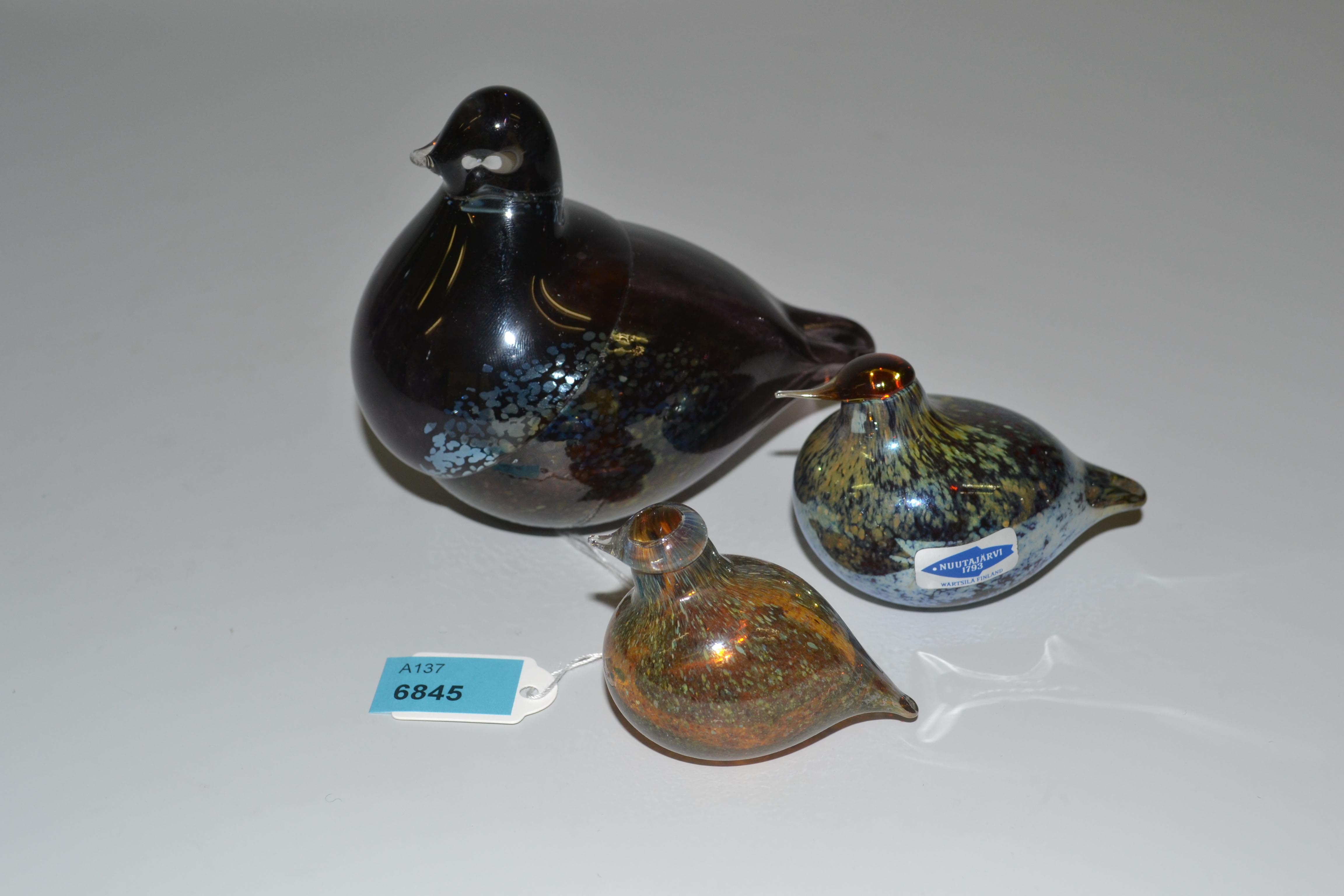 6845. 3 Tierfiguren: Vögel, Haparanda Glasbruk Sweden bzw. Nuutajärvi Wartsila Finland, 20.Jh.