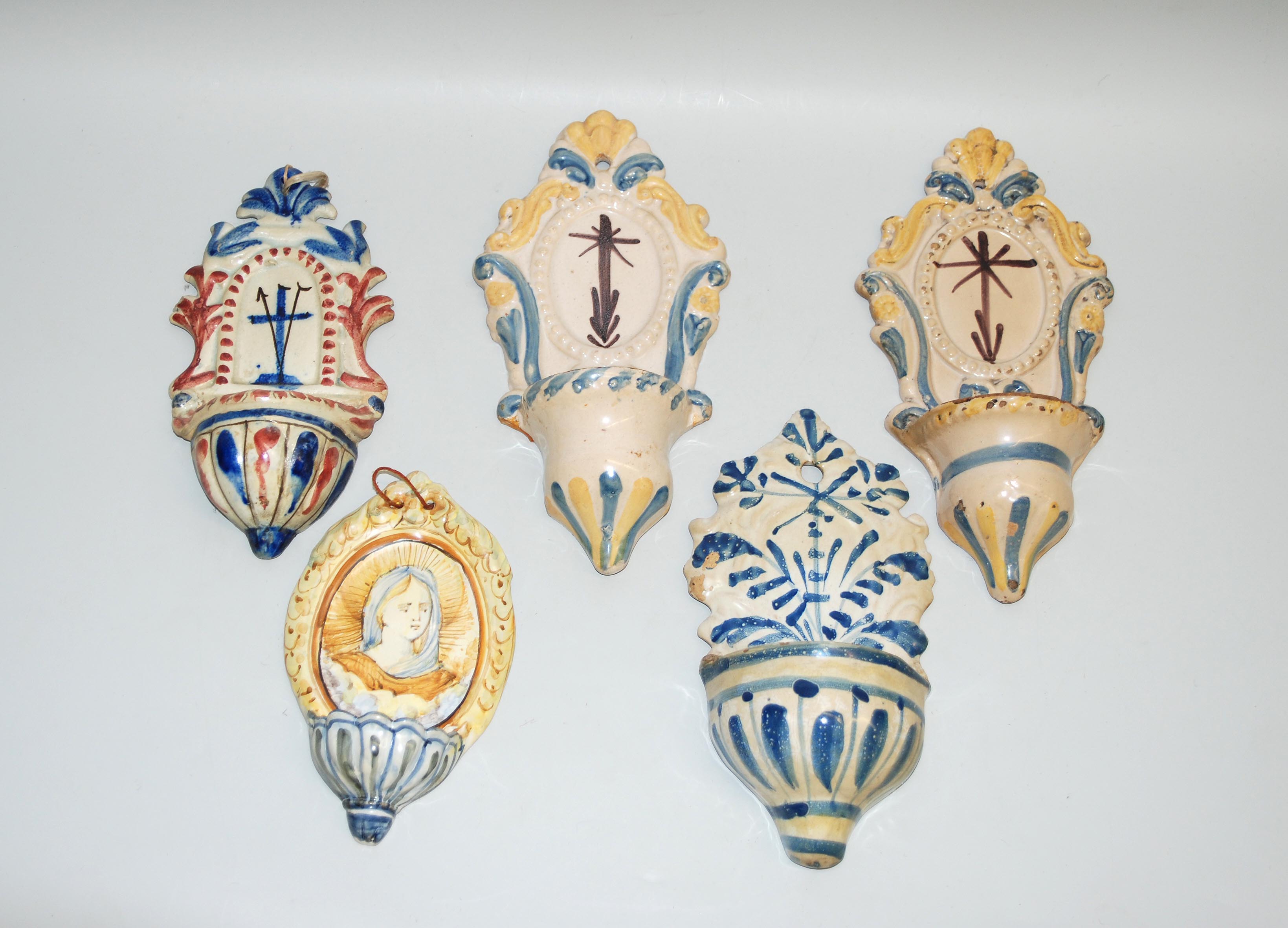 Italien, 20.Jh. Majolika. Polychromer Dekor, 1 mit Marienbildnis. H 17–24 cm.