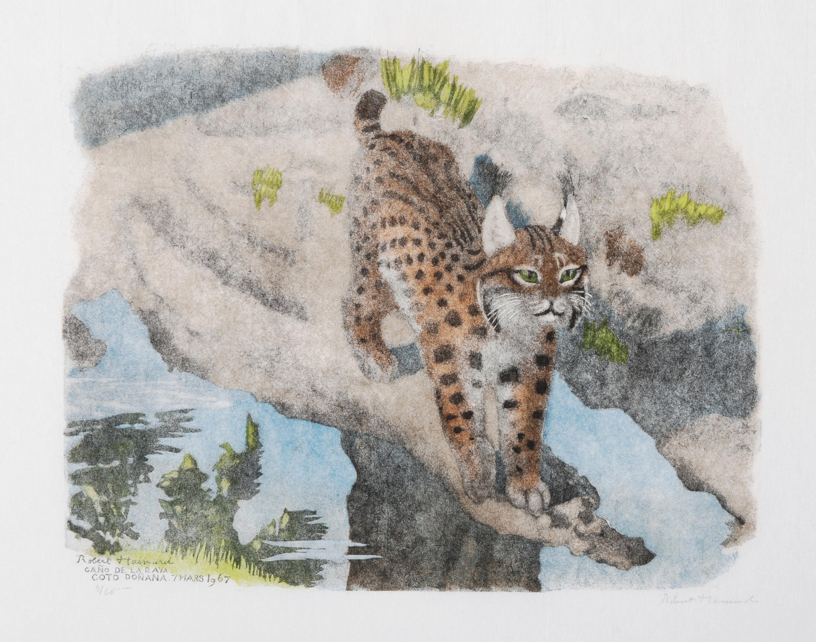 "Cayo de la Raya". 1967. Farbholzschnitt. 9/60. Unten rechts in Bleistift signiert. Unten links im Druck signiert, betitelt, bezeichnet: "Coto Donana 7 Mars 1967" und nummeriert. Blattgrösse 39,6x50 cm. -Ränder minimst bestossen. Wenige Knitter.