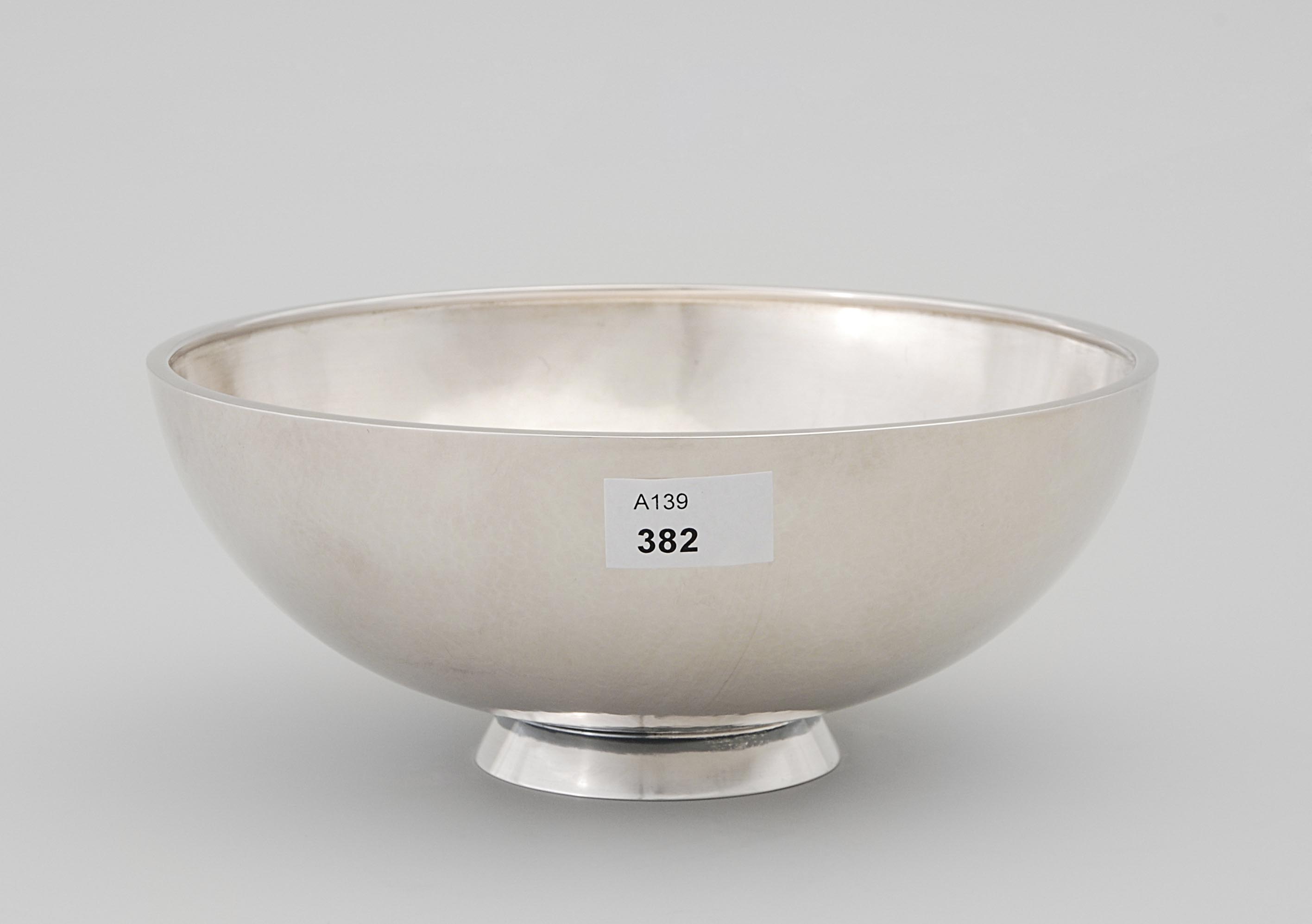Dänemark, 1950er Jahre. Silber. Meistermarke Hans Hansen, Modell Nr. 346. Runde Schale mit leichtem Hammerschlag über leicht ausgestelltem Fuss.