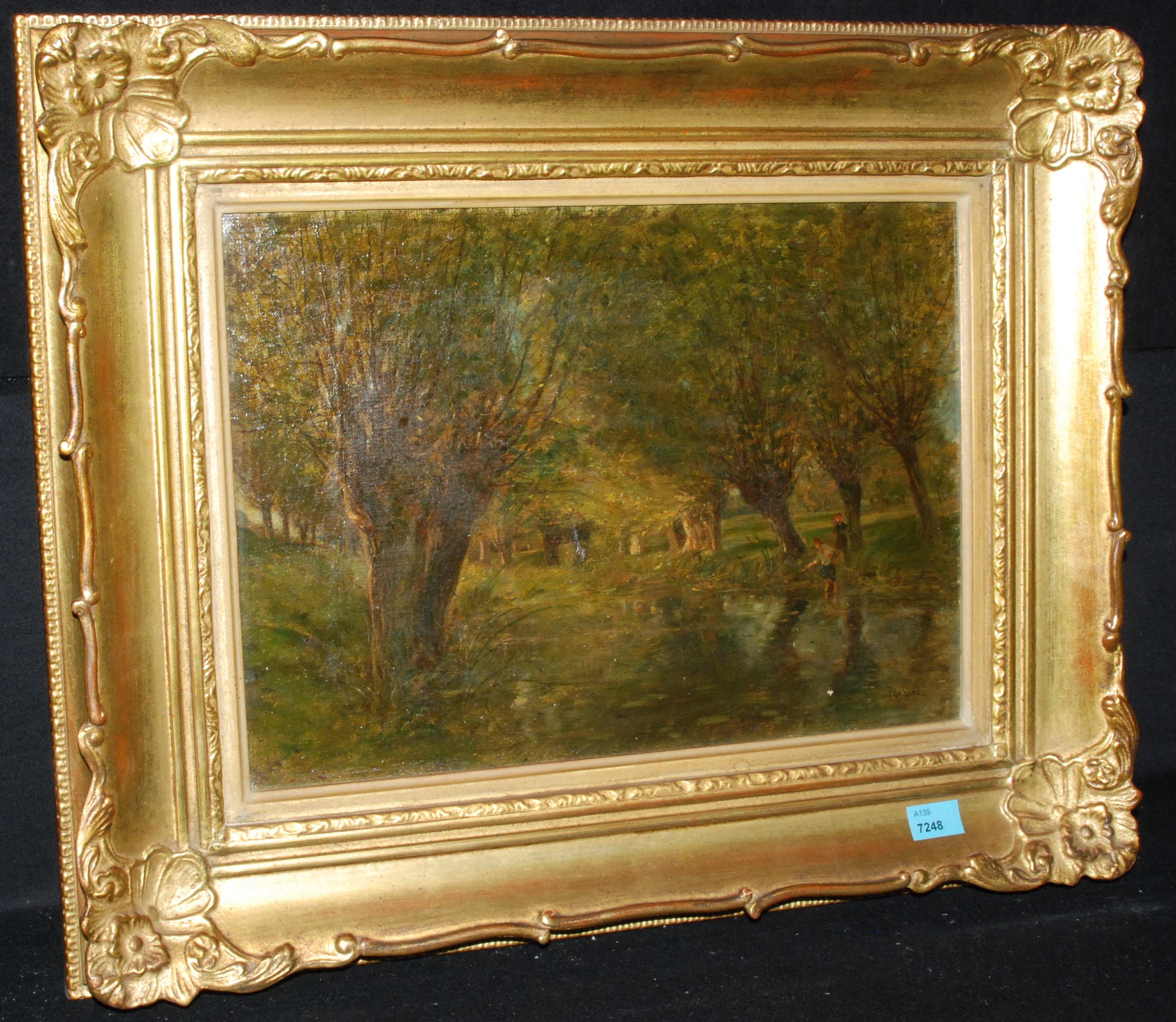 Am Weiher. Öl auf Leinwand. Unten links singiert. 24x33 cm.