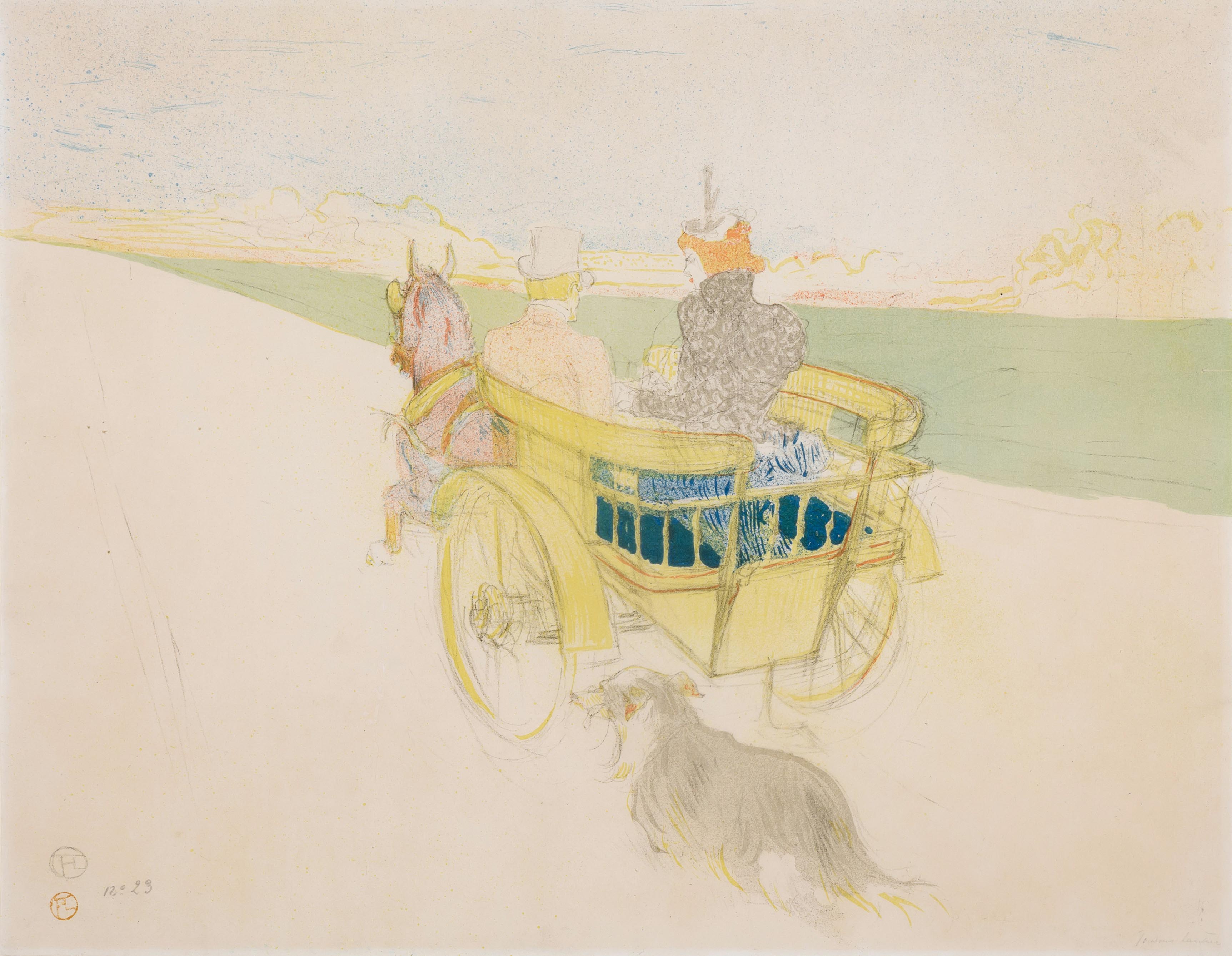 "Partie de campagne". 1897. Farblithographie. 23/100. Unten rechts in Bleistift bezeichnet: "Toulouse-Lautrec". Unten links im Druck monogrammiert und mit rot-orangem Monogrammstempel. Blattgrösse 39,5x50,7 cm. Gerahmt. -Dieses Blatt wurde nicht ausgerahmt. Blatt auf dünnem Japan aufgezogen. Kleine Einrisse sauber hinterlegt. Minimster Lichtrand.