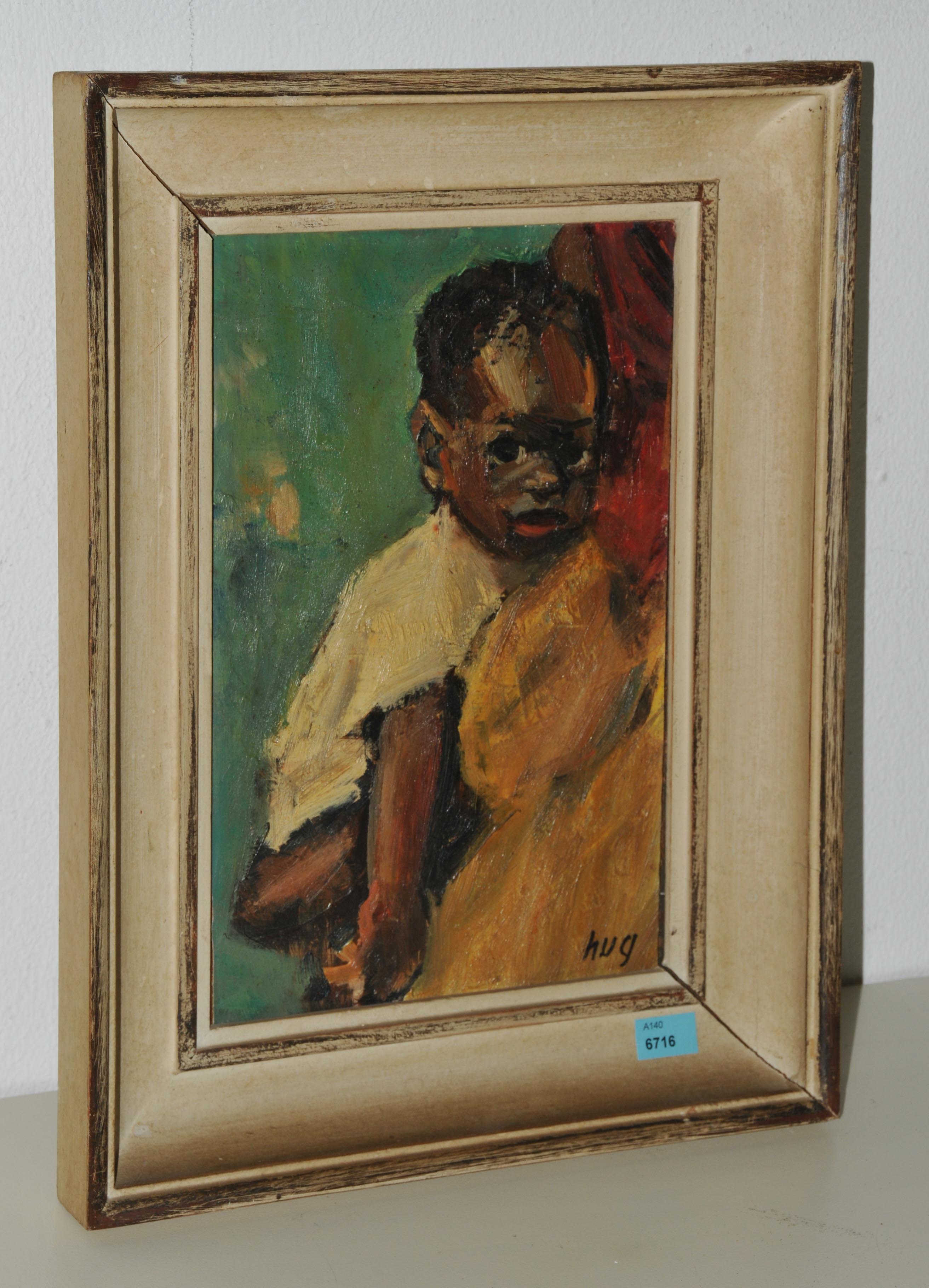 Mutter und Kind. Öl auf Hartfaserplatte. Unten rechts signiert. 28,5x18 cm.