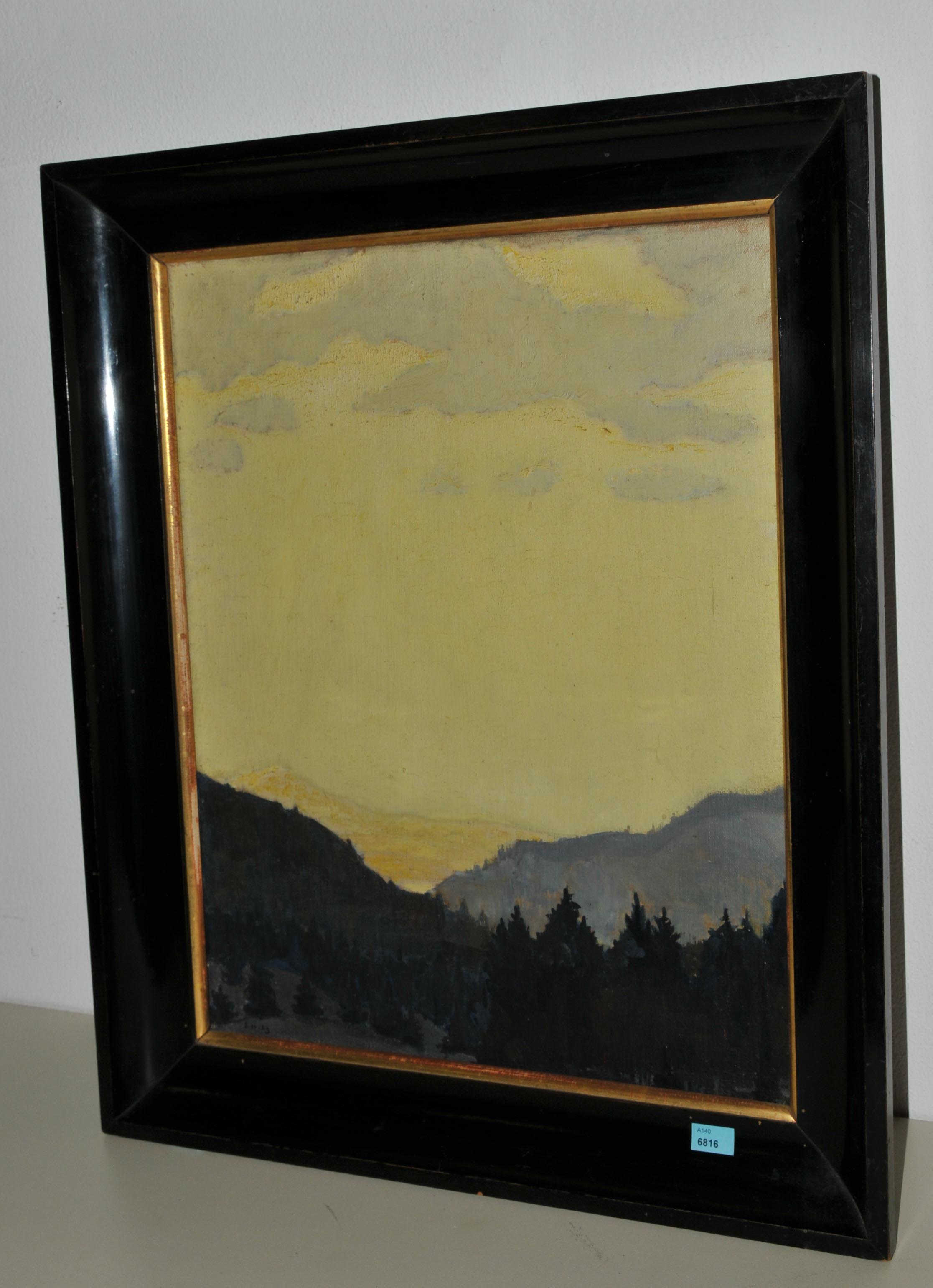 "Winteranfang im Schwarzwald". 1923. Öl auf Leinwand. Unten links monogrammiert und datiert. Verso auf dem Keilrahmen bezeichnet. 50x40 cm.