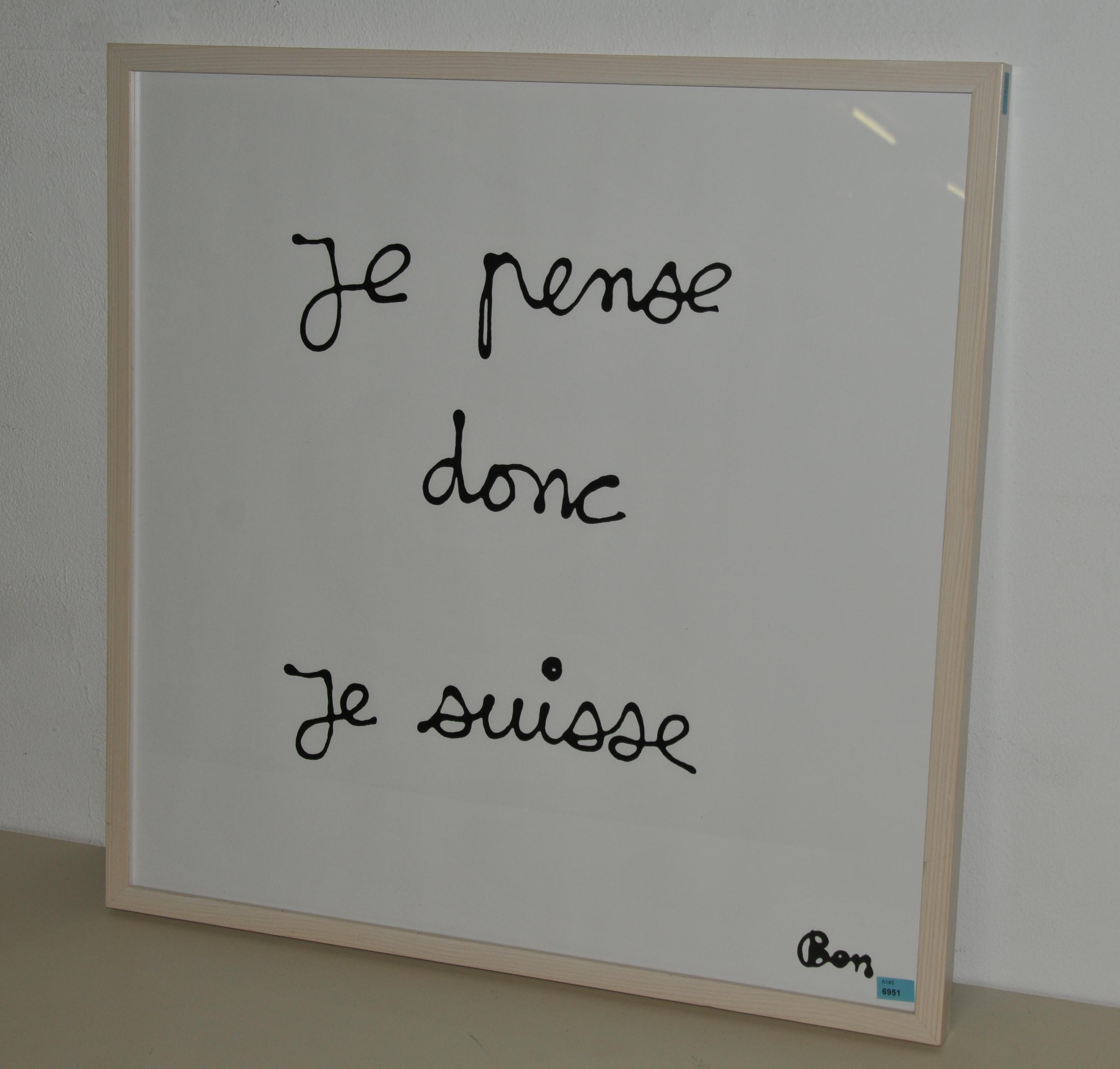"Je pense donc Je suisse". Serigraphie. Unten rechts im Druck signiert. Lichtmass 59x59 cm. Gerahmt.
