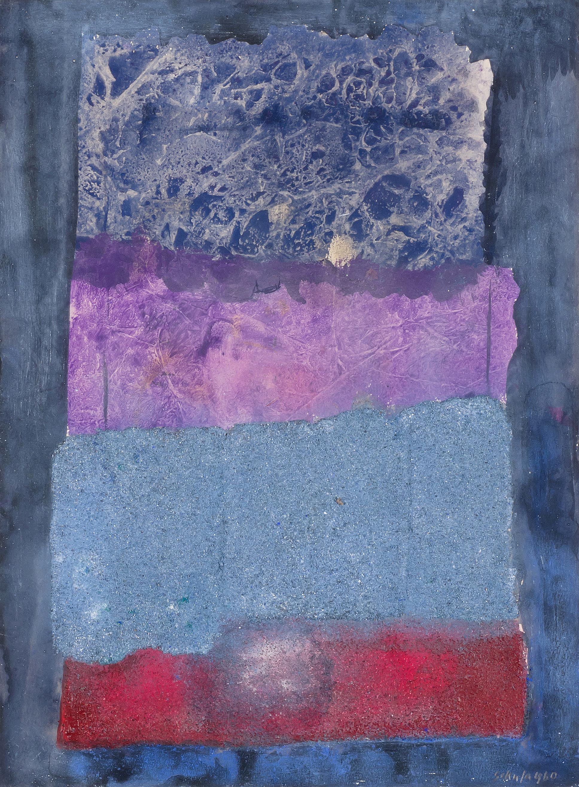 Ohne Titel. 1960. Gouache und Sand auf Papier. Unten rechts in Bleistift signiert und datiert. Blattgrösse 28,5x21,1 cm.