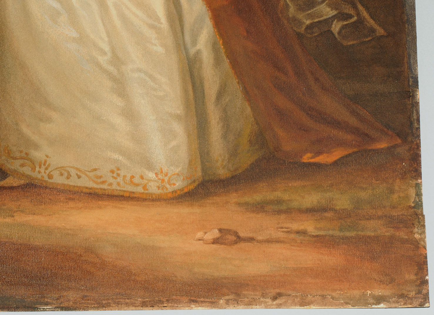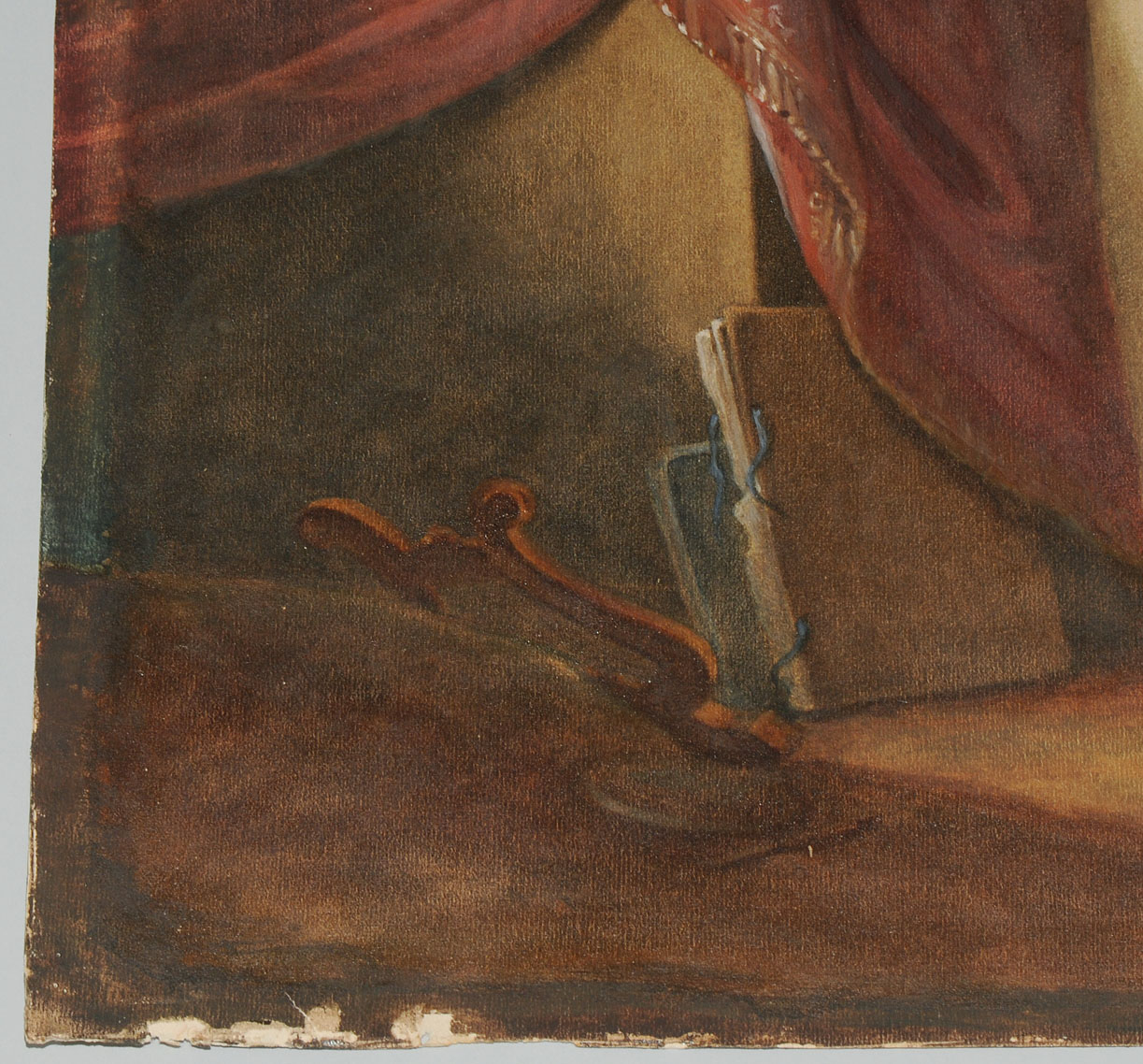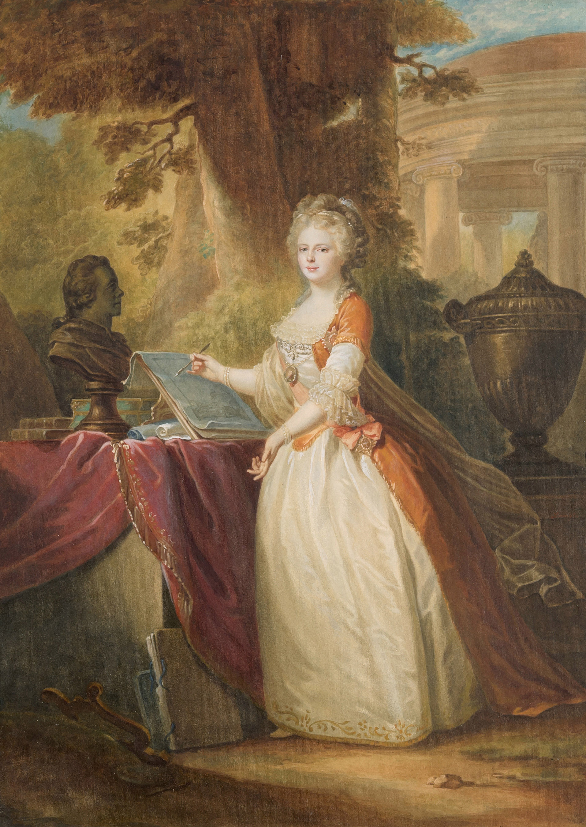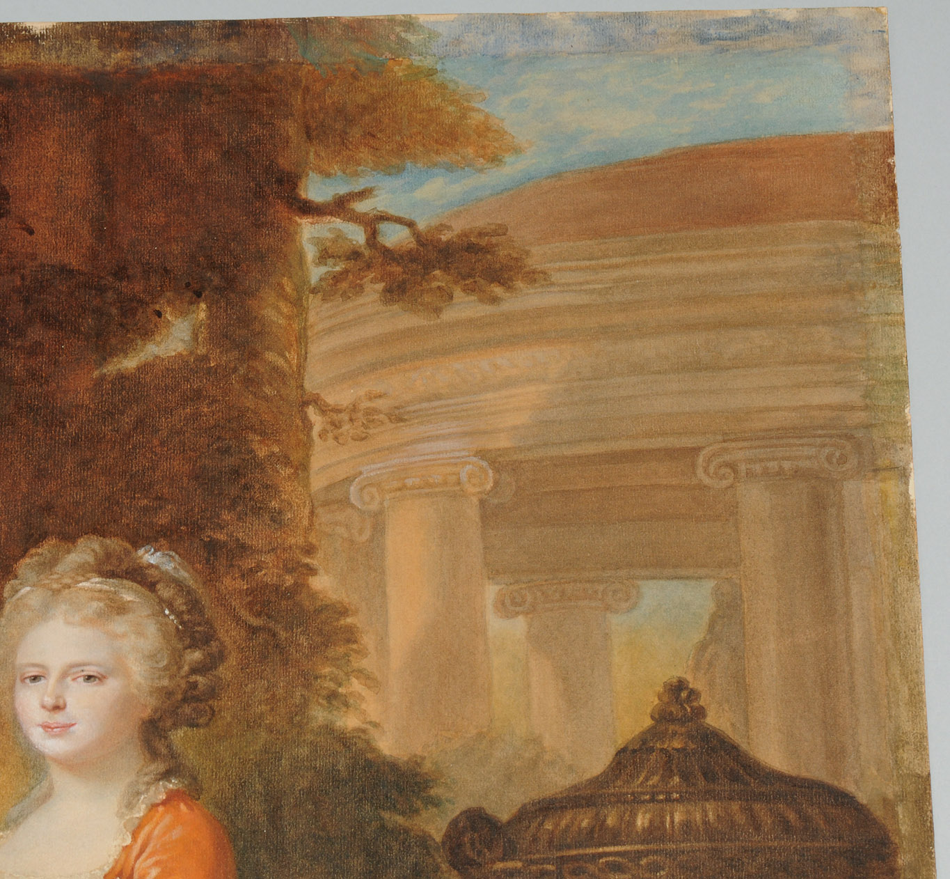 Anonyme, um einige Jahrzehnte jüngere Kopie des in seiner Zeit offenbar sehr geschätzten Portraits der späteren Kaiserin an ihrem Malpult im Garten ihrer Residenz. Joh. Bapt. Lampi, der von den höchsten europäischen Adelskreisen geschätzte und gesuchte Portraitist hielt sich 1791–1797 in St. Petersburg auf und porträtierte die ganze kaiserliche Familie Katharinas der Grossen, u. a. mehrmals auch die spätere Kaiserin. Sein 1795 entstandenes Portrait befindet sich heute noch in der ehemaligen kaiserlichen Sommerresidenz (und nachherigem Wittwensitz von Maria Fjodorowna) im Schloss Pavlovsk in St. Petersburg. Nach seiner Rückkehr nach Wien wurde Lampi 1798 als "Edler von Lampi" in den Reichsritterstand erhoben.