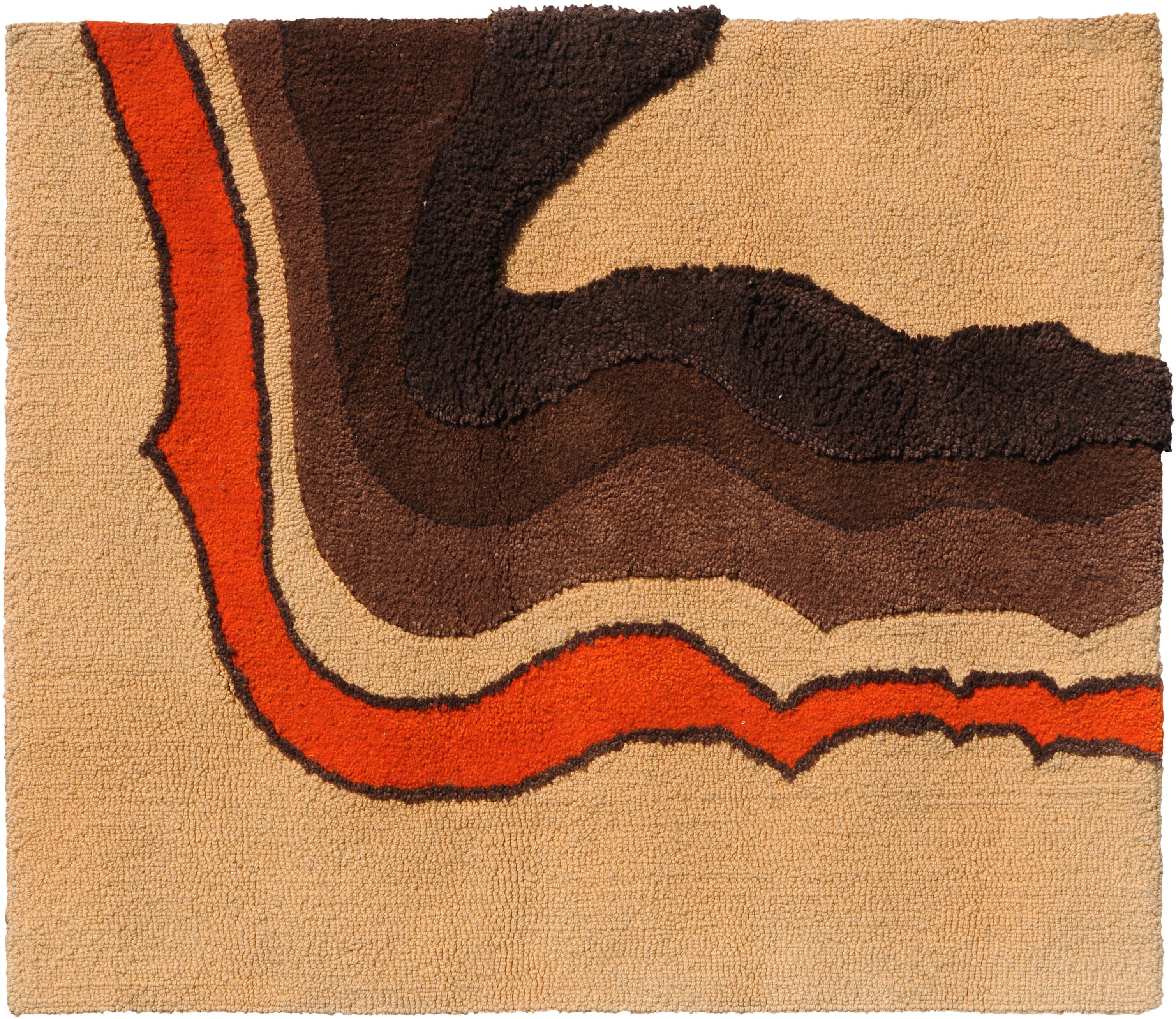 "Olympia 1972". Spannteppich. Reine Schurwolle. Verso mit angeklebten Etikett: "Original Ewald Kröner". 135x118 cm. -Angeklebtes Rücktextil löst sich ab.