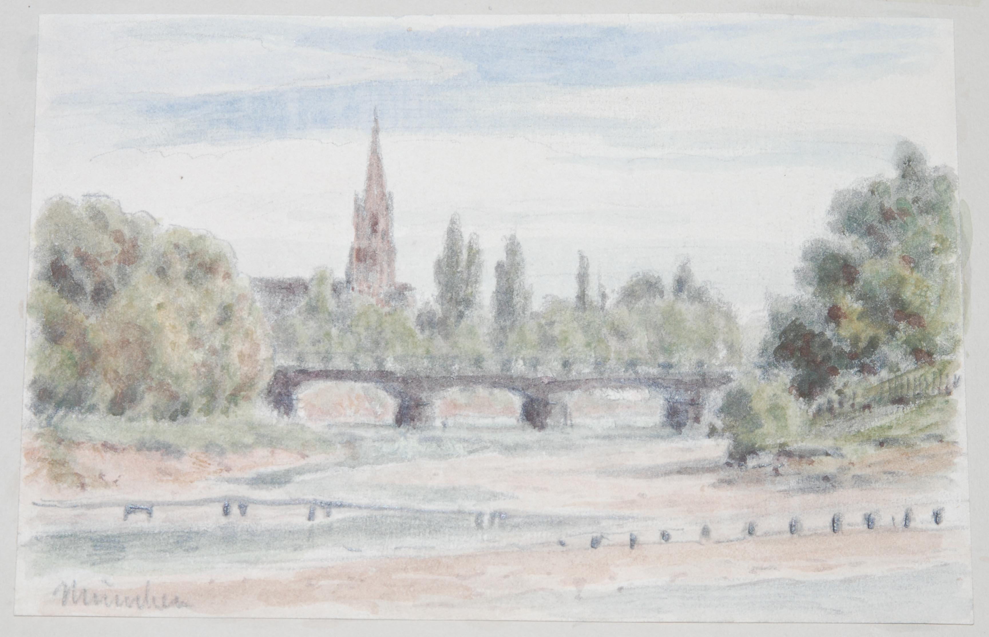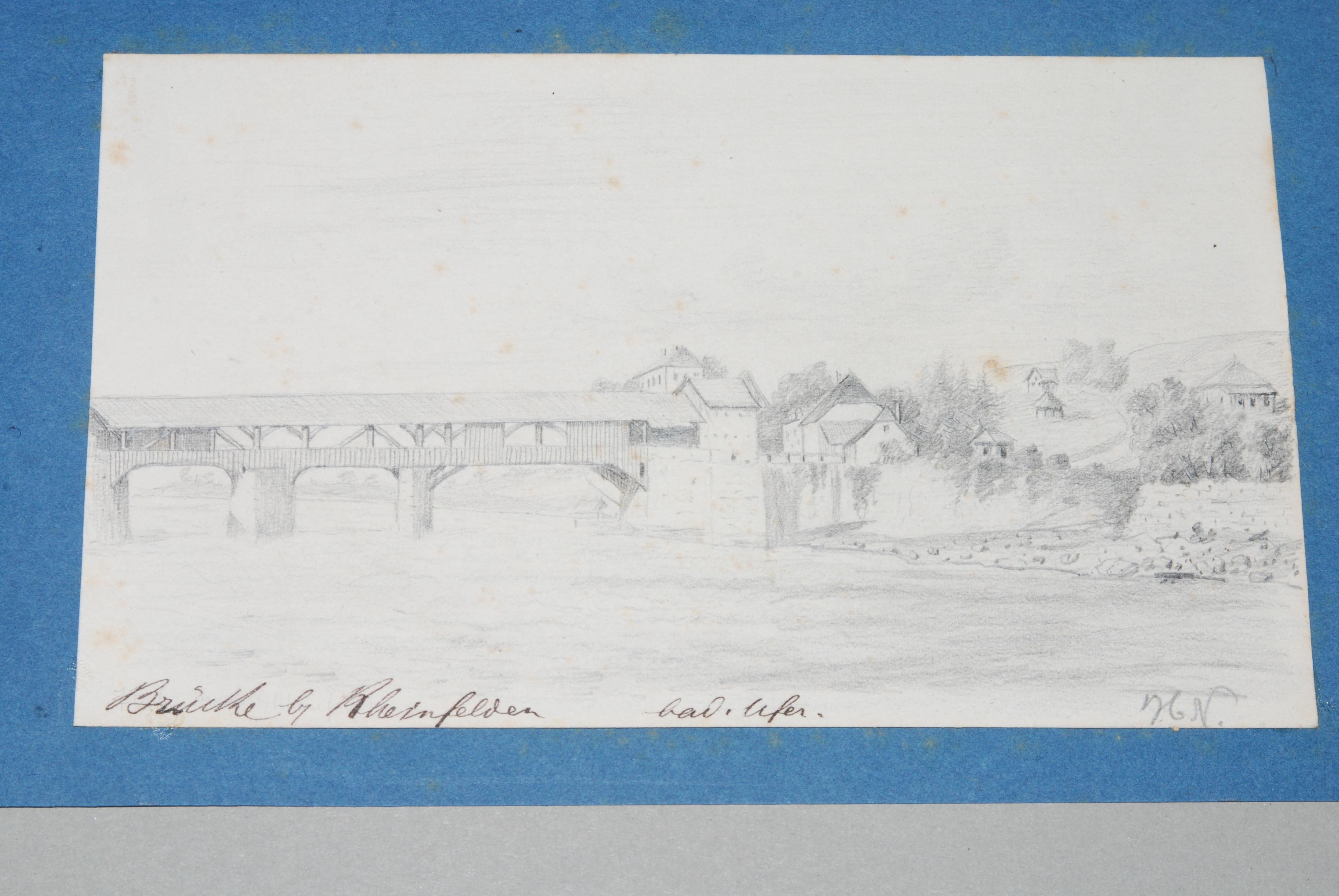 Sammelnummer mit 6 (3 aquarelliert) Bleistiftzeichnungen von Heinrich Nägeli, 1875/89. Die Bll. bezeichnet und teilweise datiert, signiert oder monogrammiert. 8°. Vorhanden sind u.a. folgende Ansichten: Büsingen, Küssaberg, München, Waldshut etc.