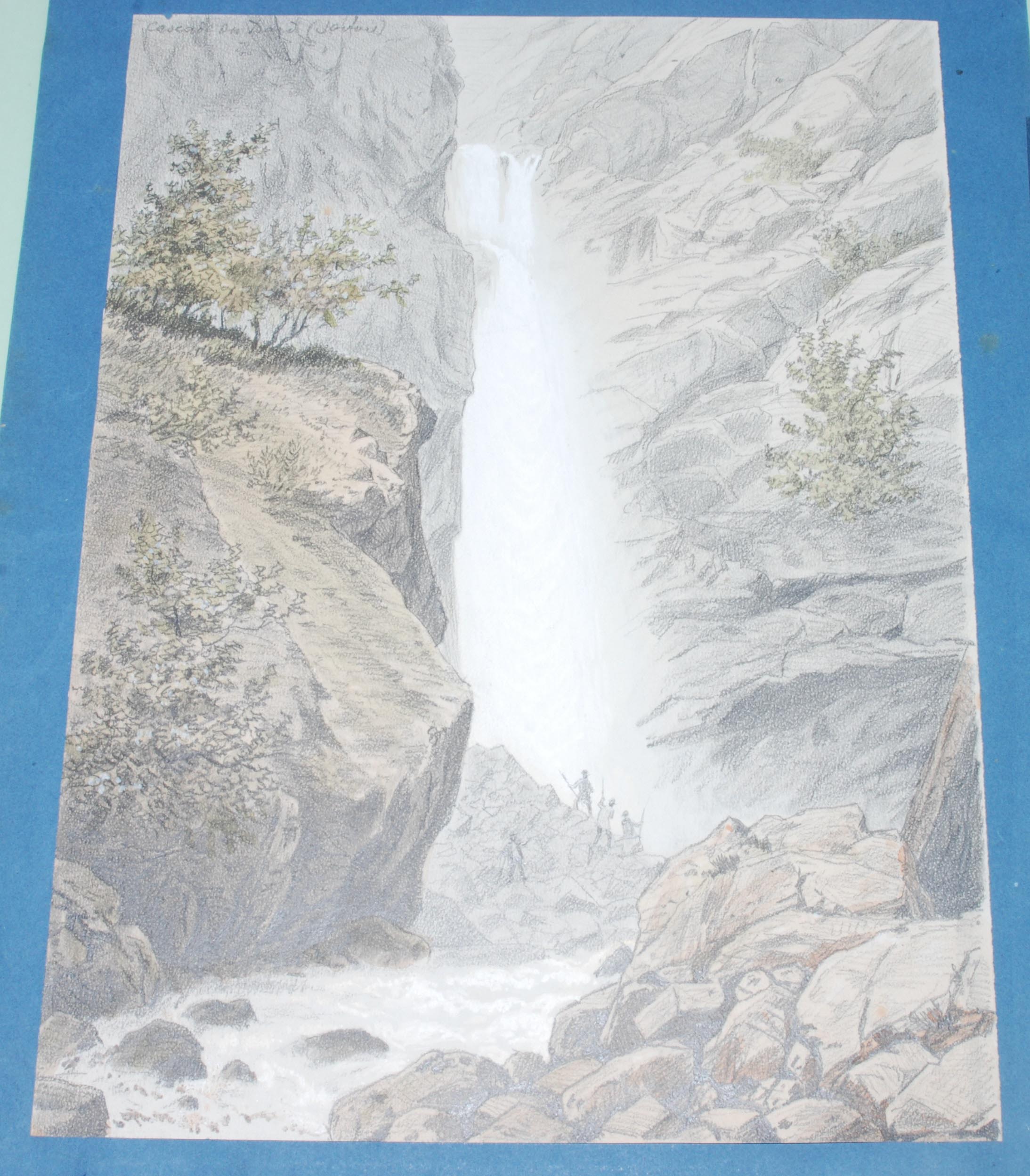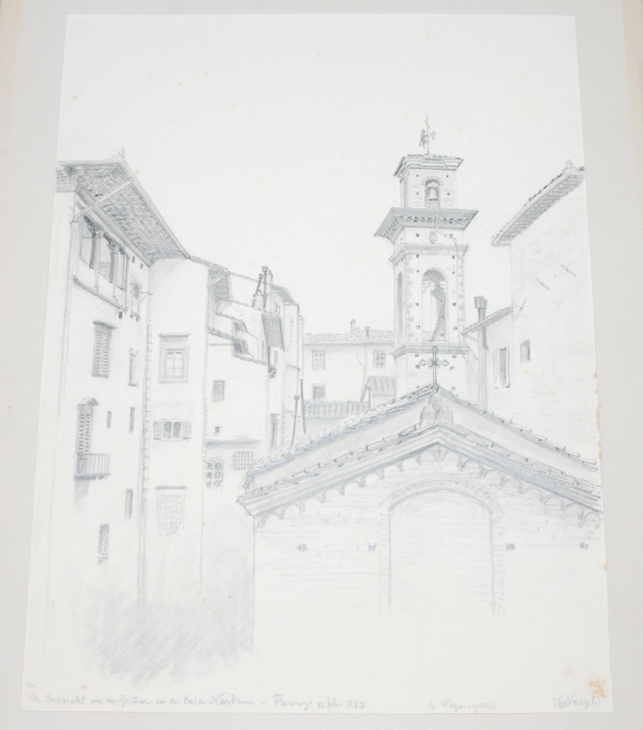 Sammelnummer mit 4 (2 aquarelliert) Bleistiftzeichnungen von Heinrich Nägeli, 1885/88. Die Bll. bezeichnet und teilweise datiert und signiert. 8° – Folio. Vorhanden sind folgende Ansichten: Campione, Florenz u. Cascade du Dard.