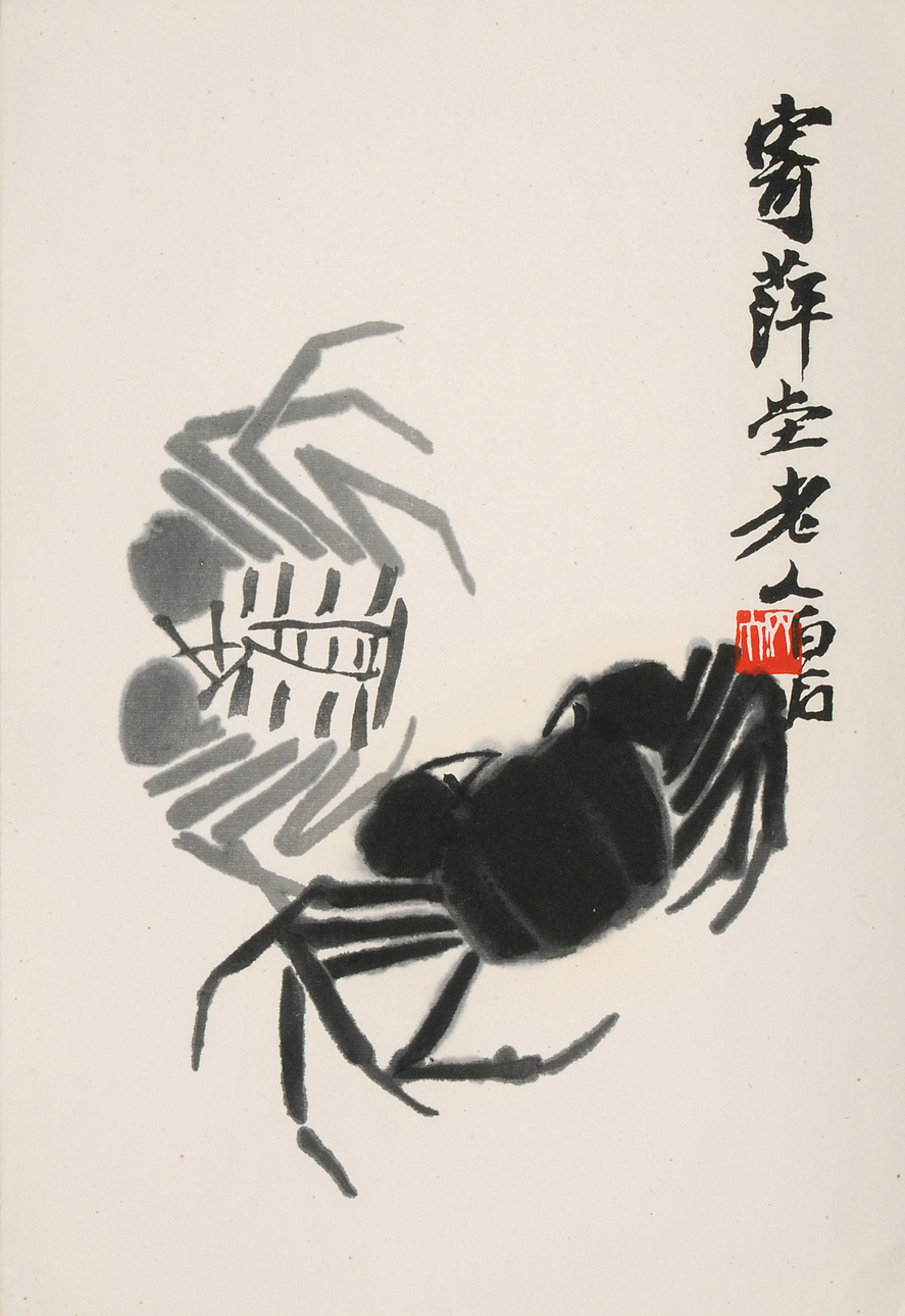 Rongbaozhai, Beijing 1952, 5. Monat. Leporello-Album mit 22 Farbholzschnitten von Qi Baishi. Brokatbespannte Hülle. 31,5x21,7 cm.