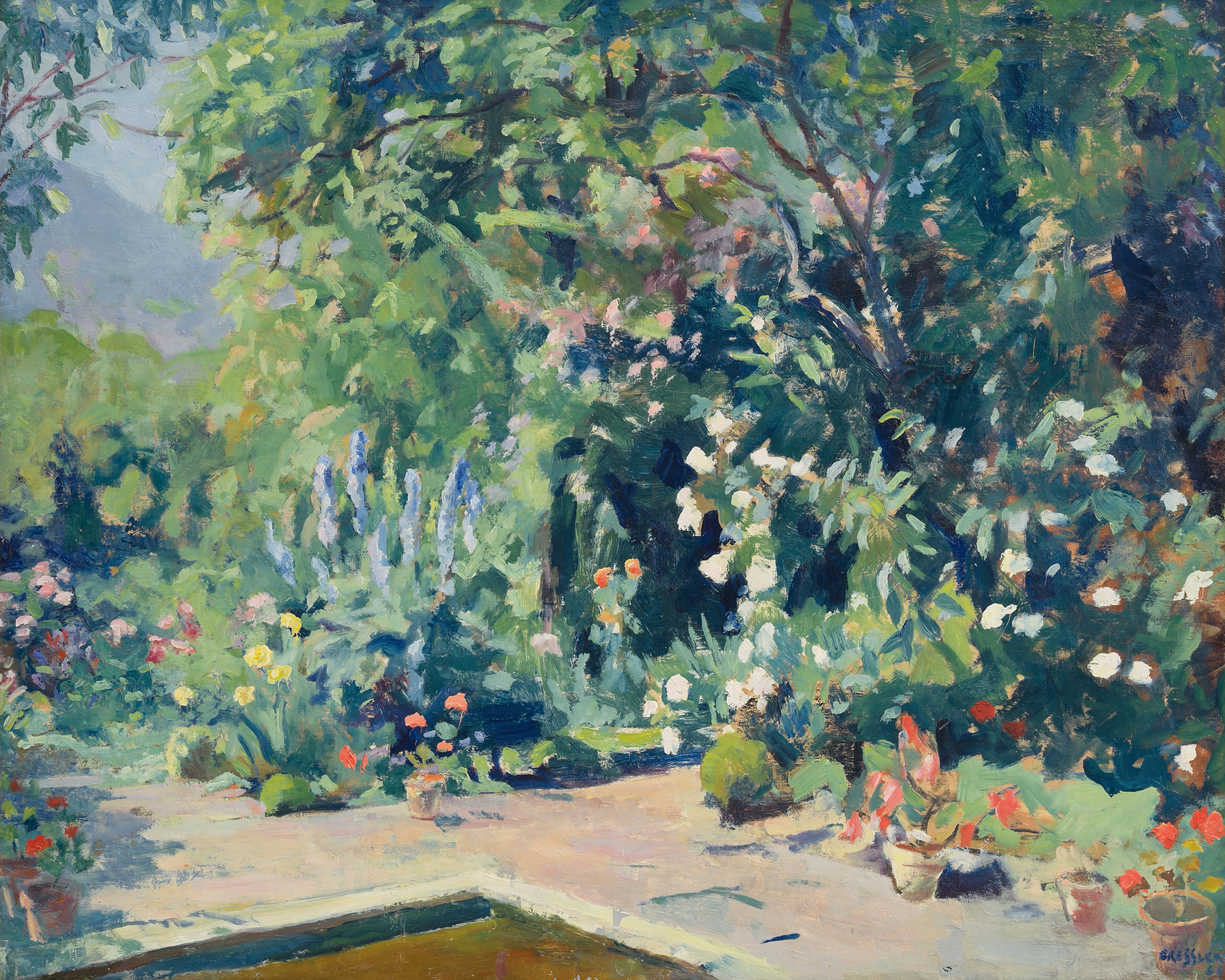 Sommerliche Gartenpartie, 1944. Öl auf Leinwand. Unten rechts signiert und datiert. 65x81 cm.