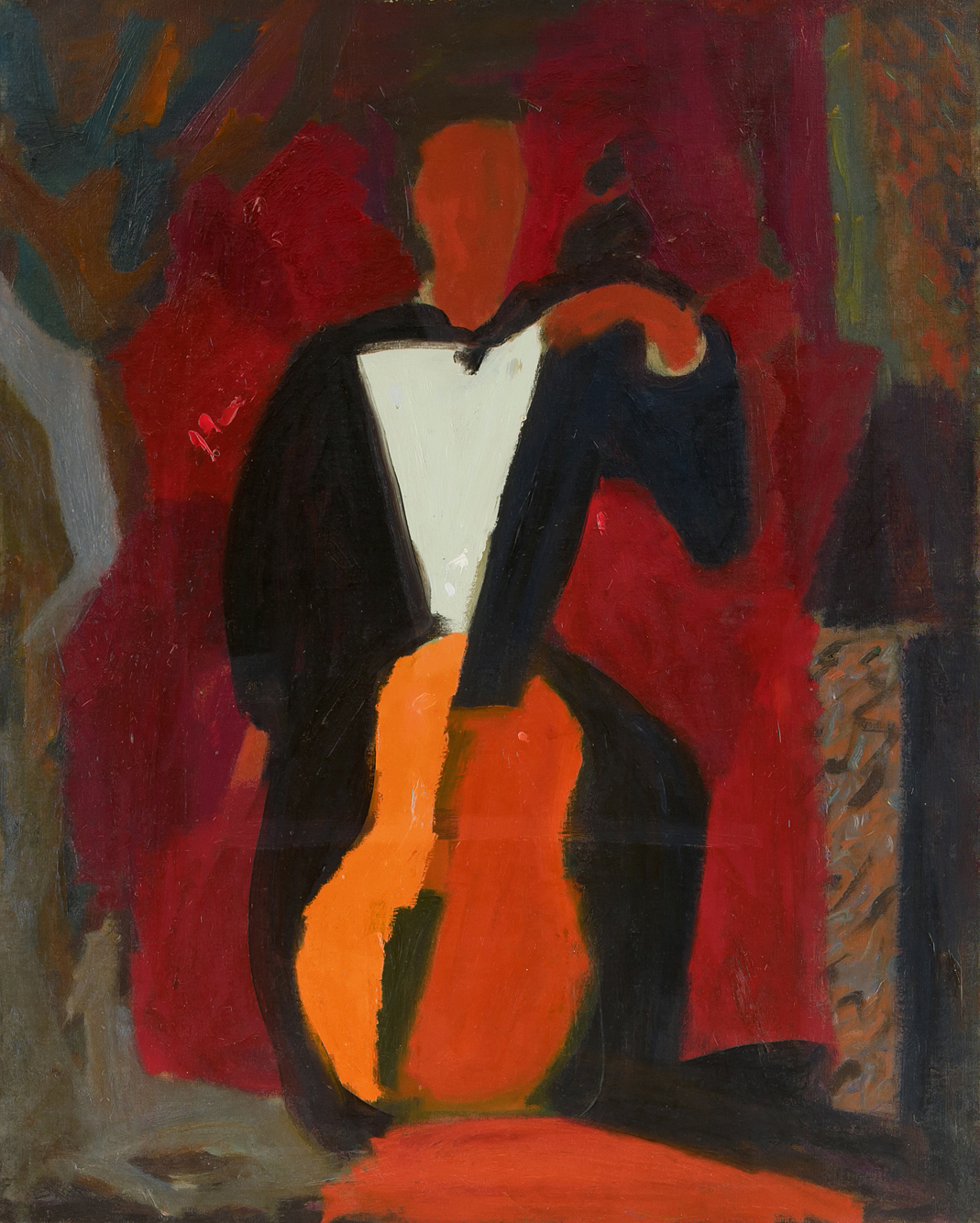 "Le Violoncellist", 1947. Öl auf Leinwand. Verso signiert, bezeichnet, datiert und mit dem Atelierstempel versehen. 92x73 cm.