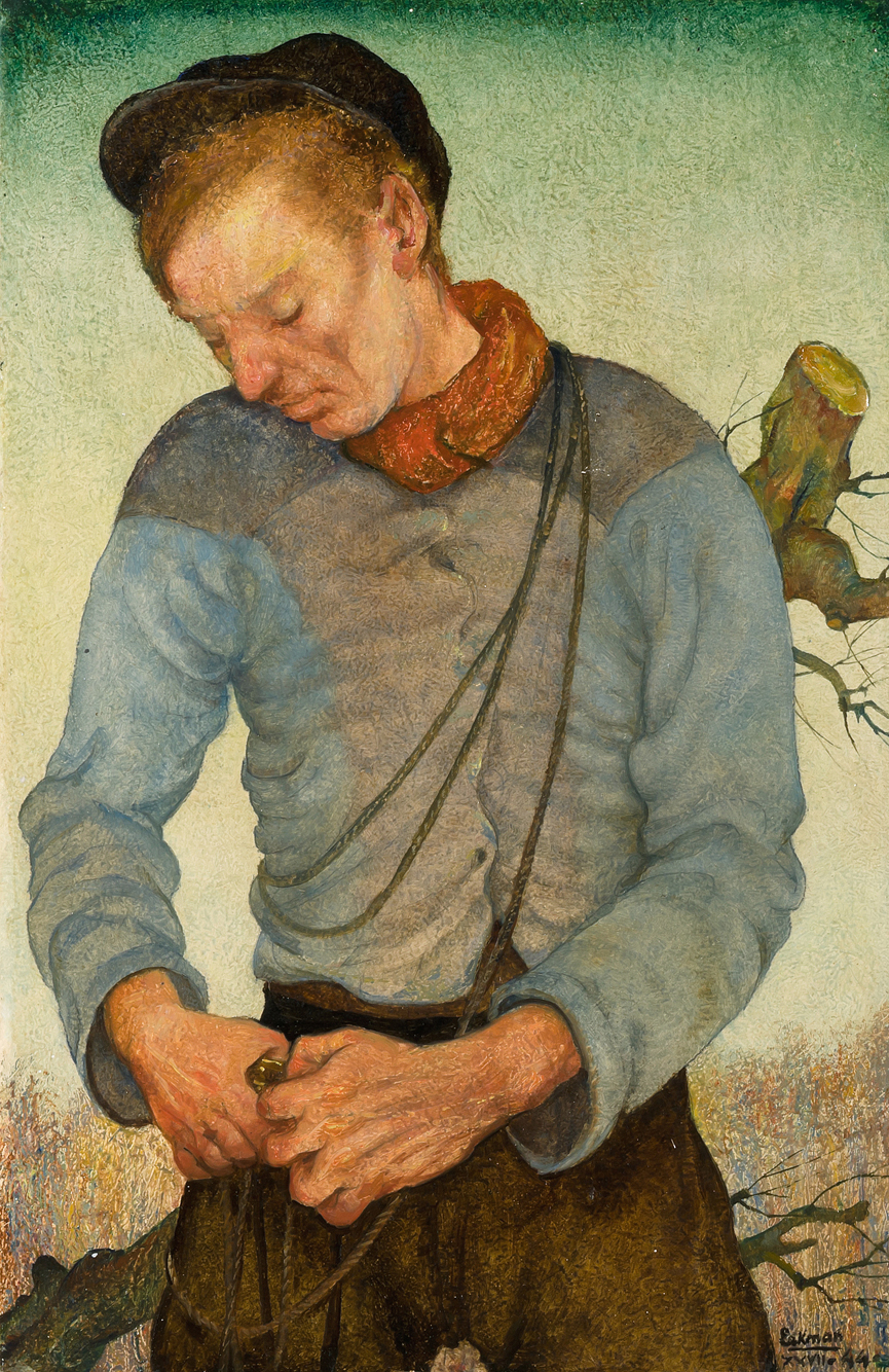 L'Elagueur. 1944. Unten rechts signiert und datiert, verso betitelt, signiert, nummeriert, datiert und ortsbezeichnet Paris. 41x27 cm.