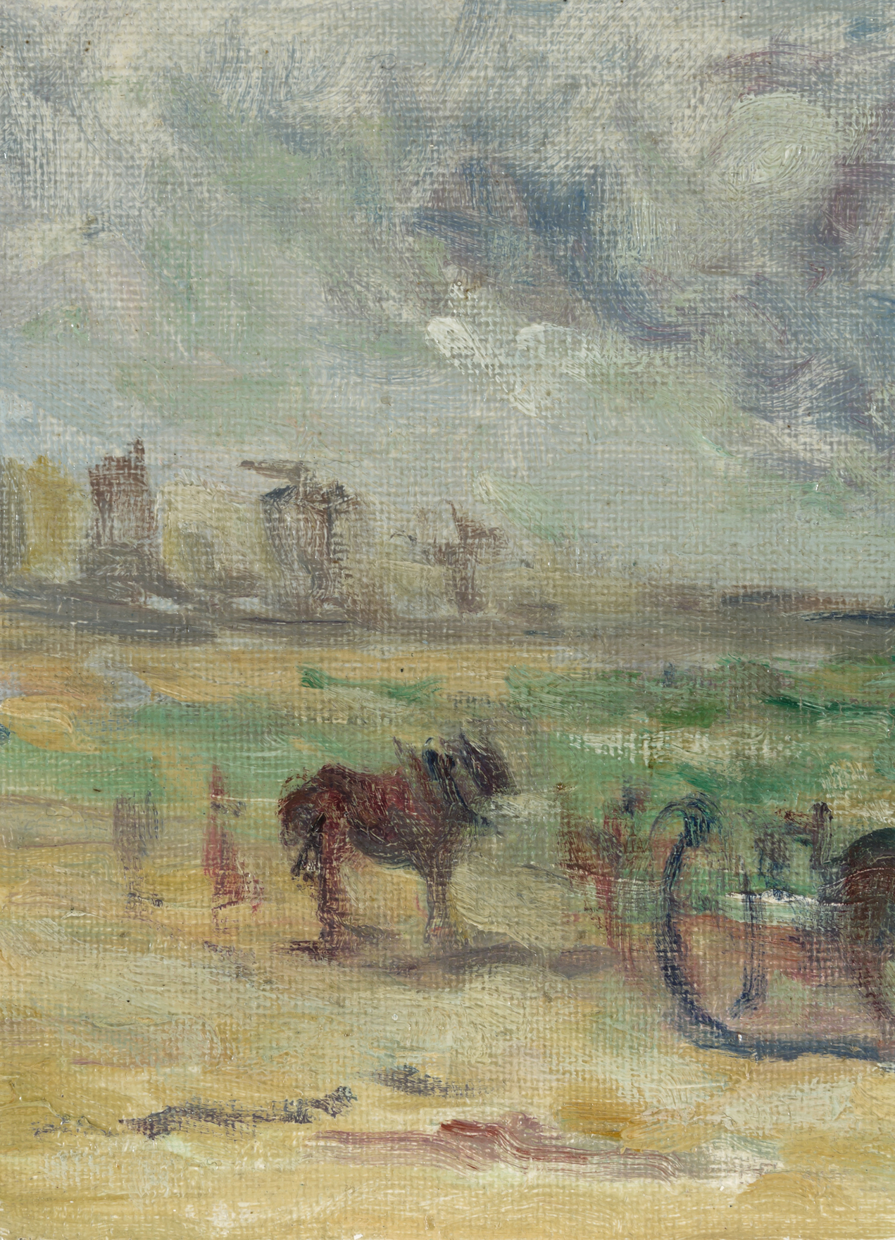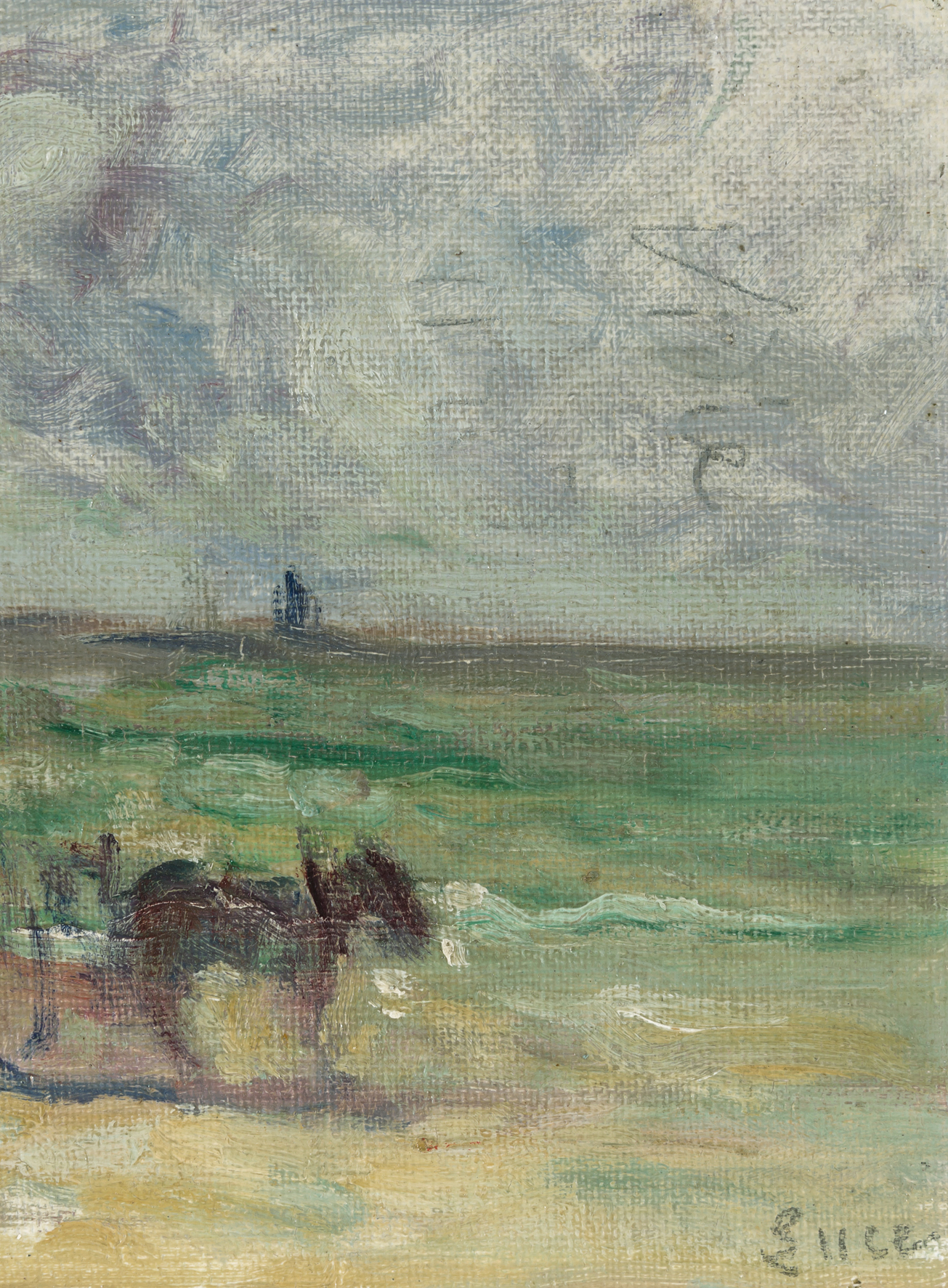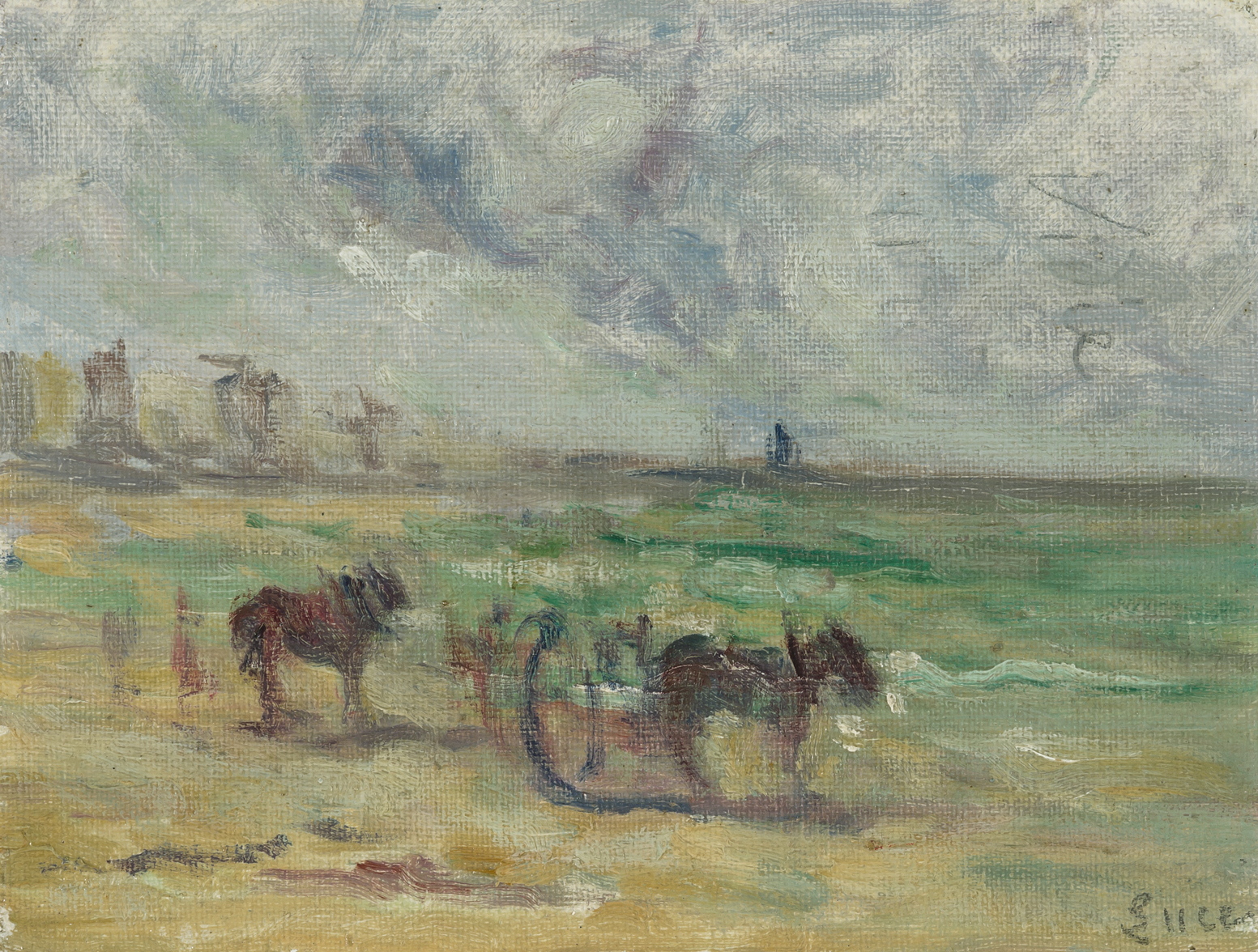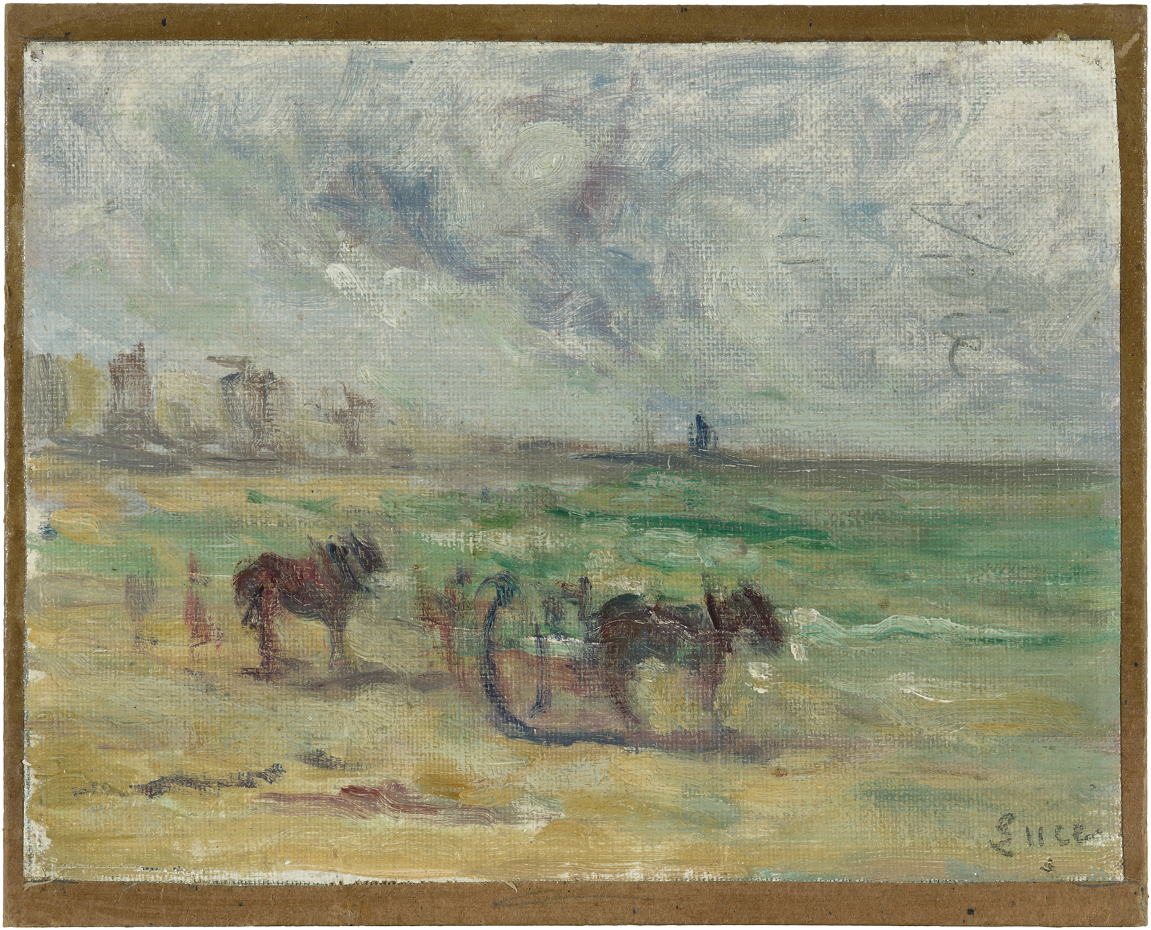"Les ramasseurs de goémon sur la plage". Öl auf Leinwand über Karton. Unten rechts signiert. 16x20 cm.