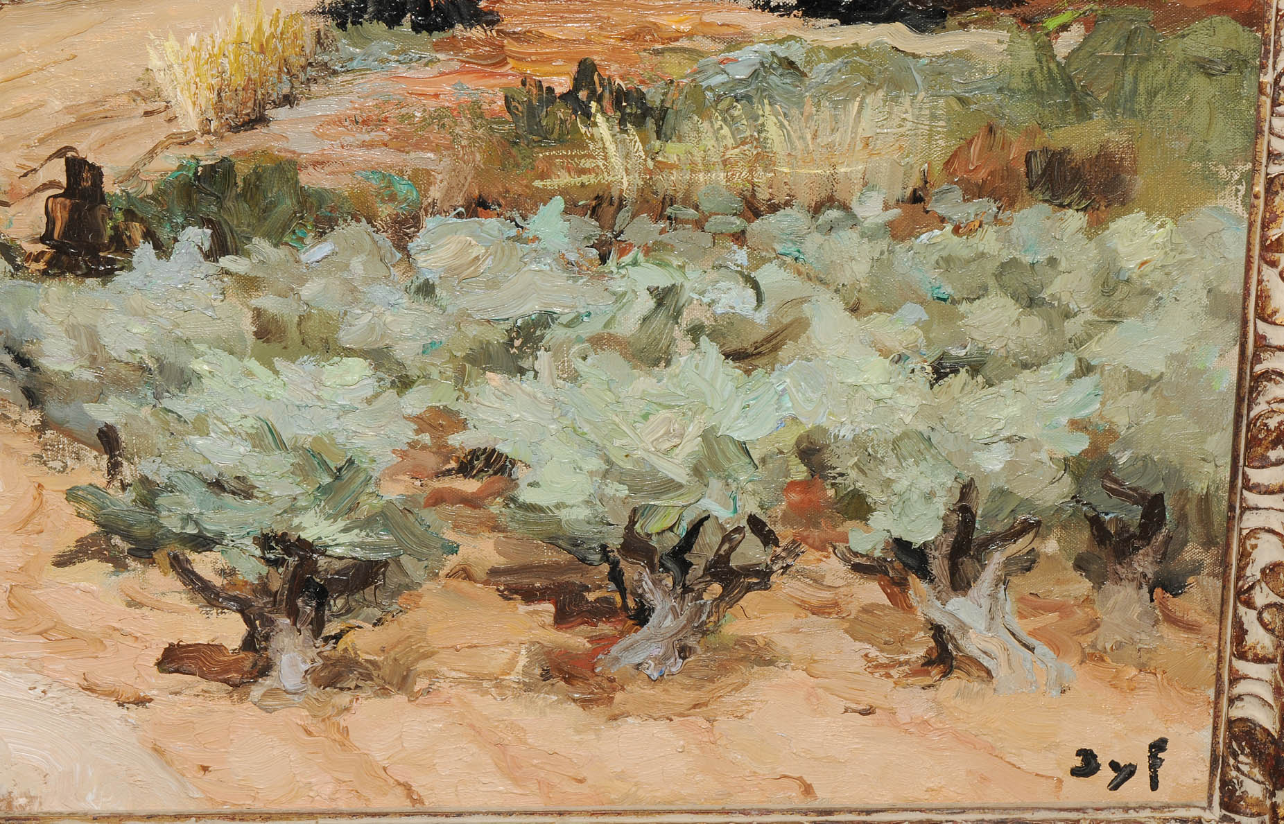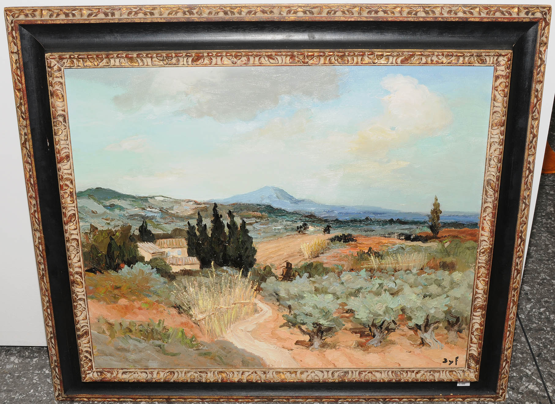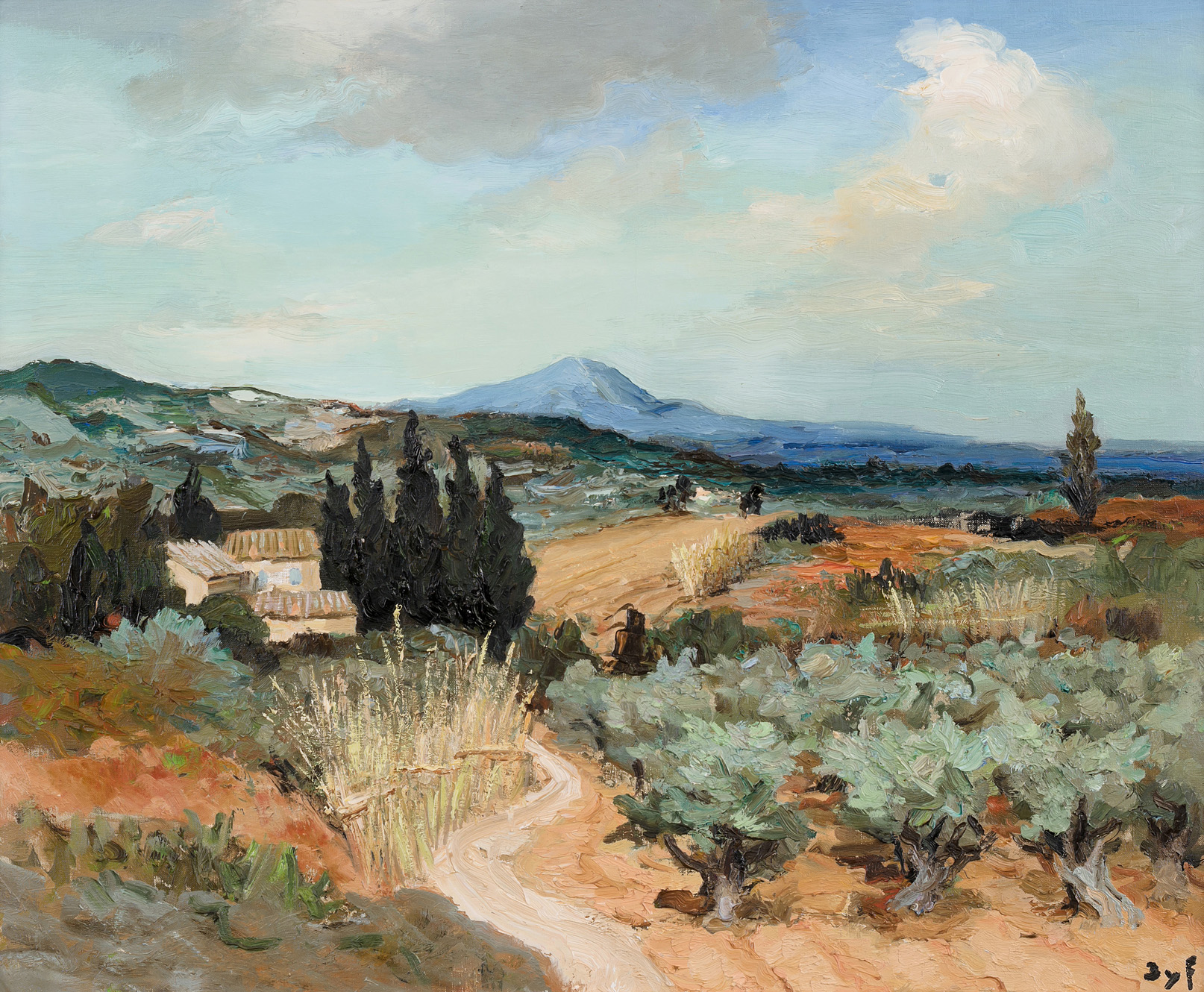 "Oliviers en Provence près de Paradou". 1964. Öl auf Leinwand. Unten rechts signiert, verso Auktionsetikett von Menzies. 60x73 cm.