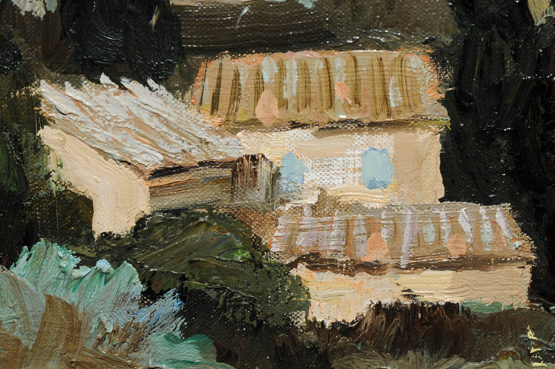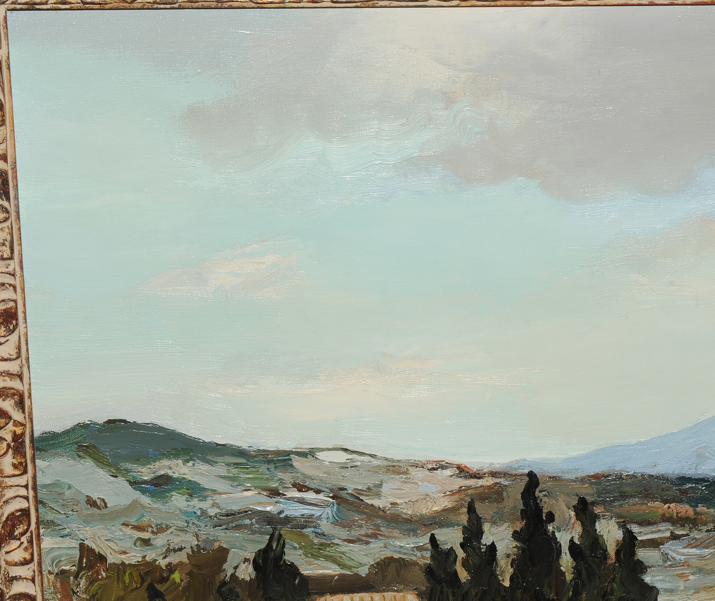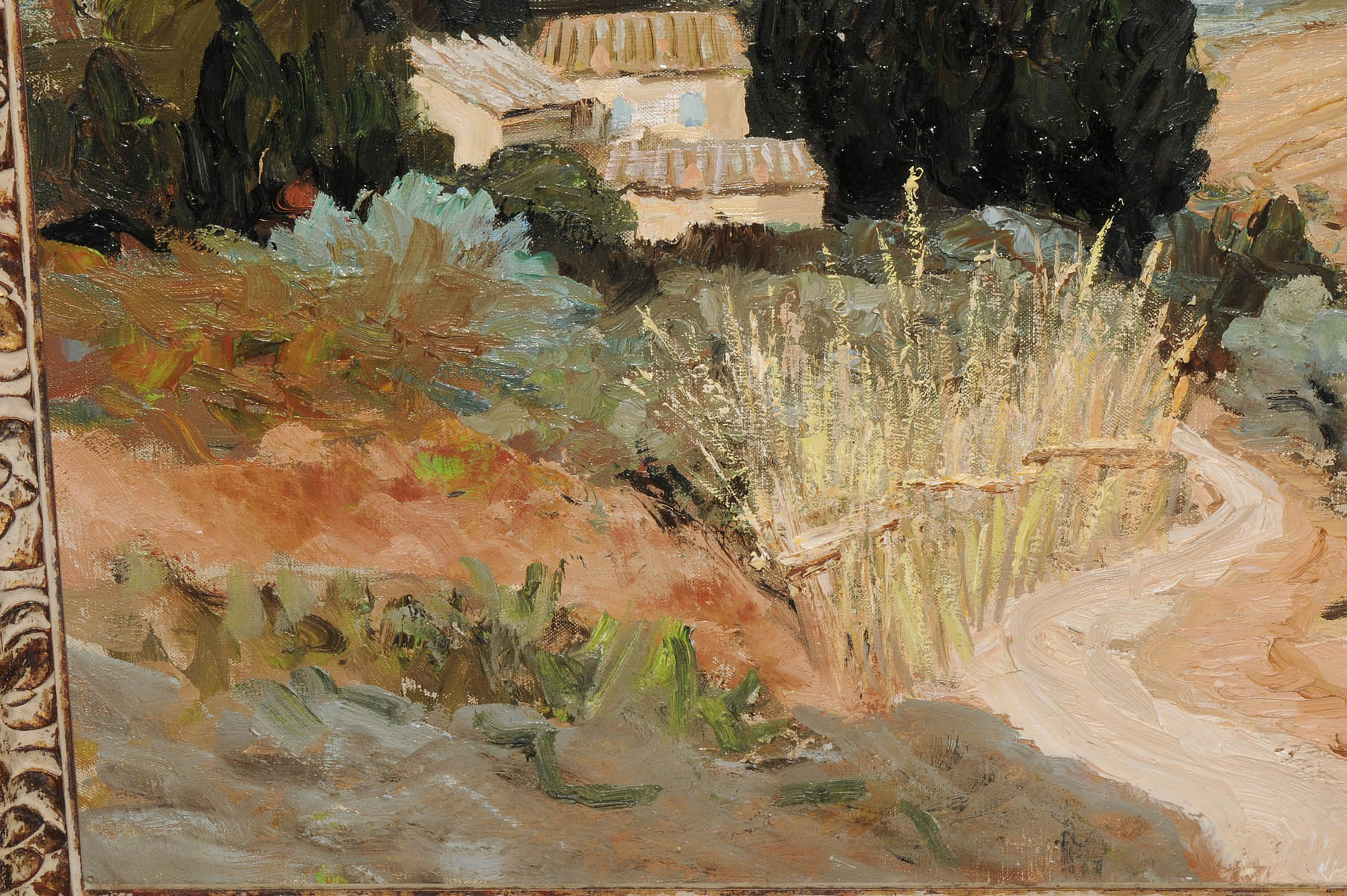 "Oliviers en Provence près de Paradou". 1964. Öl auf Leinwand. Unten rechts signiert, verso Auktionsetikett von Menzies. 60x73 cm.