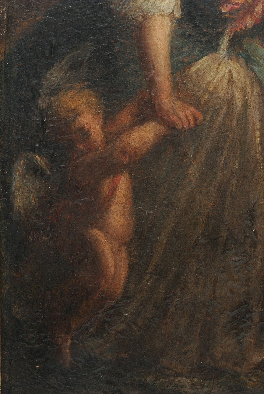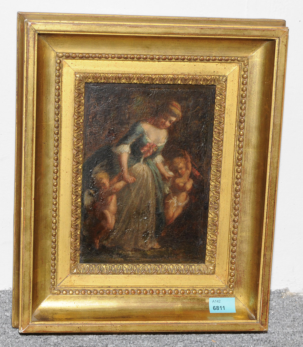 "Amours captifs". Öl auf Holz. Unten rechts bezeichnet. 17,5x13 cm.