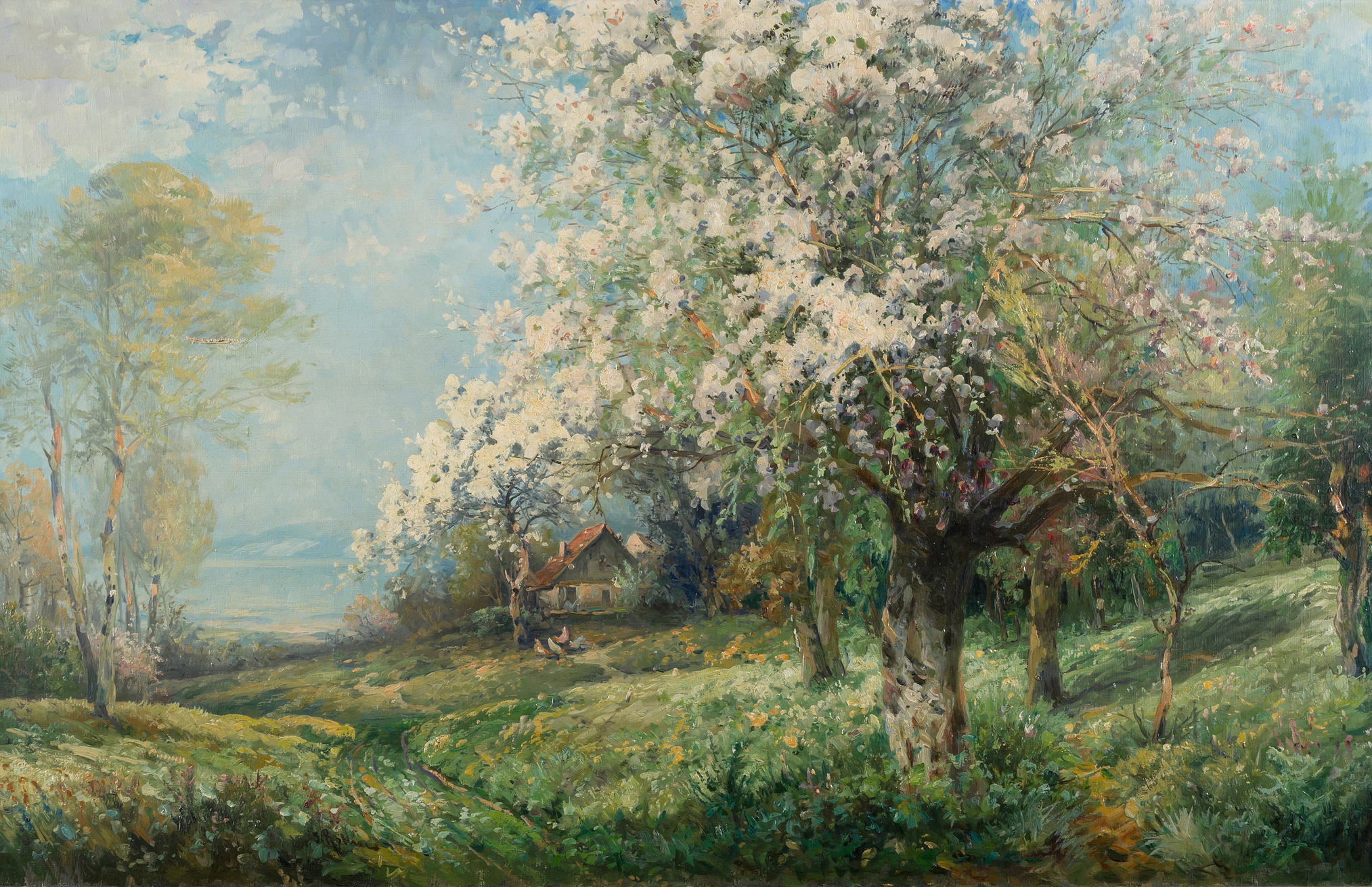 Fleuraison en Normandie. Öl auf Leinwand. Unten links mit dem Pseudonym J. Rollin signiert. 81,8x129 cm.