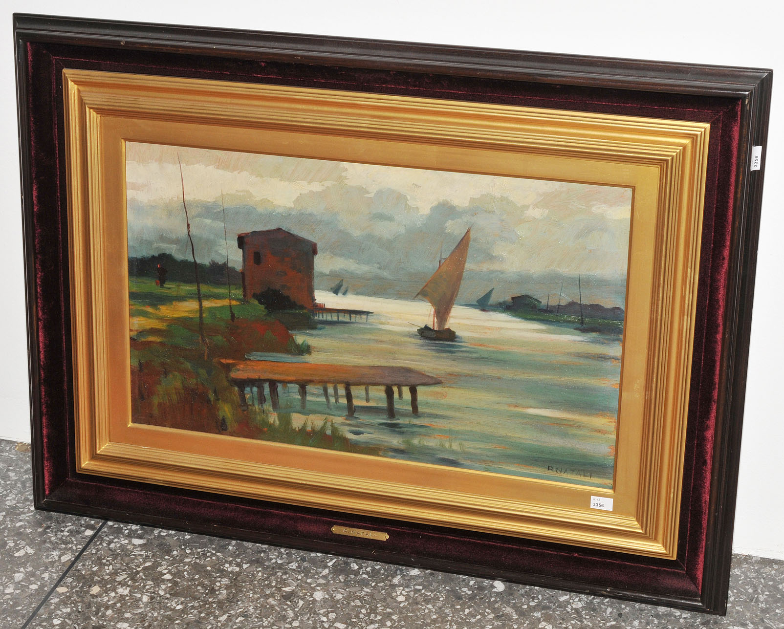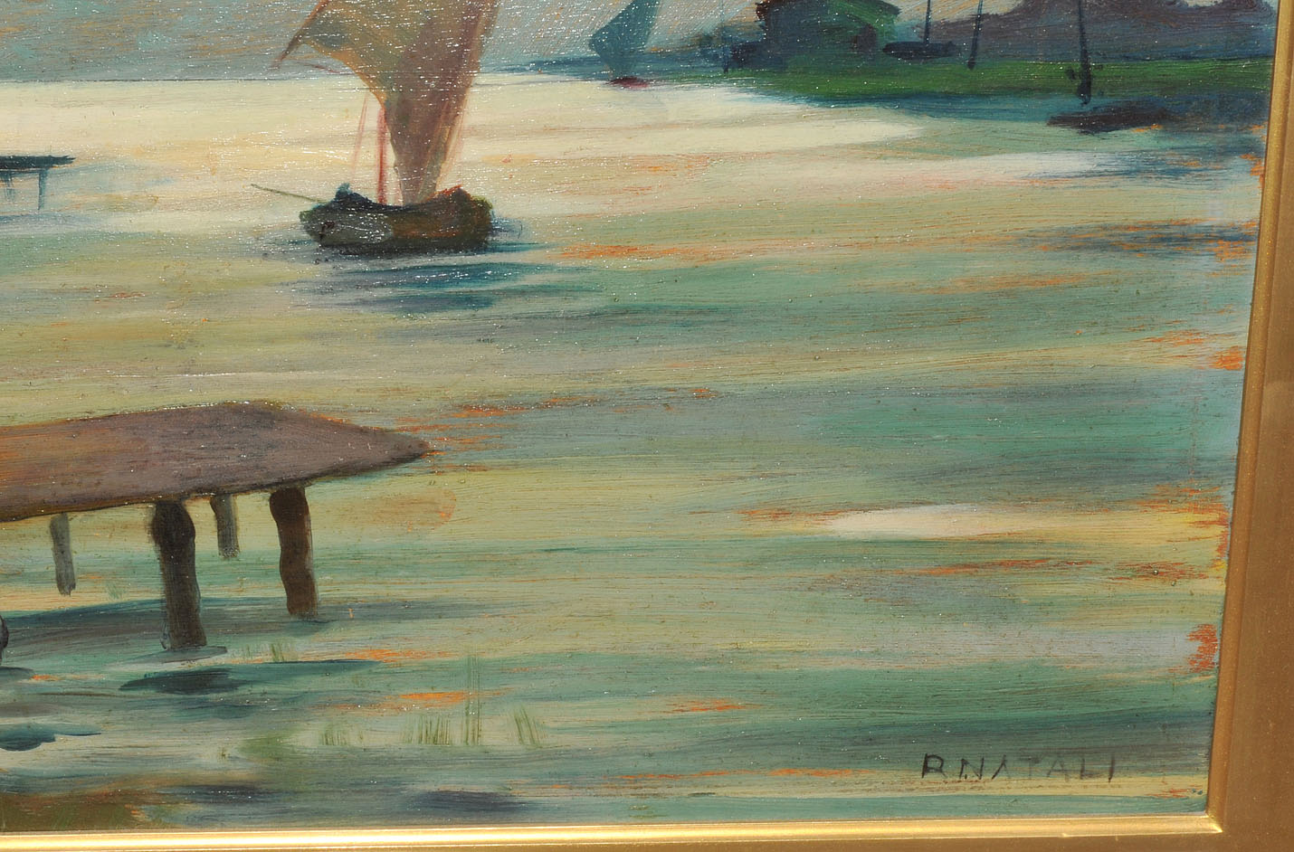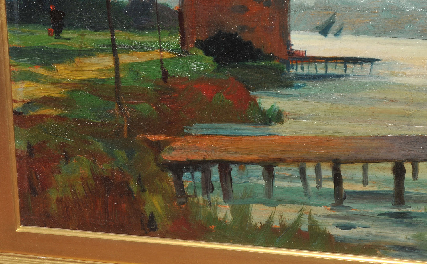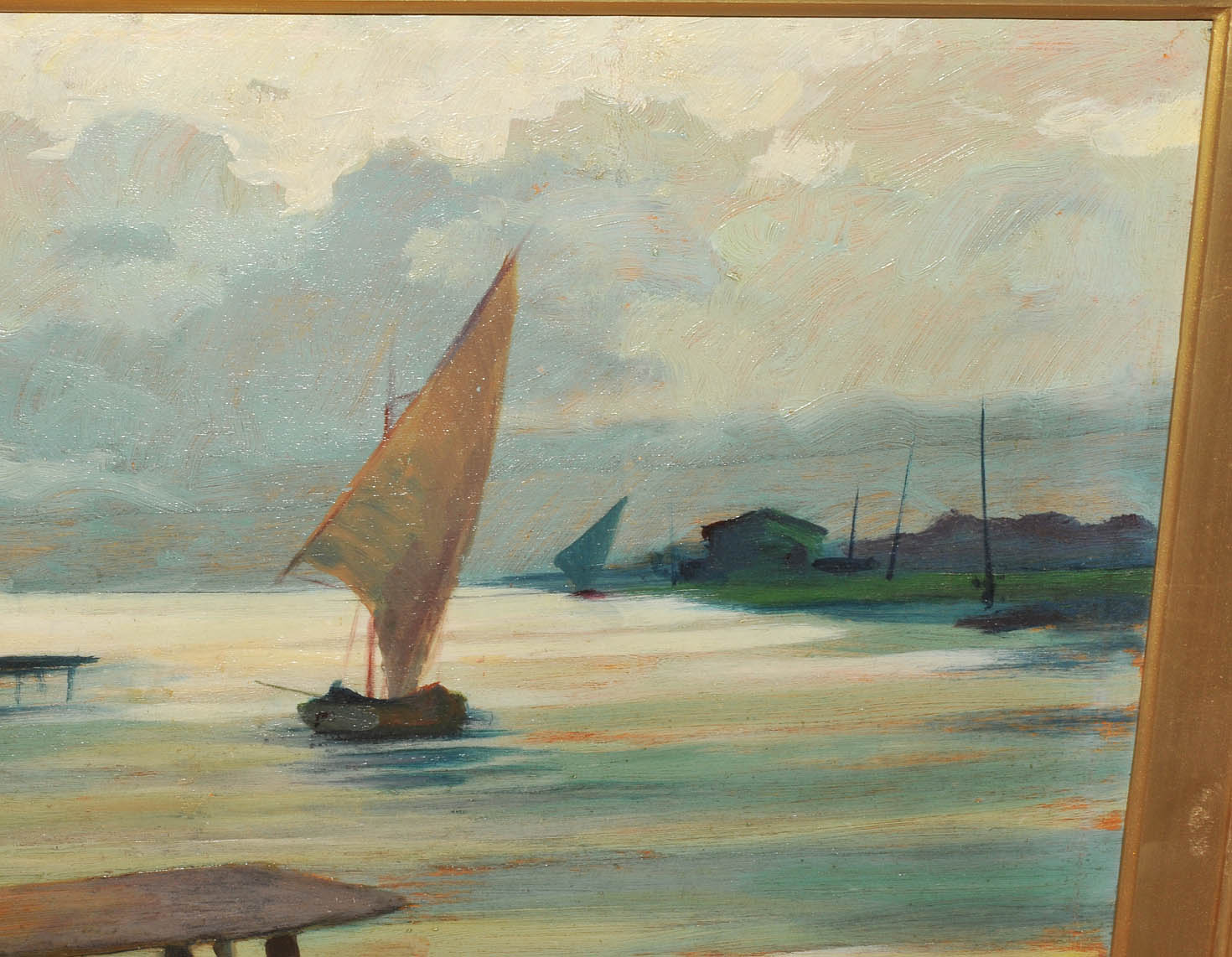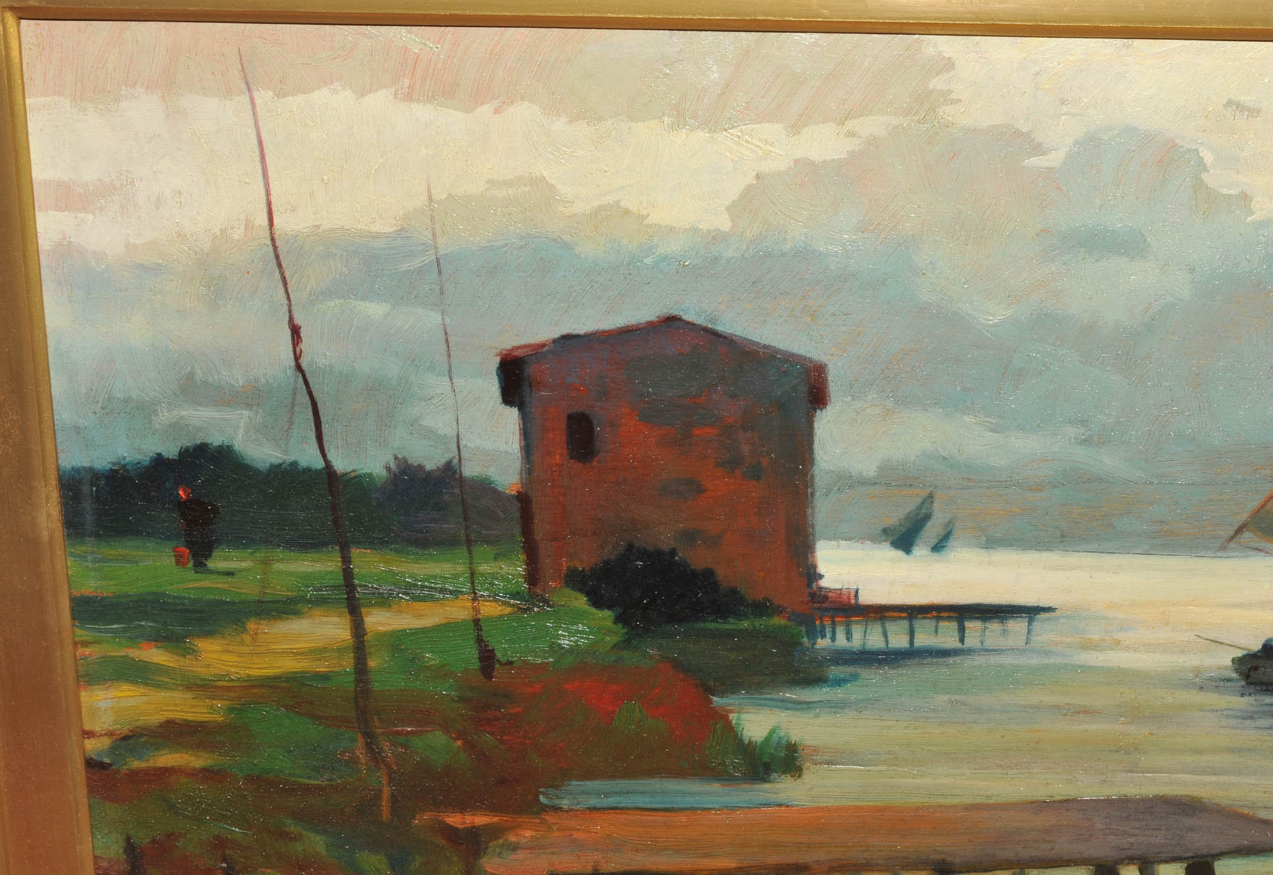 Fischer bei Calambrone. Öl auf Sperrholz. Unten rechst signiert, verso ortsbezeichnet Calambrone Livorno. 36x59 cm.