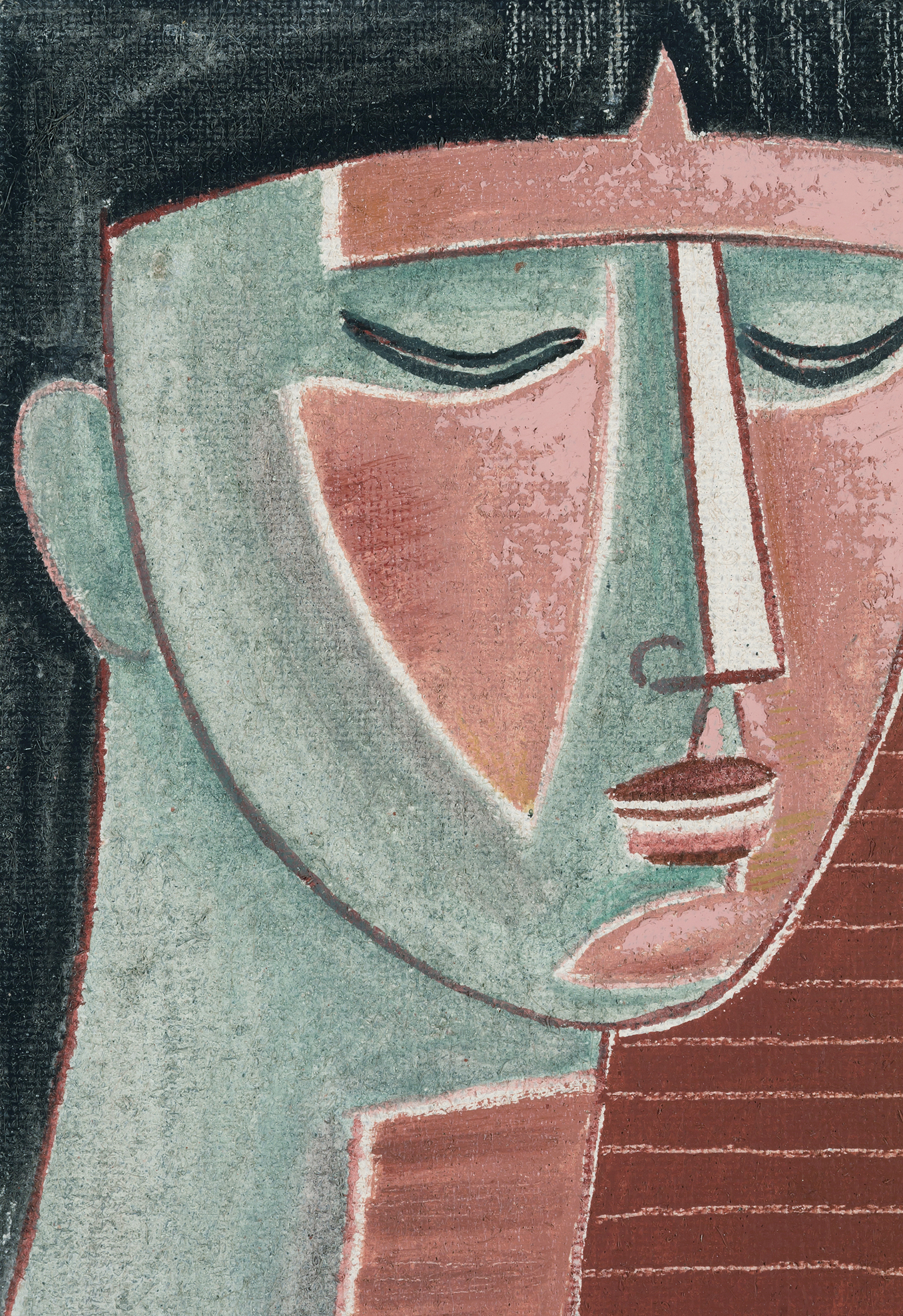 "Testina". Öl auf Leinwand. Unten rechts signiert. Auf der Rückseite nummeriert: CAT 823. 35x27,5 cm.