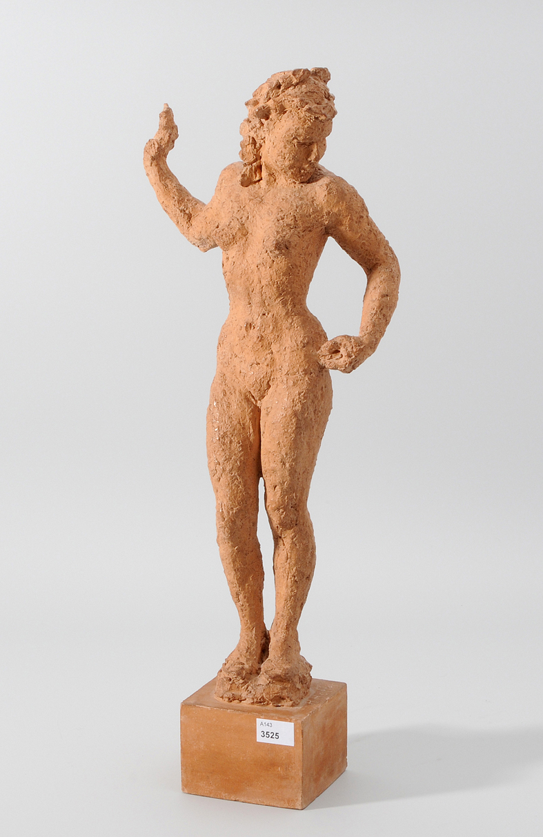 Frauenakt. Terracotta. Auf dem Sockel signiert. H 46,5 cm. -Patina. Leicht schmutzig.