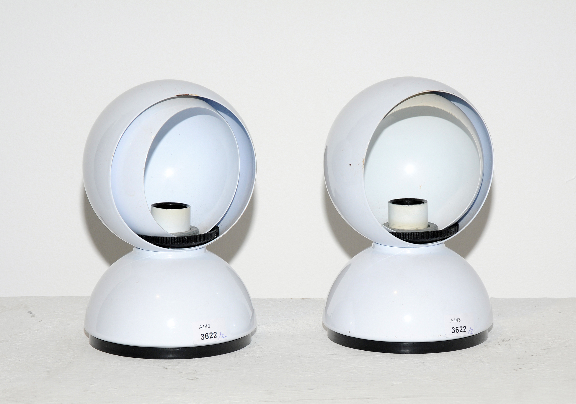 Ein Paar Tischleuchten Eclisse, 1967. Ausführung Artemide. Metall weiss lackiert. Gebrauchsspuren. Guter Zustand. Funktionsfähig. H 19 cm.