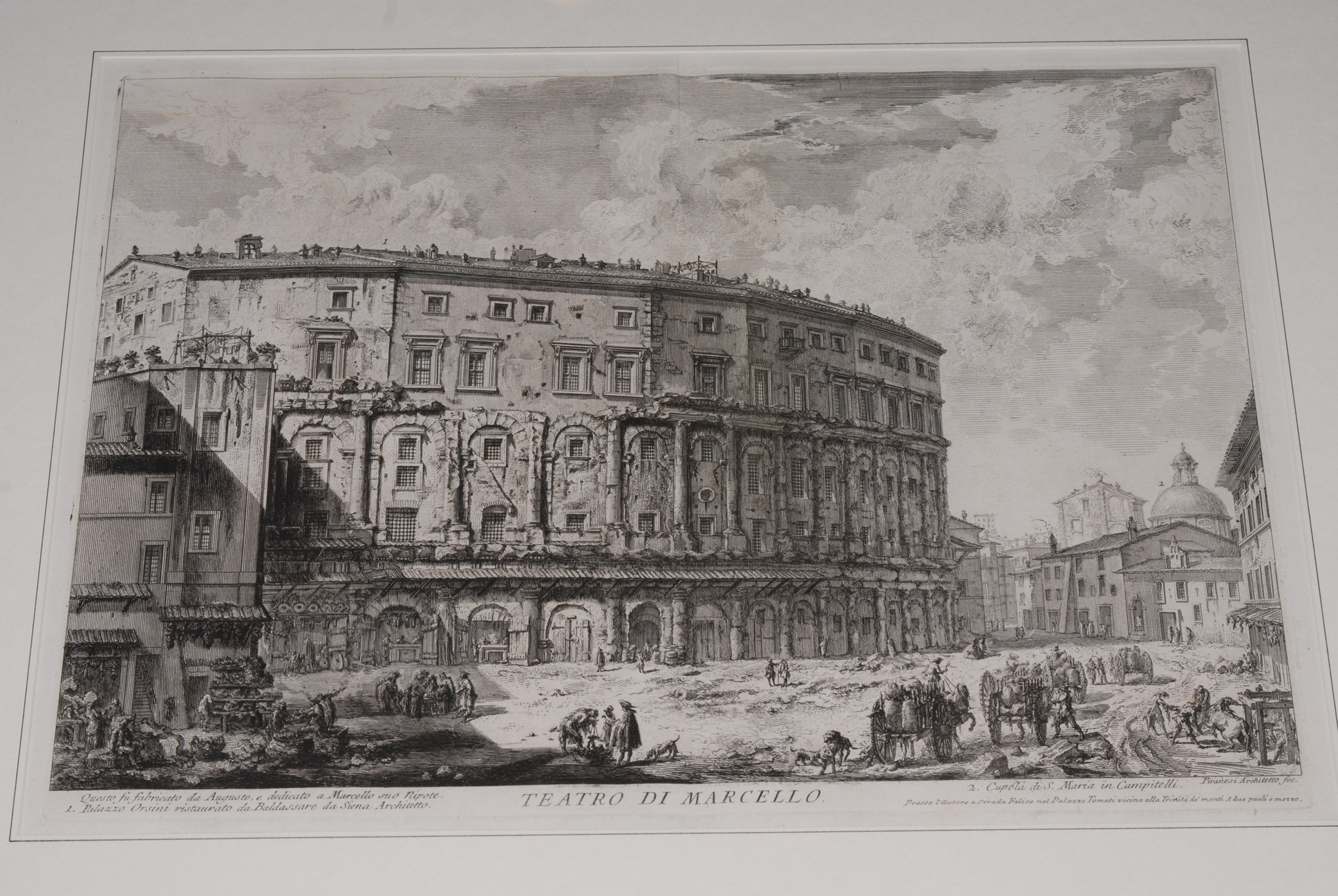 "Teatro di Marcello". Radierung aus den römischen Ansichten, auf Papier mit WZ Lilie im Doppelkreis. 38,5x54,5 cm. Gerahmt.