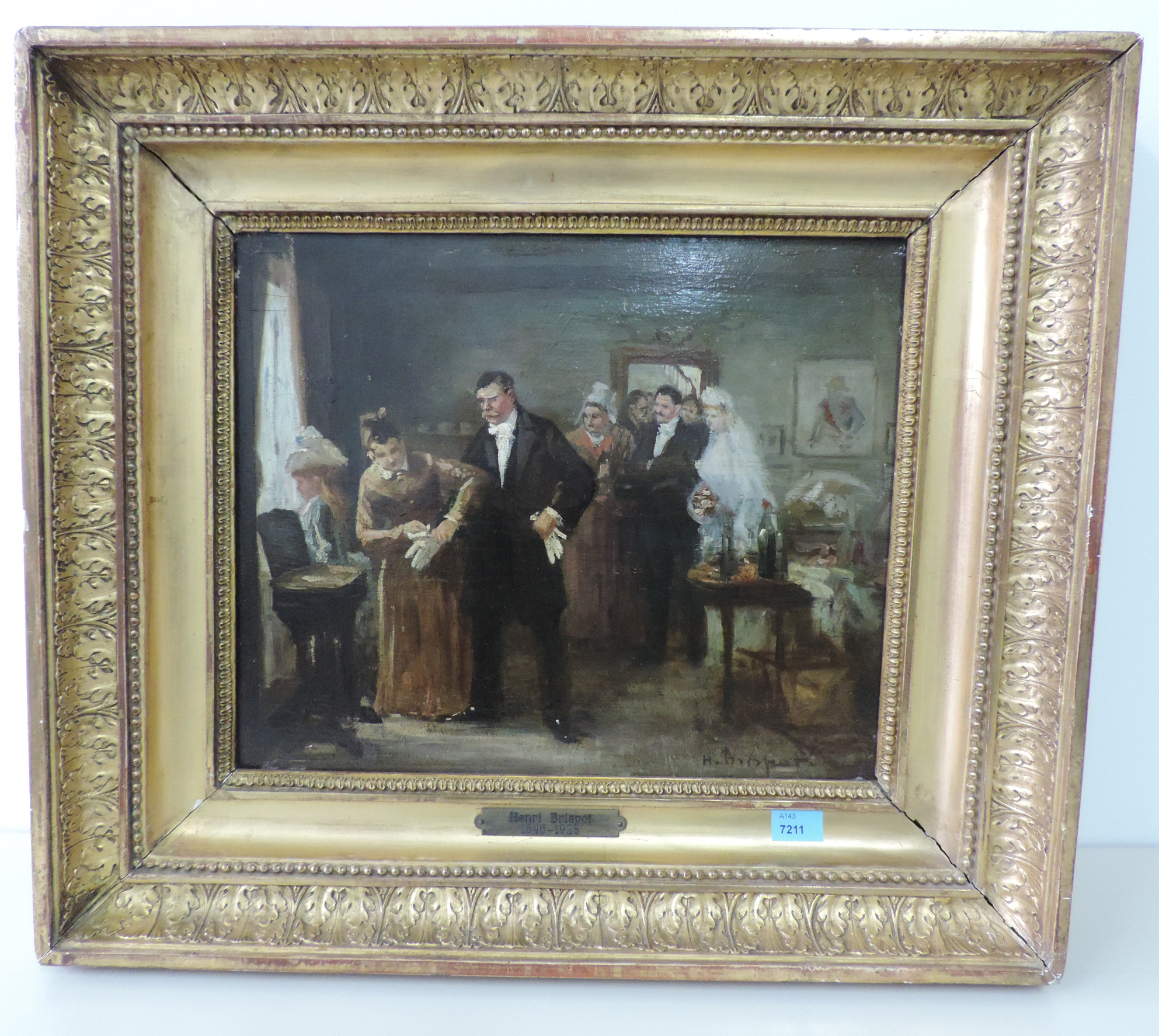 Hochzeitsgesellschaft. Ölstudie auf Holz. Unten rechts signiert. 26,6x33,5 cm.