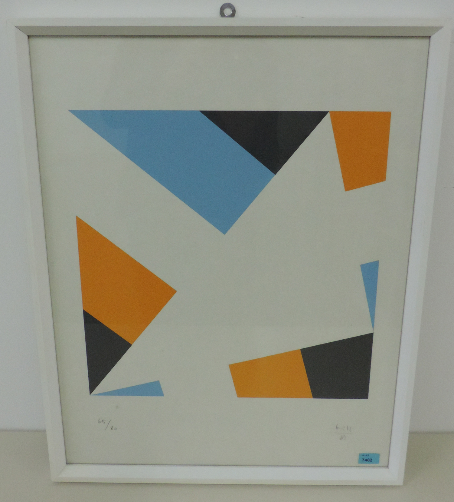 Konkrete Komposition. 1981. Farbserigraphie. 65/80. Unten rechts signiert und datiert. Lichtmass 48,5x38,5 cm. Gerahmt.