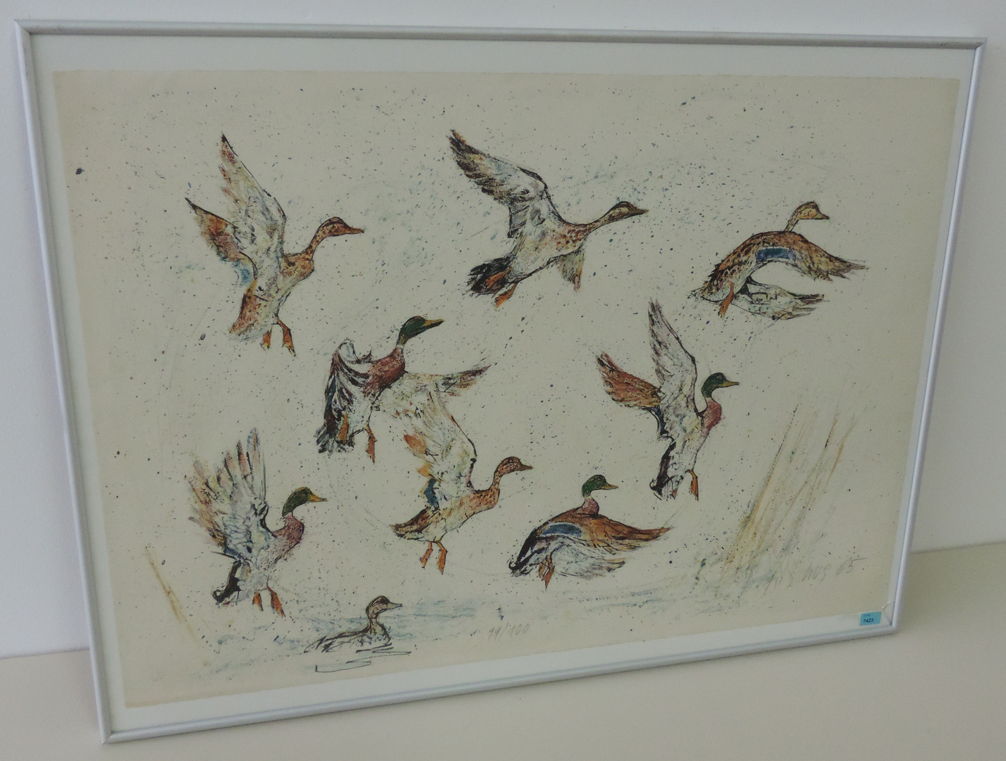 Auffliegende Stockenten. 1965. Farblithographie. 99/100. Unten rechts signiert und datiert. Blattgrösse 54x76 cm. Gerahmt.