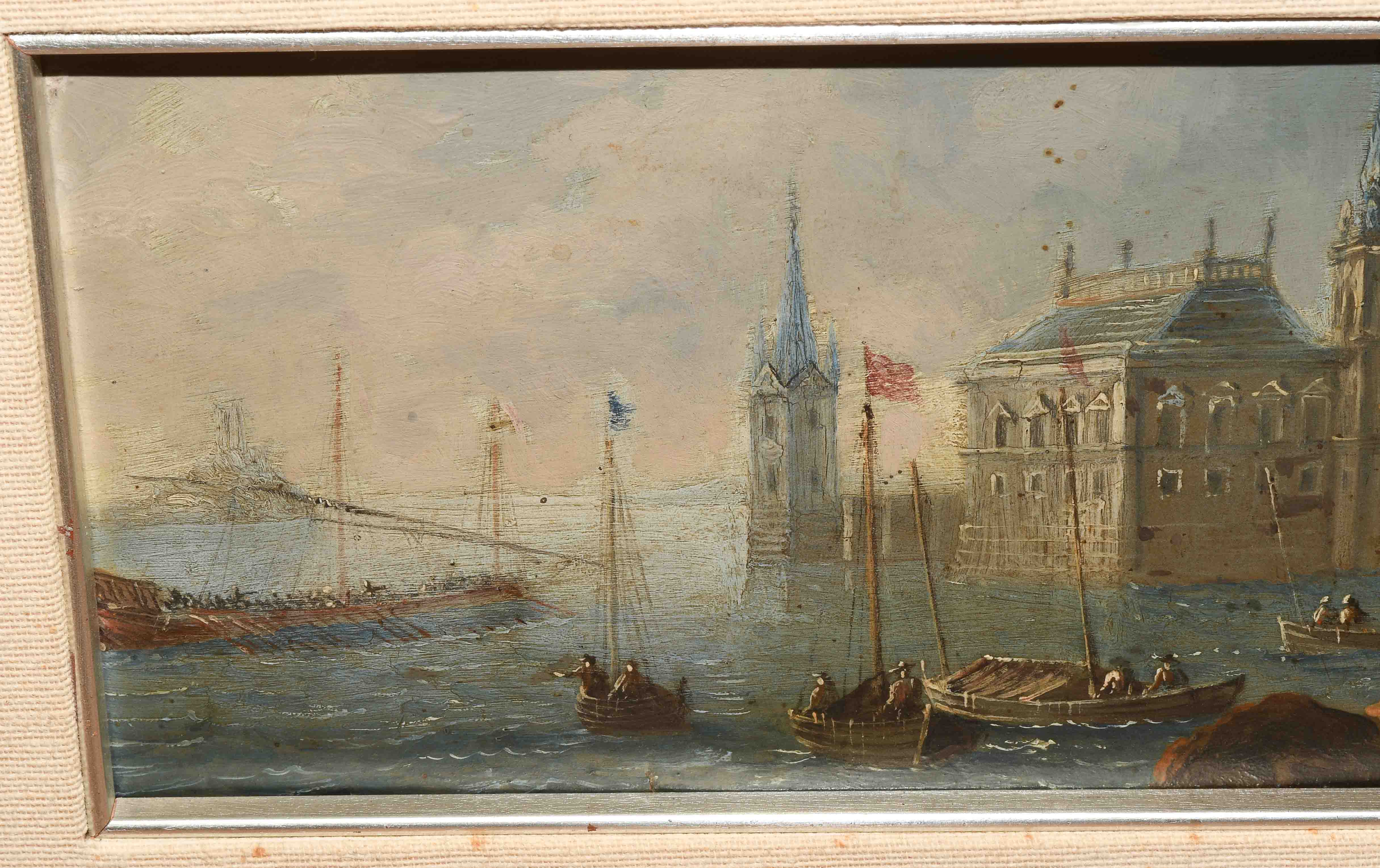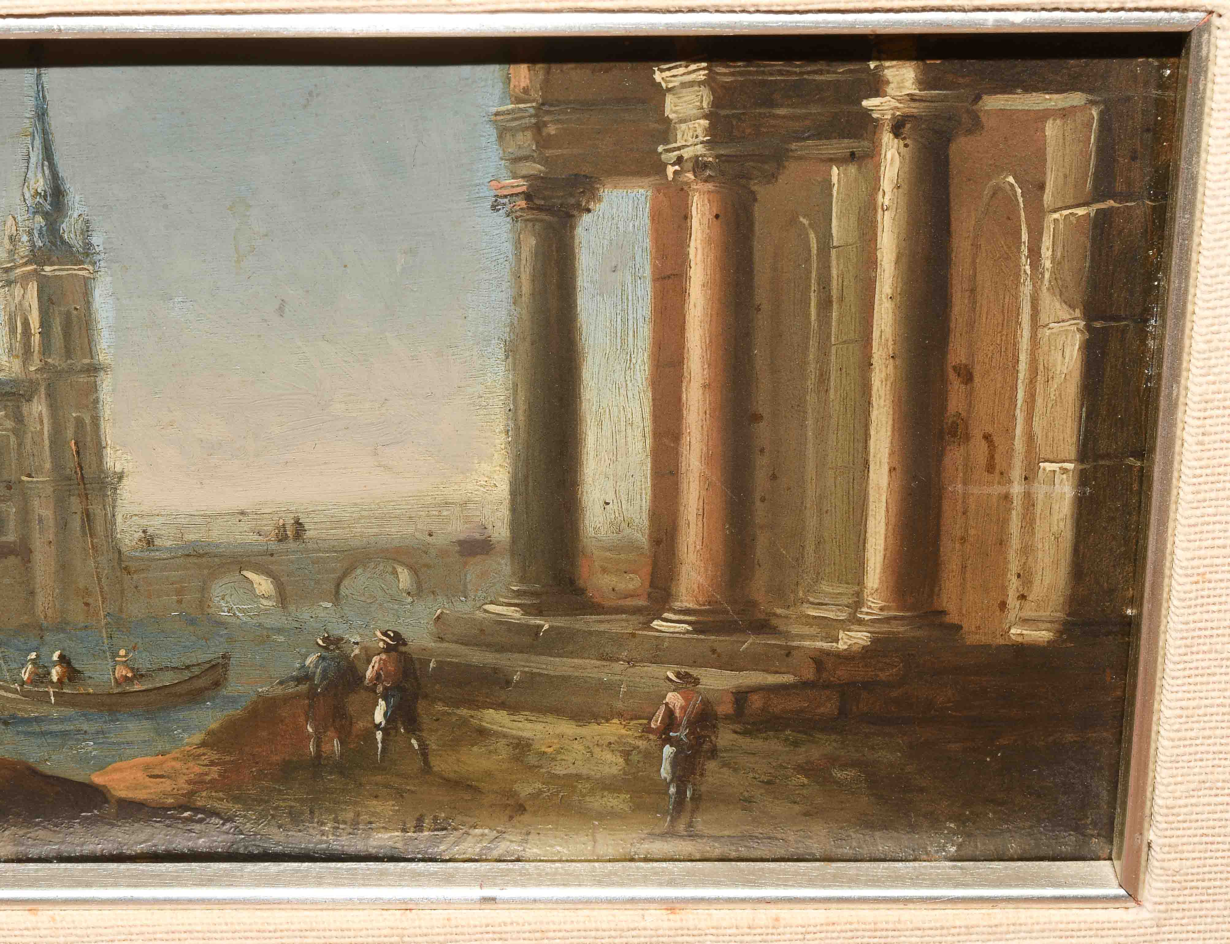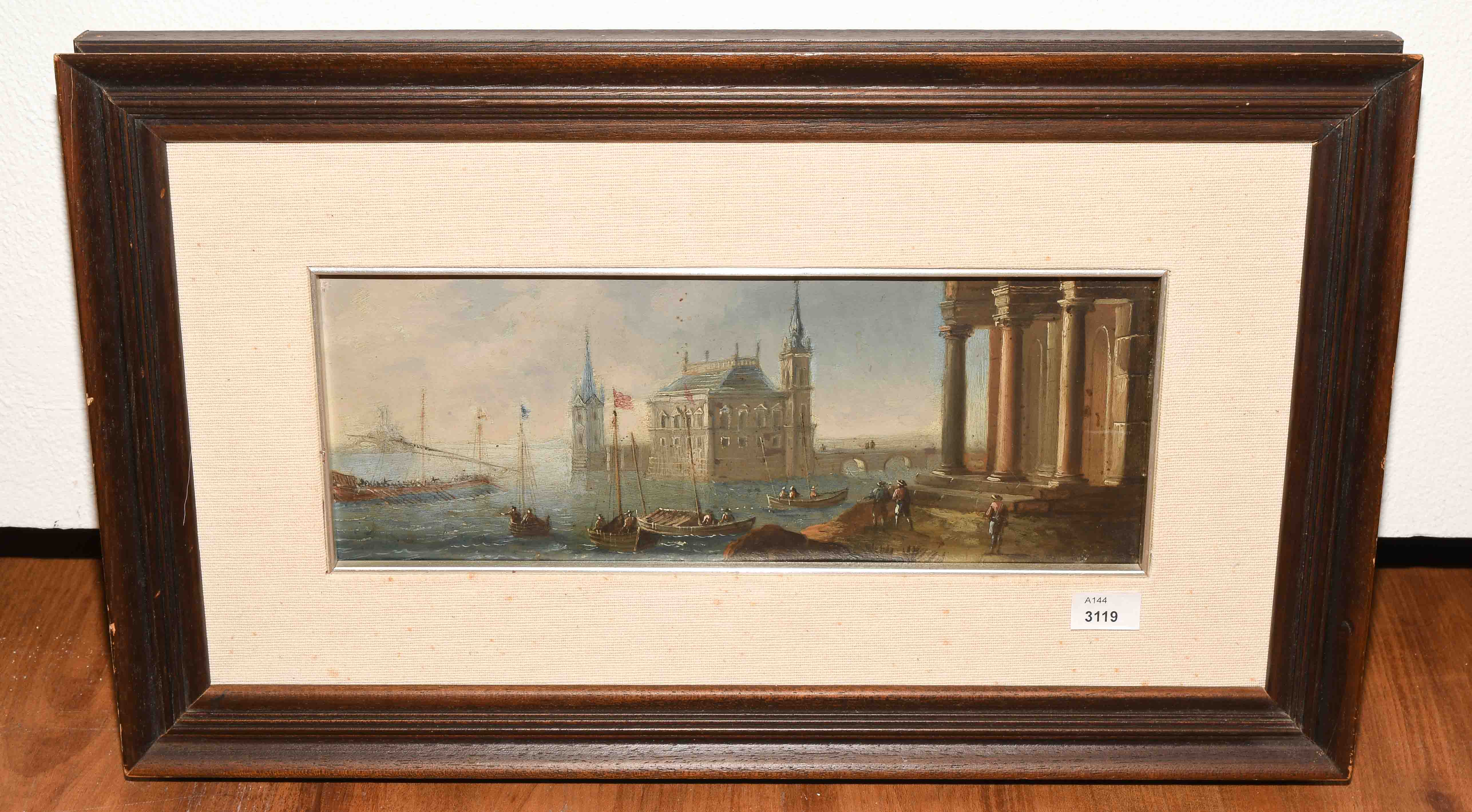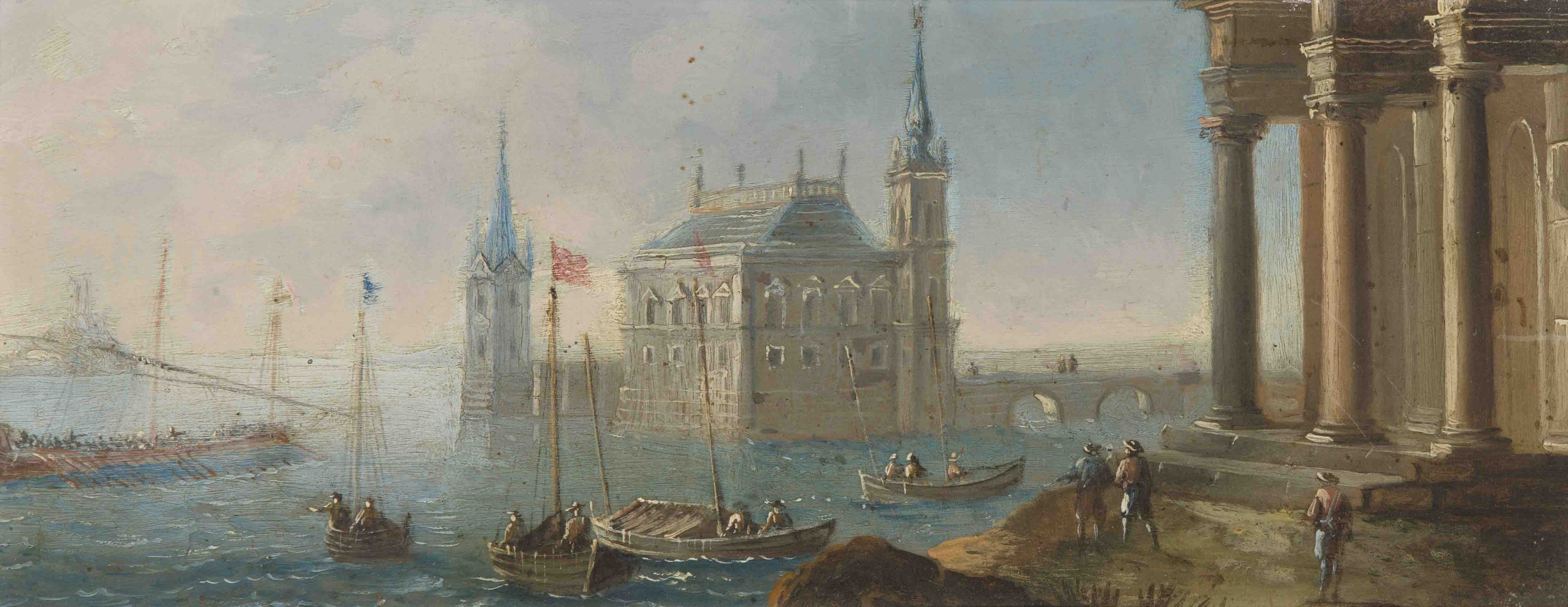 Capriccio. Öl auf Kupfer. 11,6x29,1 cm.
