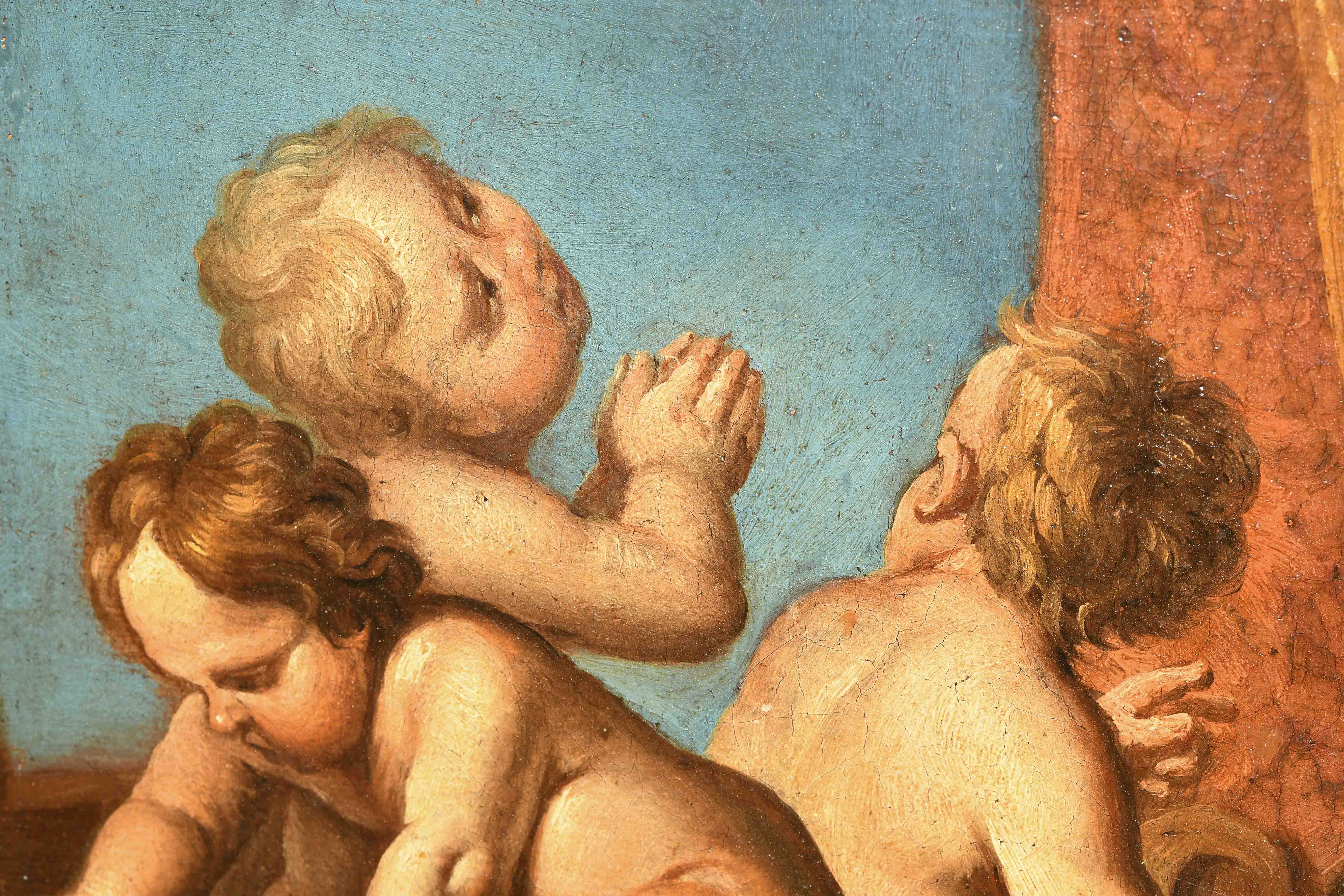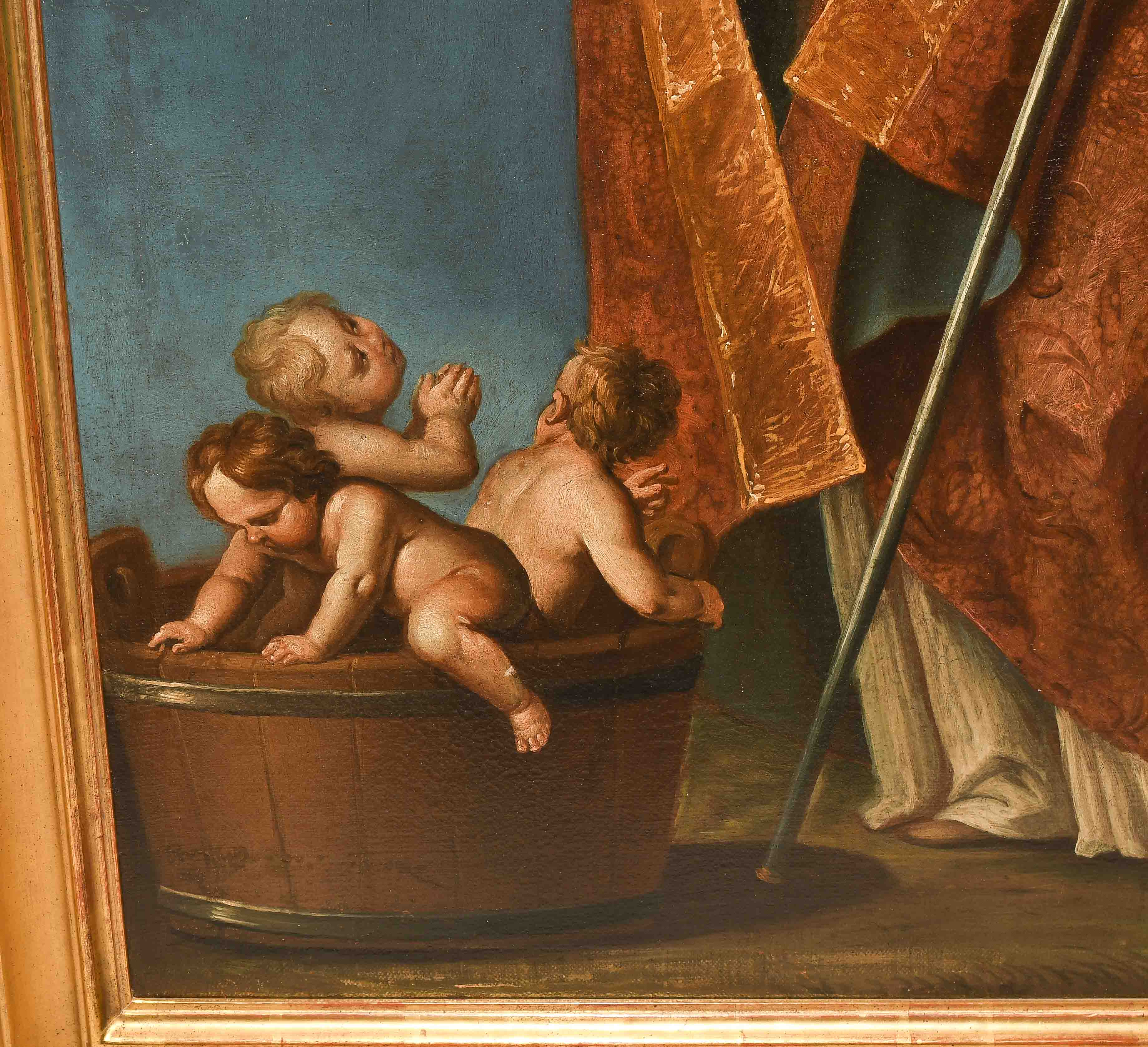 Der heilige Niklaus erweckt die drei Kinder wieder zum Leben. Öl auf Leinwand über Hartfaserplatte. 98x73 cm.