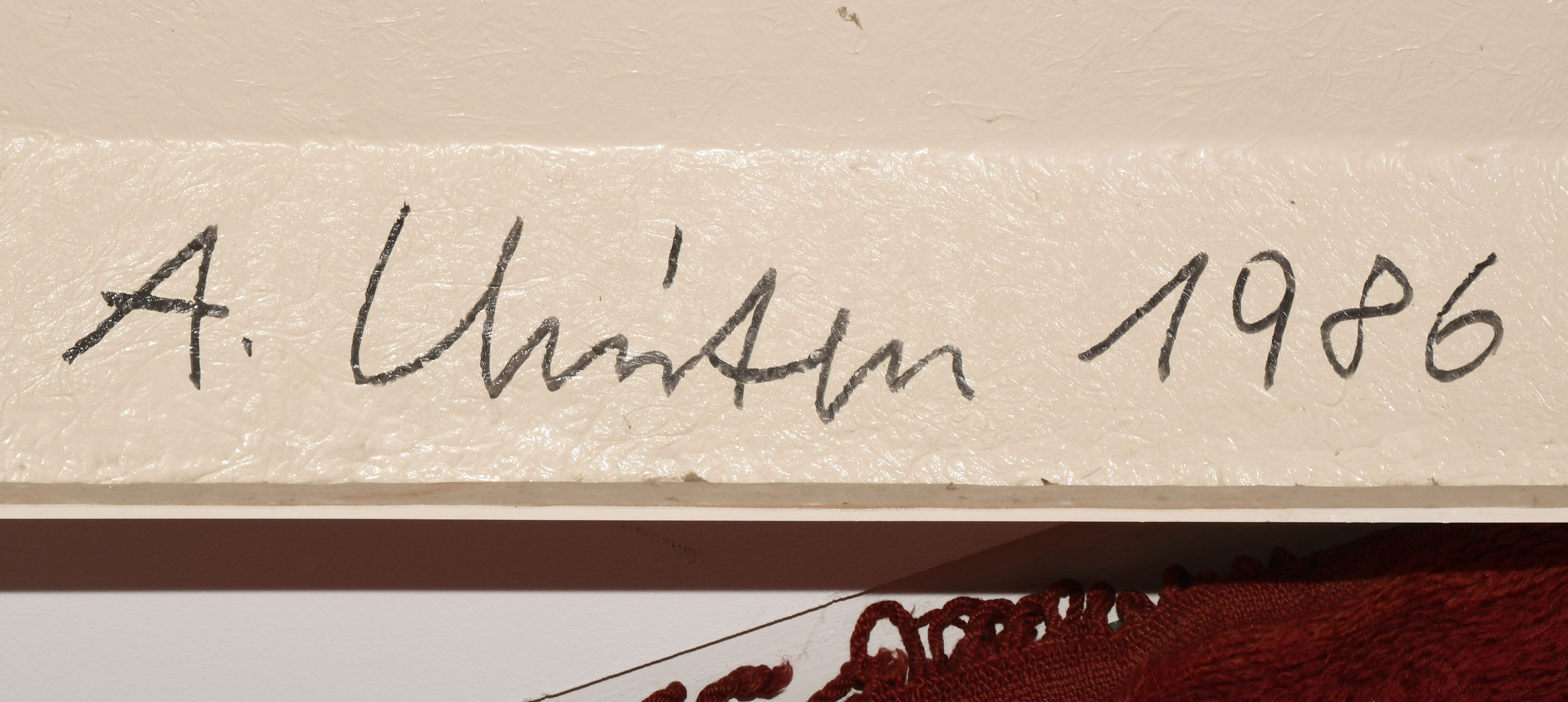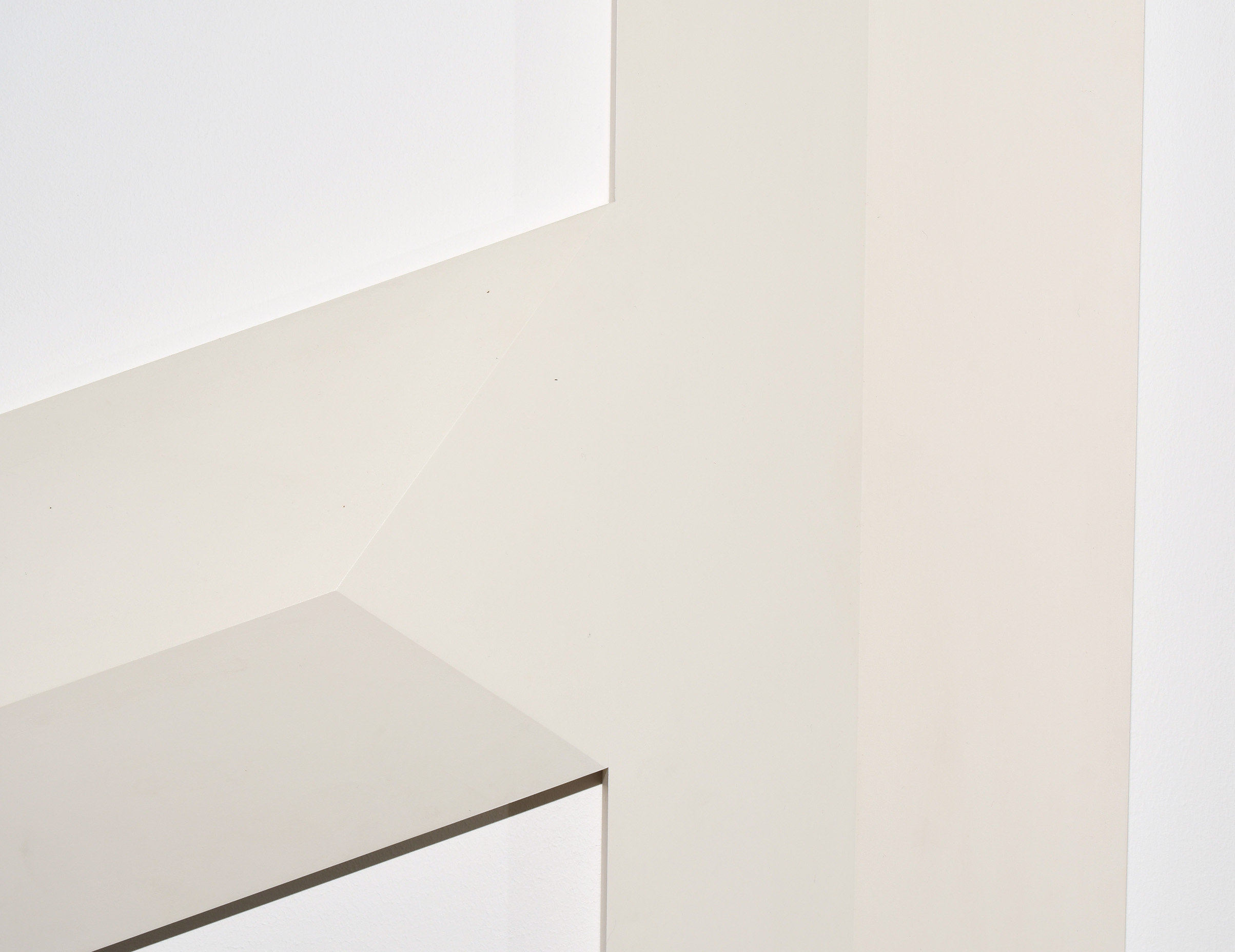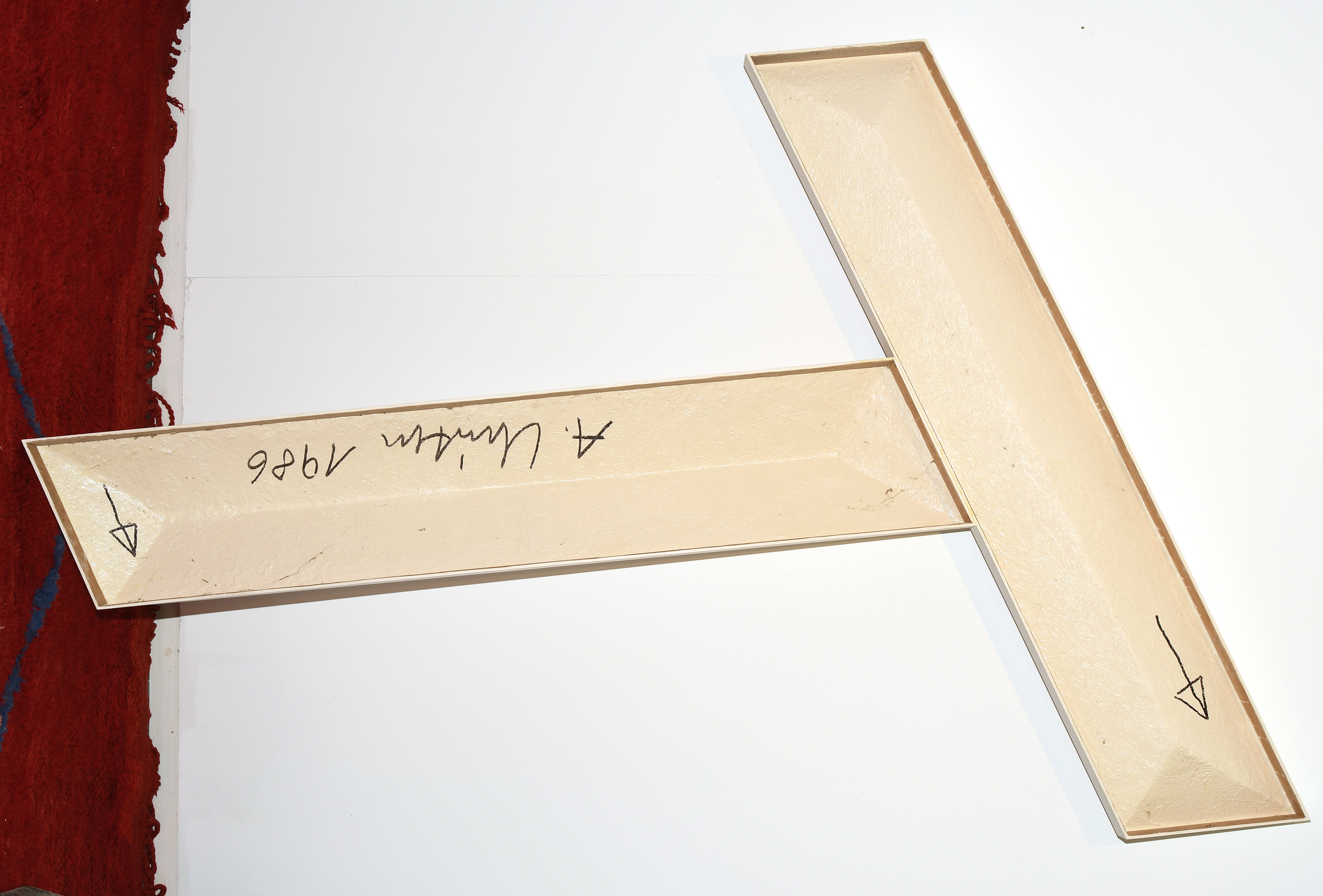Ohne Titel. 1986. Epoxy und Holz weiss gespritzt. Verso signiert und datiert. 150x150x10 cm. -Leicht schmutzig.
