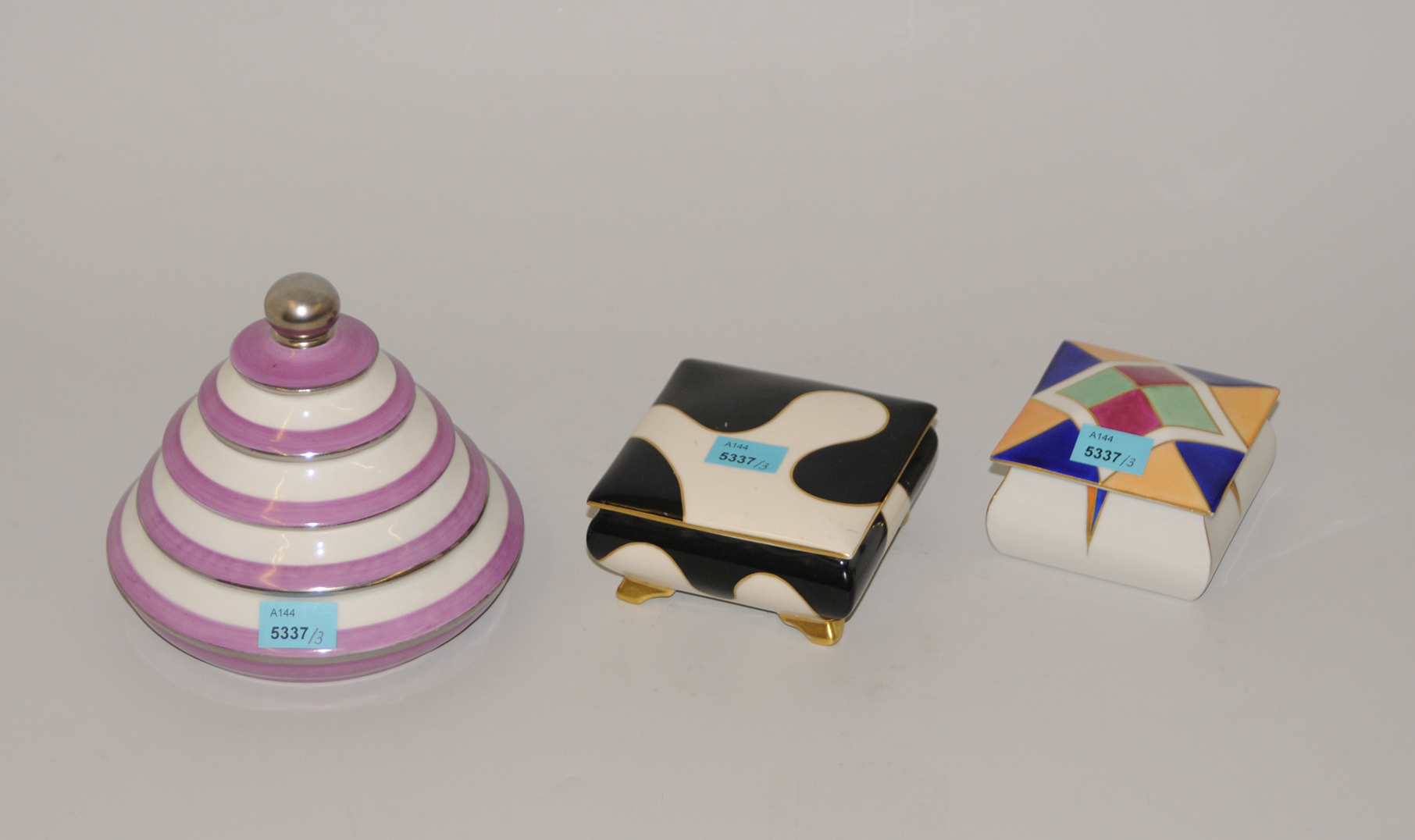 Deutschland, 1.Hälfte 20.Jh. Porzellan, diverse geometrische, polychrom staffierte Dekore. Unterschiedlich in Form und Grösse. H 5–11,5 cm.