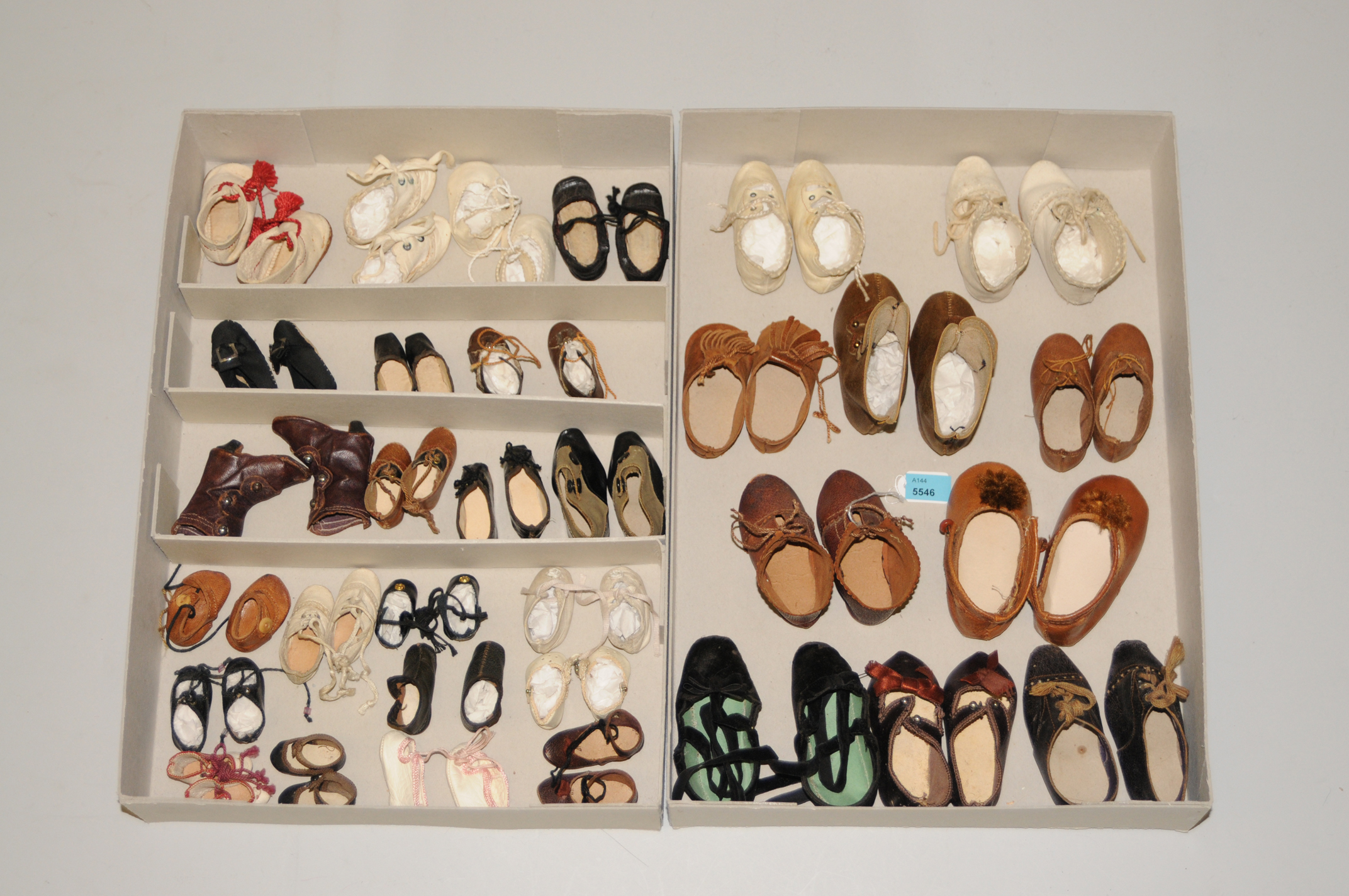 Diverse Materialien, Grössen und Ausführungen. Total 33 Paar Schuhe. L 3–9 cm.