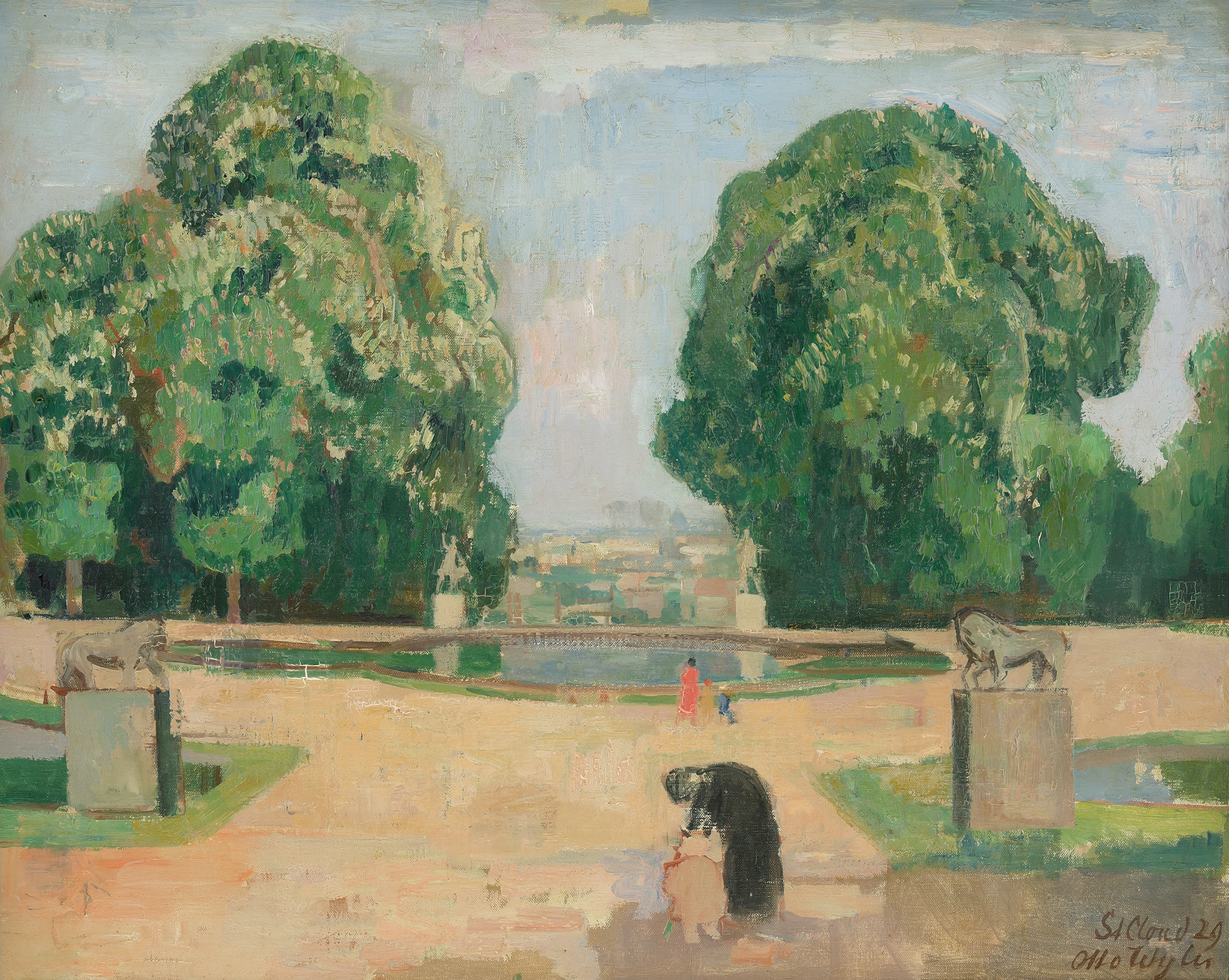 "Park in St. Cloud", 1929. Öl auf Leinwand. Unten rechts signiert und datiert, verso auf Künstleretikett bezeichnet. 66x81,5 cm.